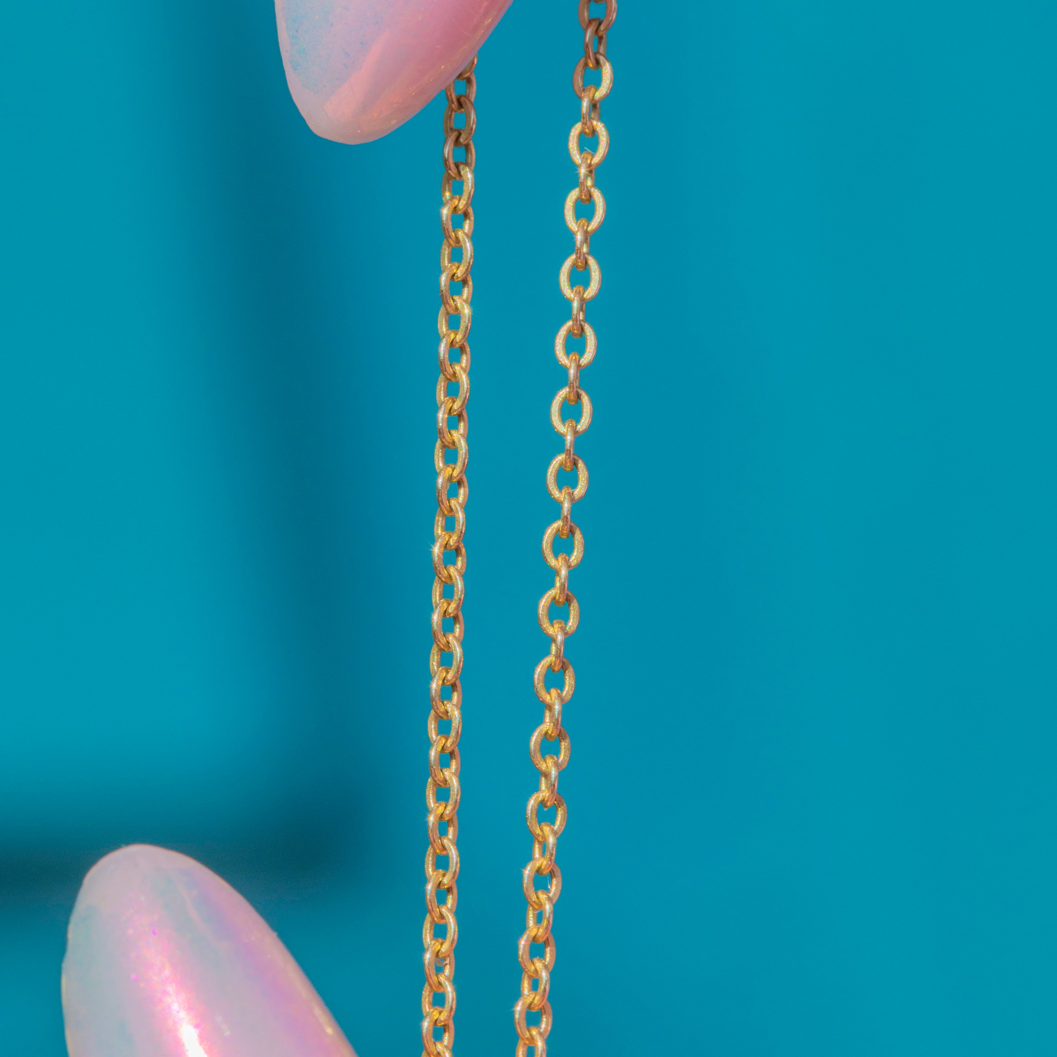 This vintage Gold chain is 1.5mm wide, perfect for suspending your favourite charm across your décolletage, adding a subtle touch of glamour to any outfit. You won't be able to resist reaching for her daily!
