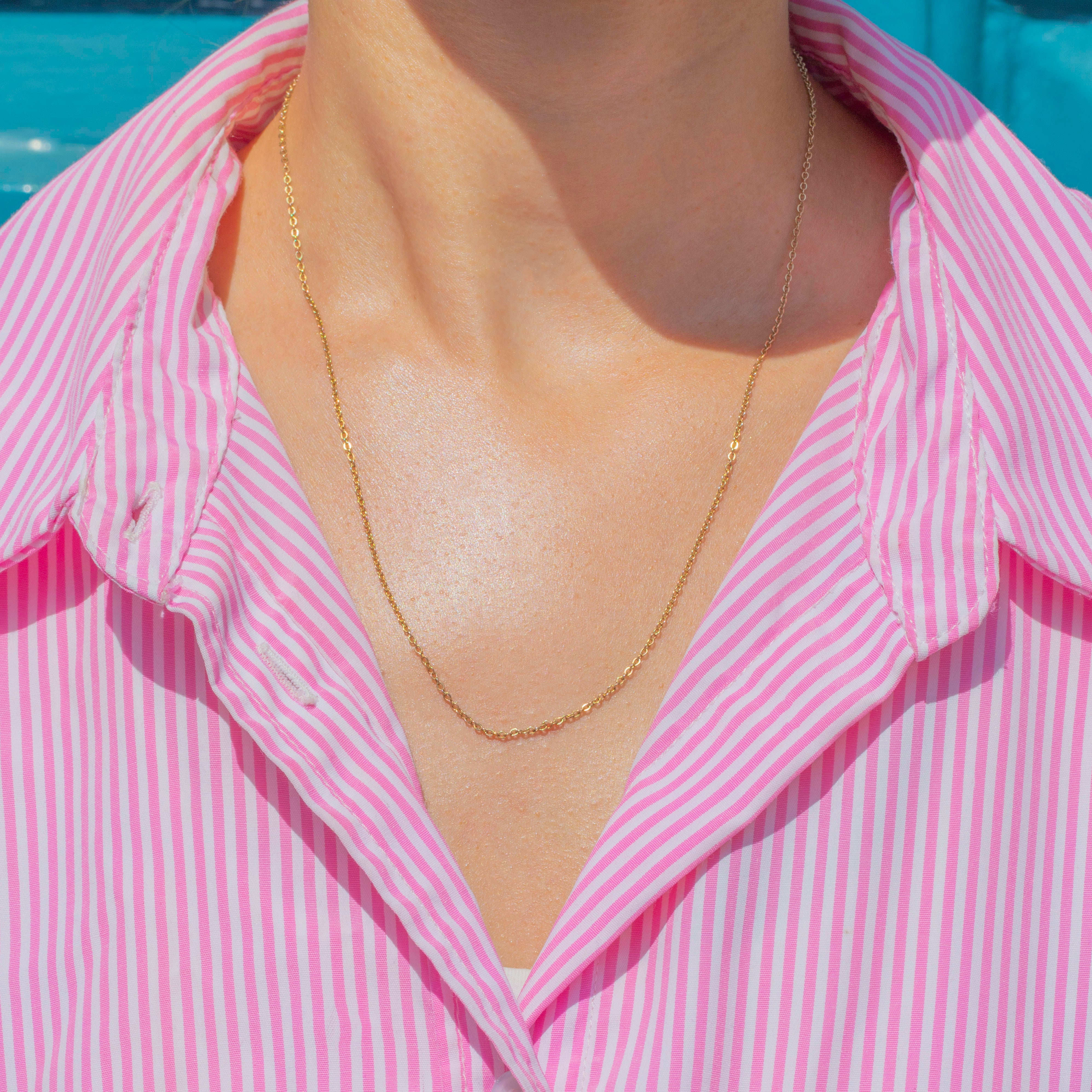 This 18" 9ct Gold skinny pendant chain is formed of dainty belcher links crafted from scrumptious 9ct Gold, she is the perfect versatile chain to add a touch of elegance to your collection.