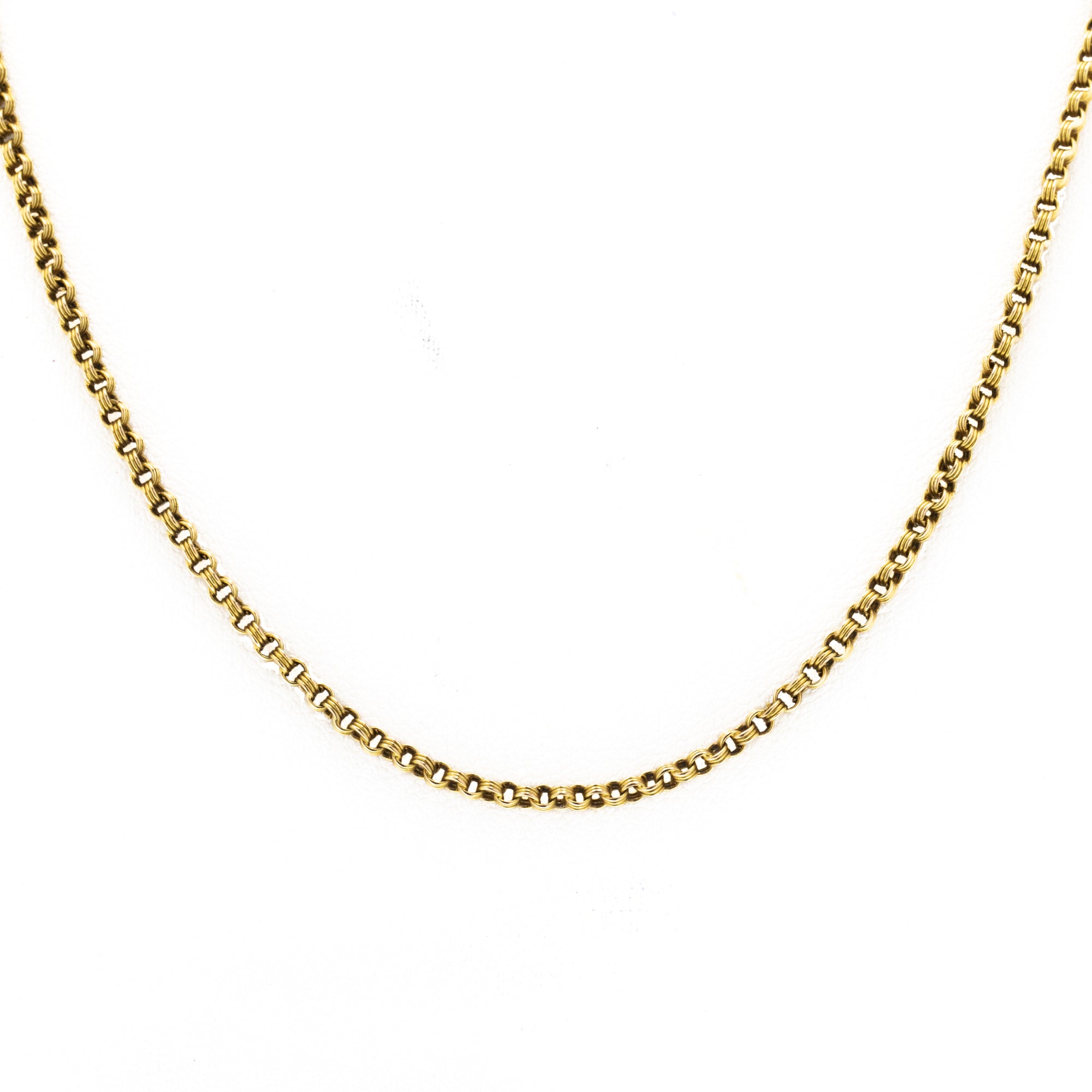 Chaîne Belcher victorienne 18" en or 15 carats, fermoir barillet d'origine