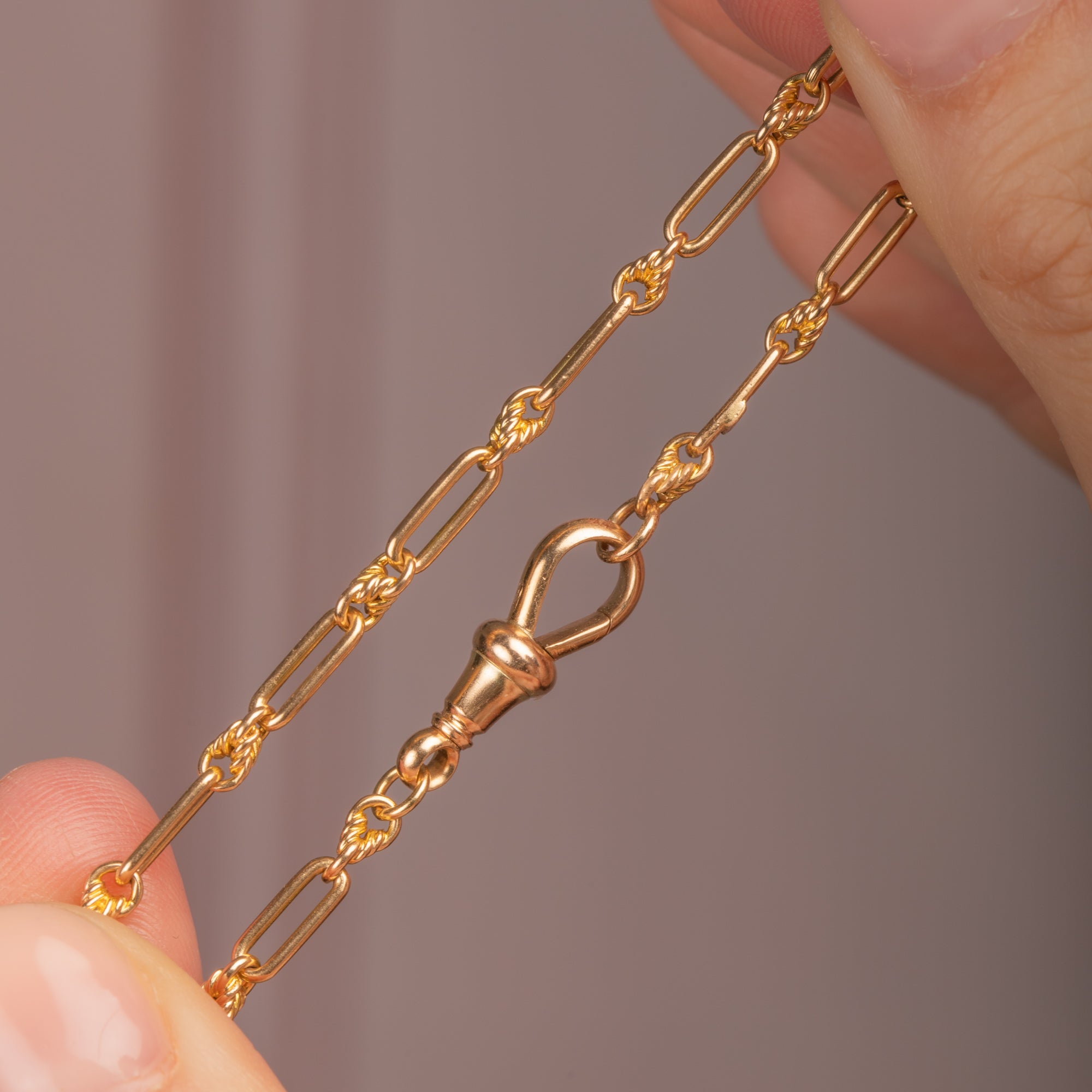 18" Antique 15ct Gold Lovers Knot Chain, with Dog-Clip