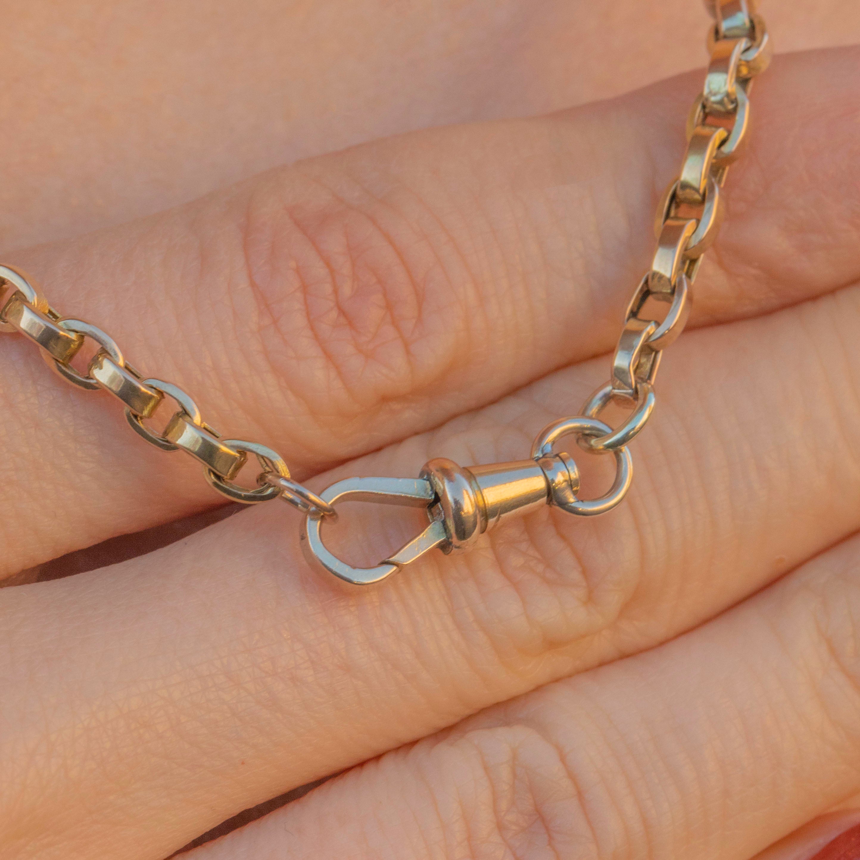 This antique 9ct Gold belcher chain is splendid! The buttery golden links possess a lustrous sheen and are steeped in Victorian splendour; this solid Gold chain is set to become a staple piece within your antique jewellery collection.