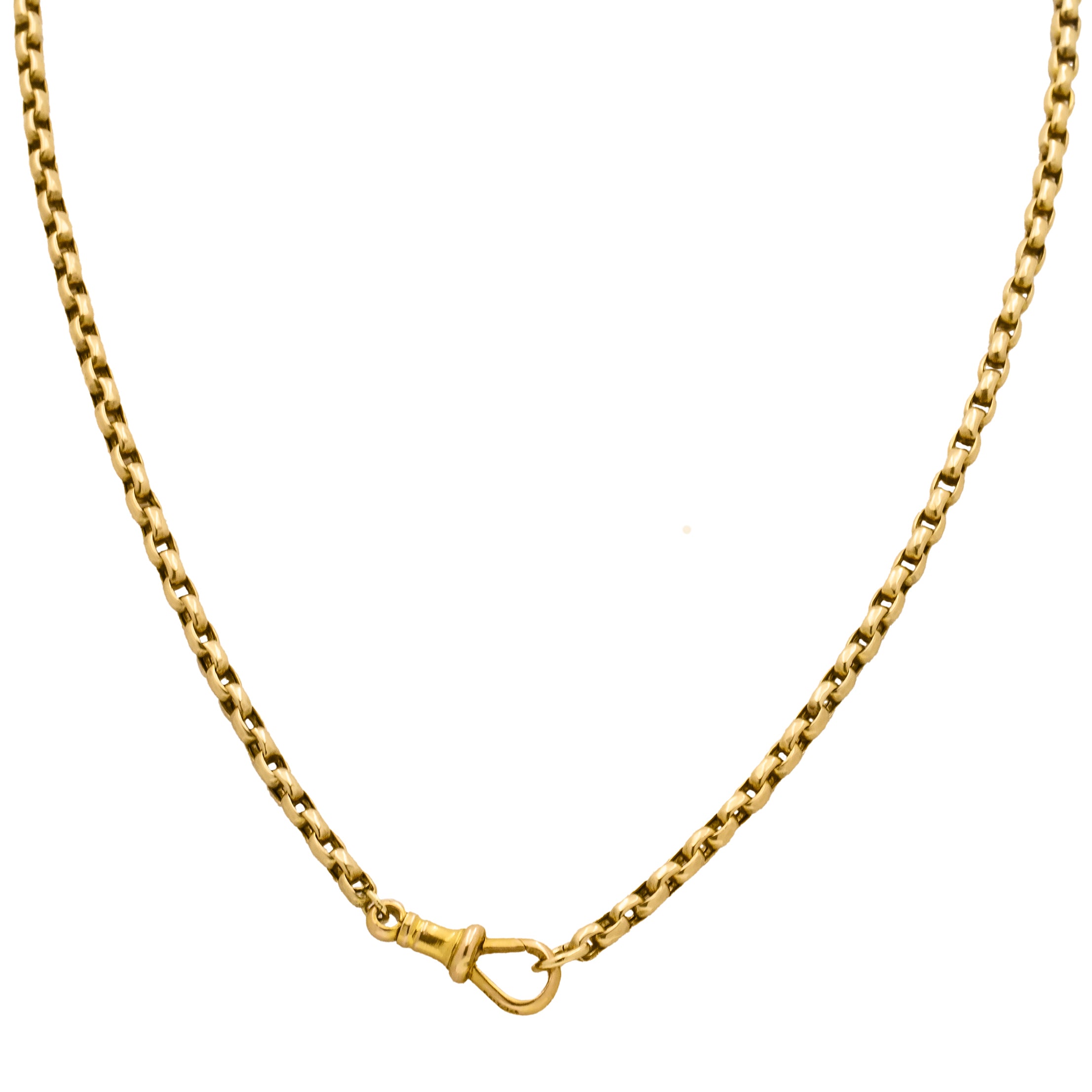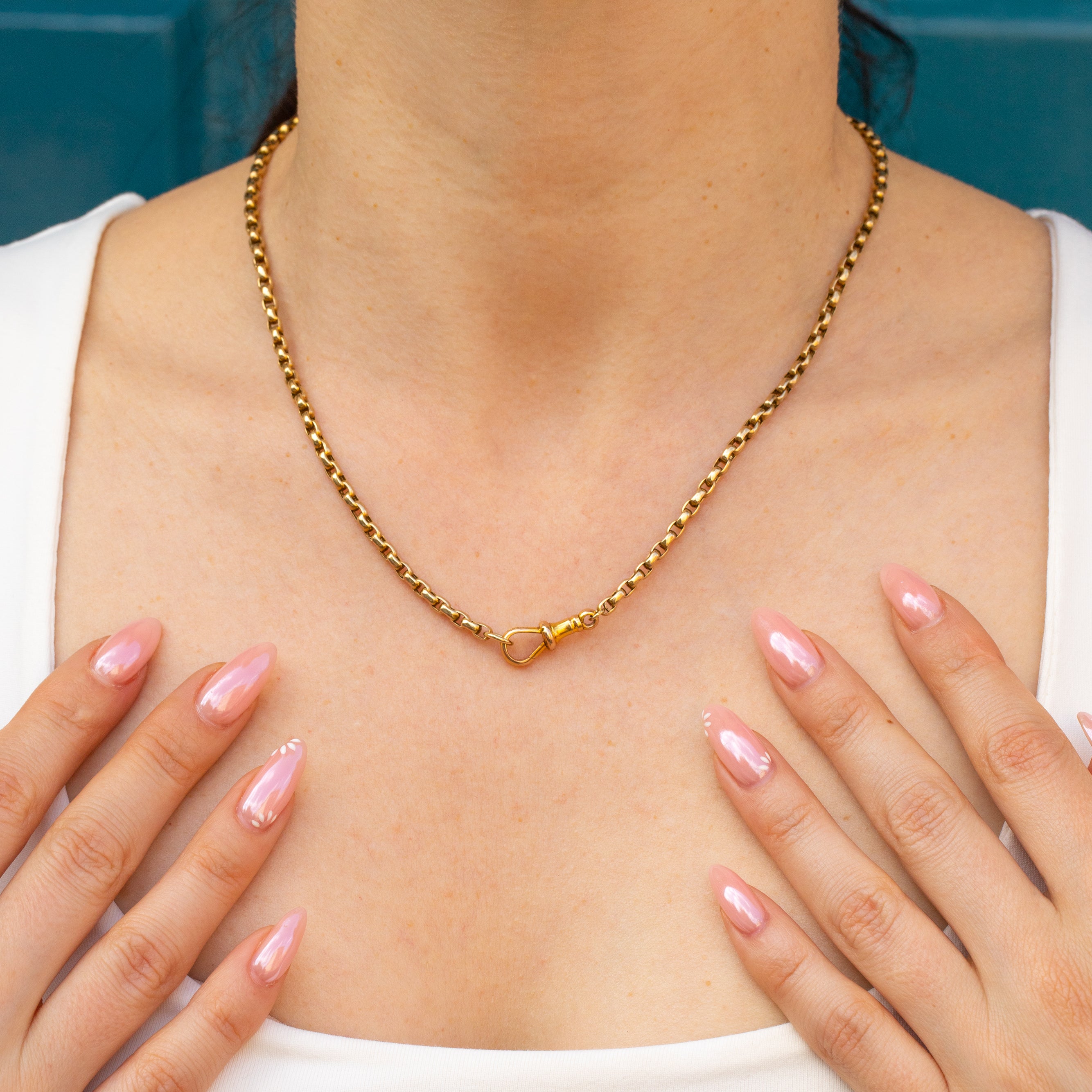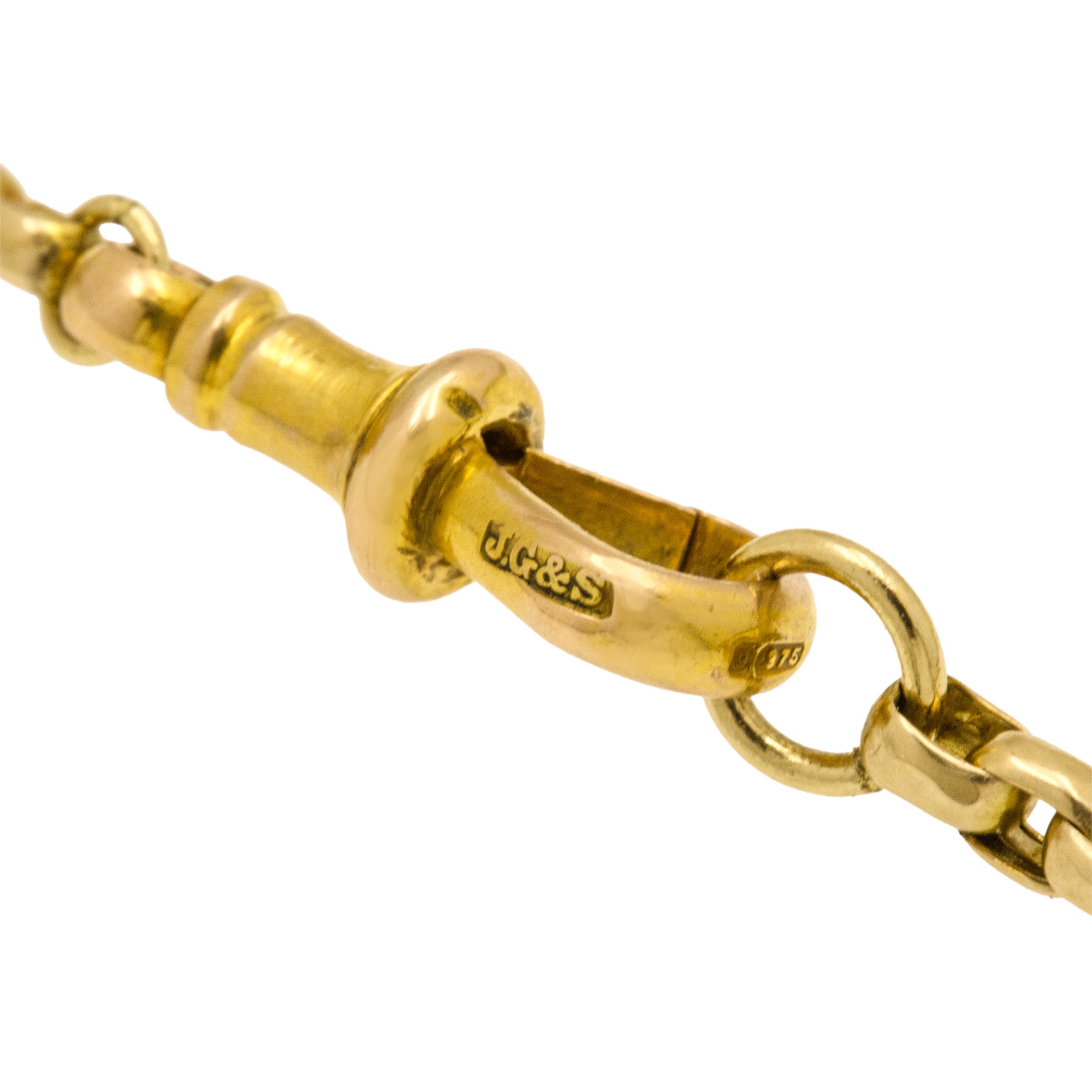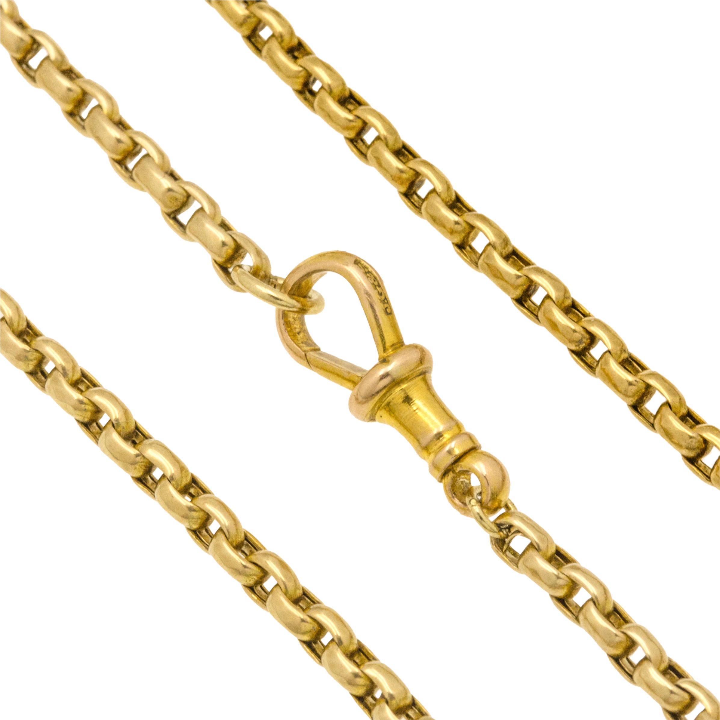 EXCELLENT. This 18" antique 9ct Gold belcher chain is in excellent condition! The links are all firmly connected and the Gold has a buttery hue throughout. The dog-clip is in perfect working condition allowing you to wear this Victorian belcher chain with the utmost confidence!