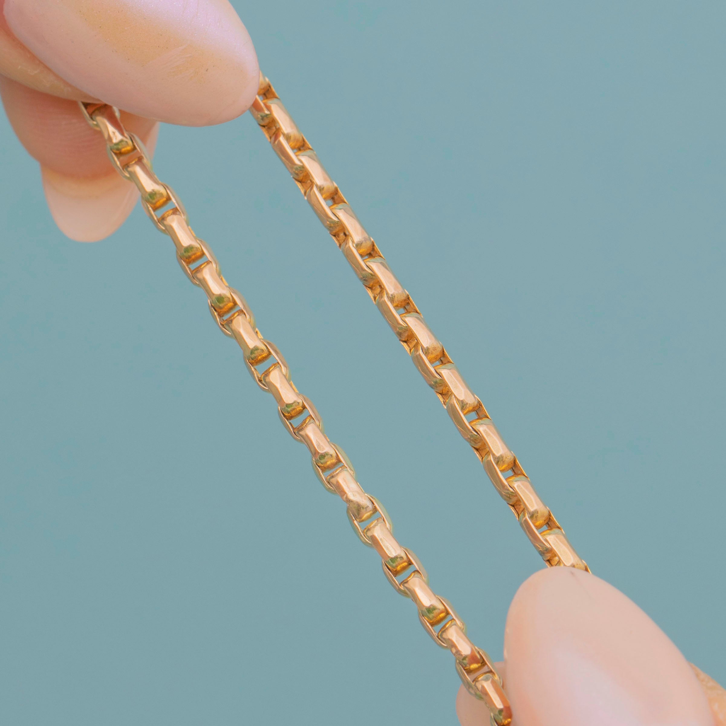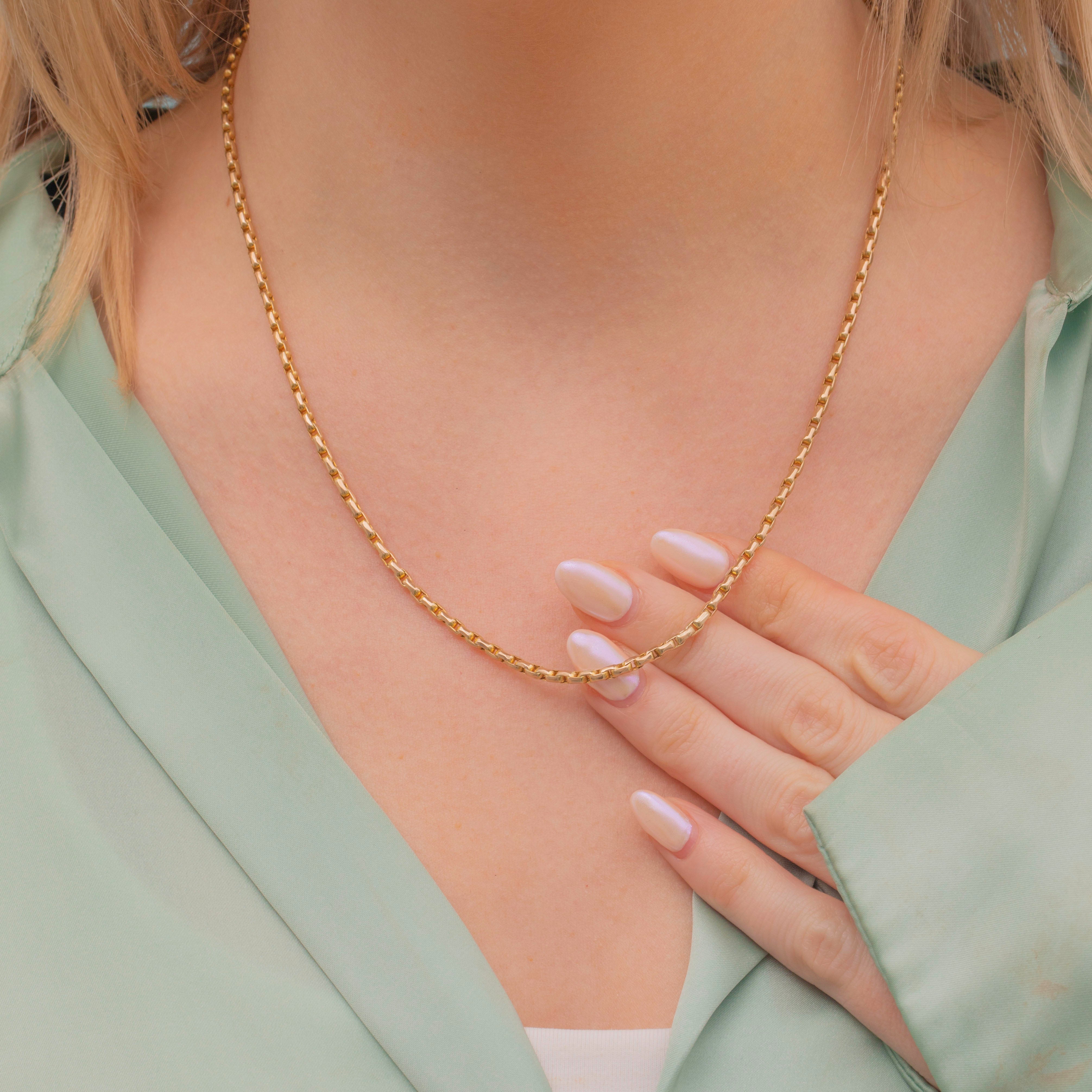 This 18" antique Gold belcher chain is the ideal staple piece to add to your jewellery collection. Victorian Gold chains are known for their versatility, and this one is no exception! At a wearable 18" long and crafted from buttery 9ct Gold throughout, this antique chain is perfect for all occasions.