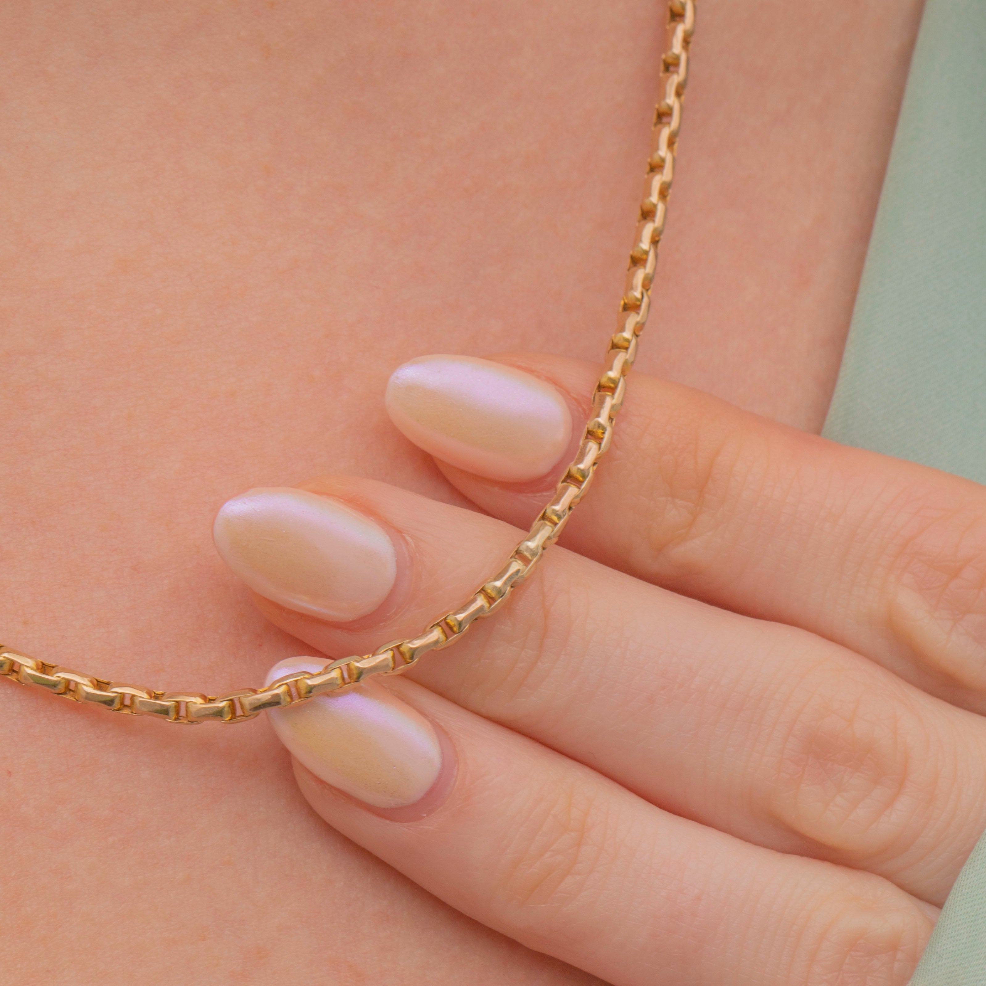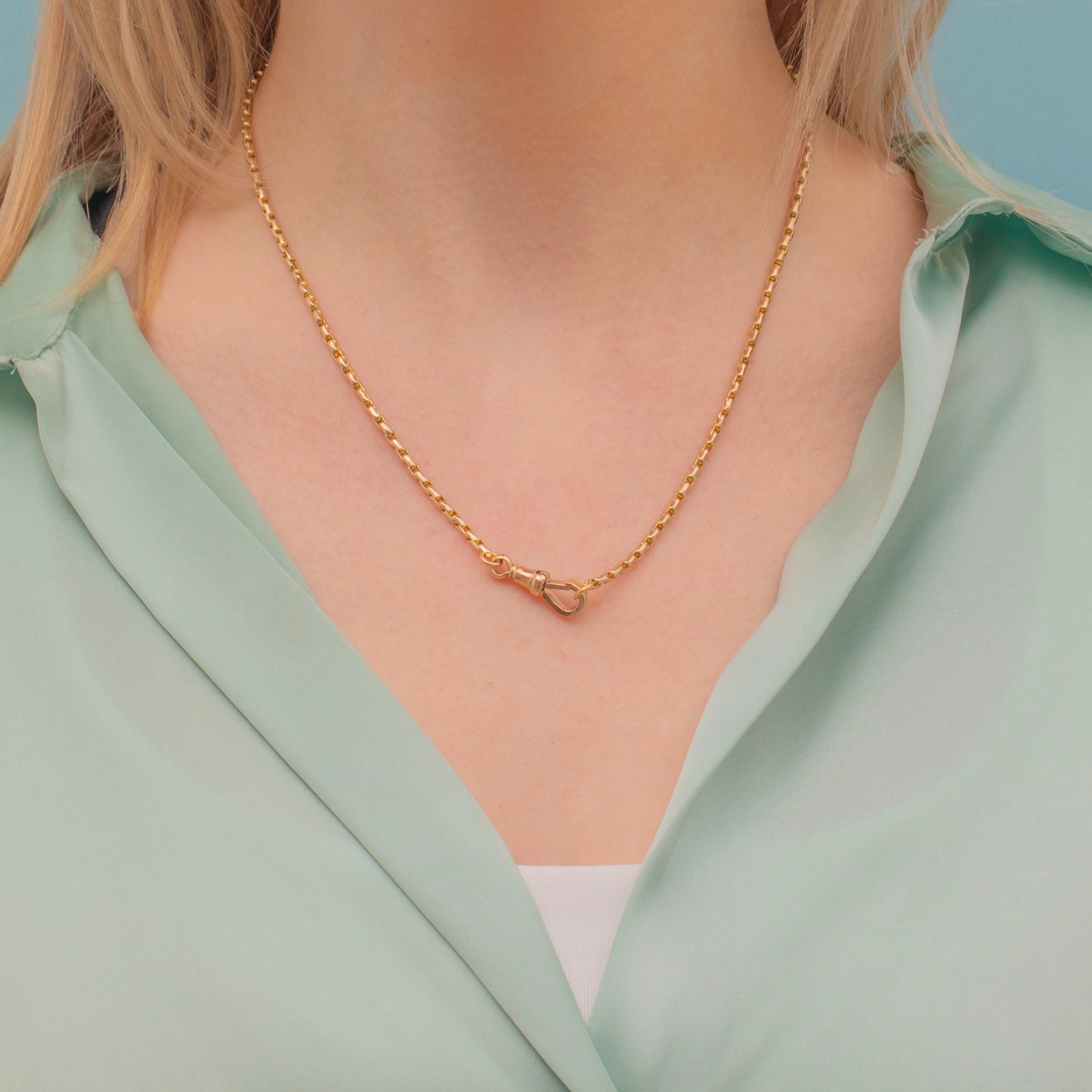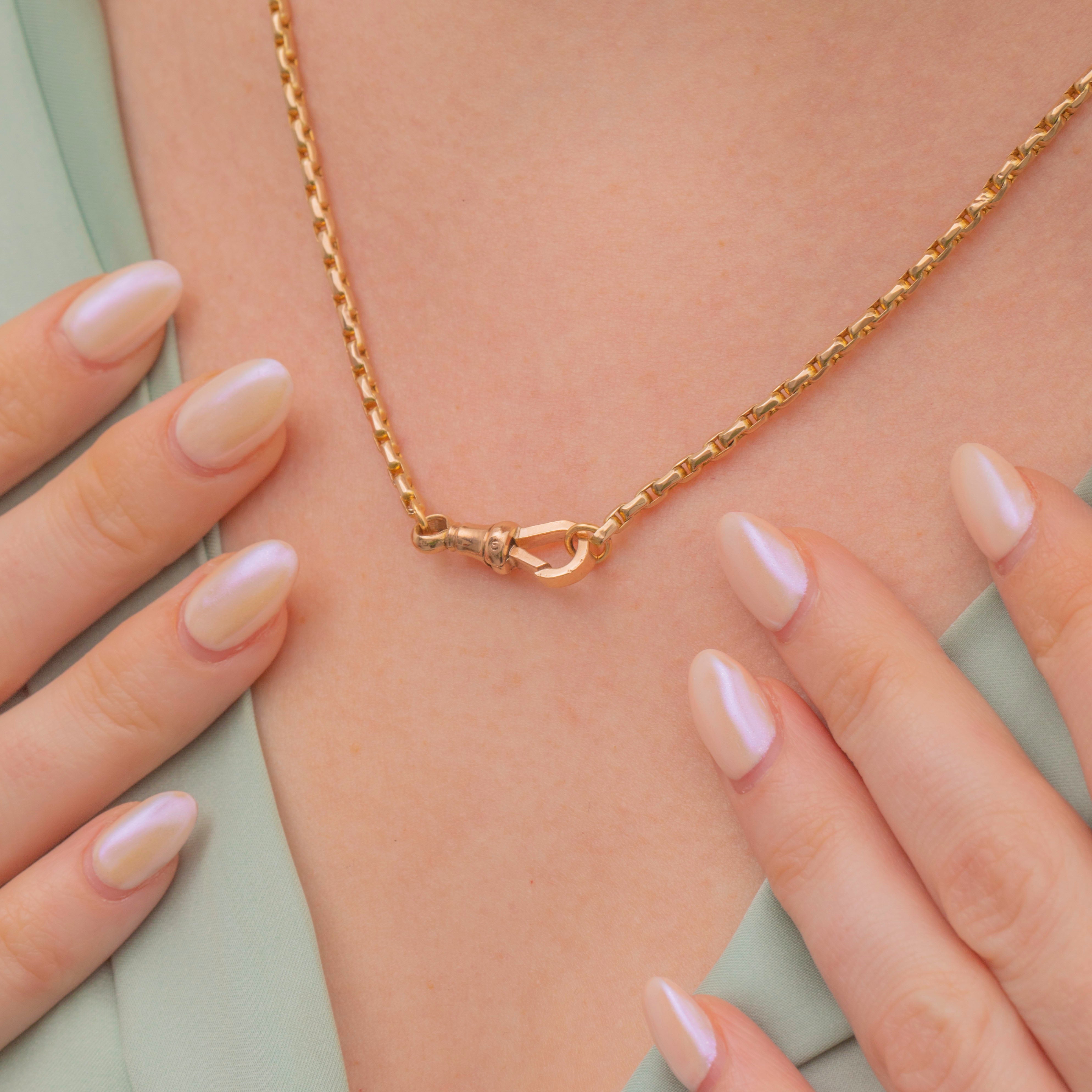 Her chunky belcher links are smooth and saturated, and are slightly square in shape, provising texture and depth. Complete with a highly-coveted antique dog-clip, you can suspend charms and pendants or layer her with other Gold chains - the options are endless!