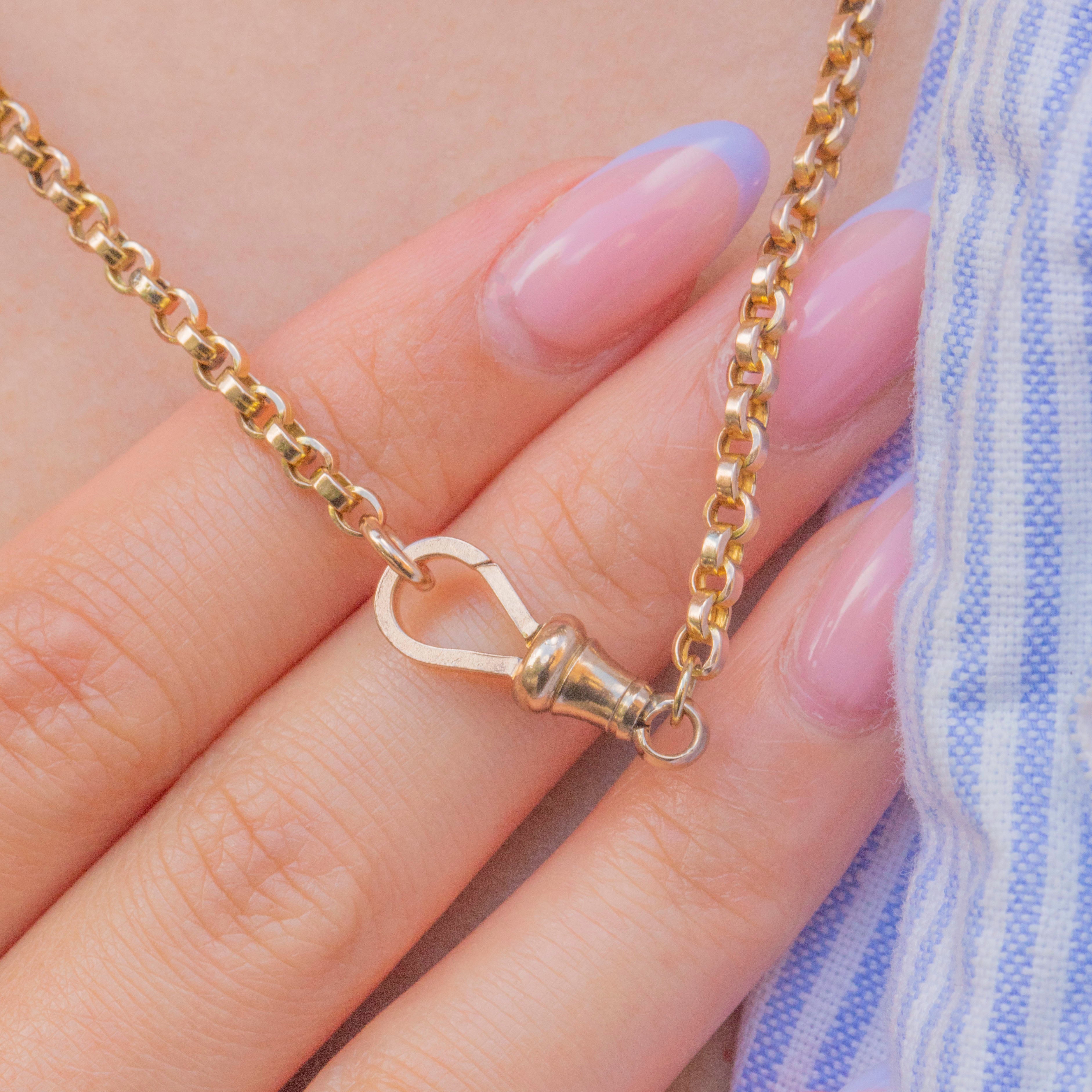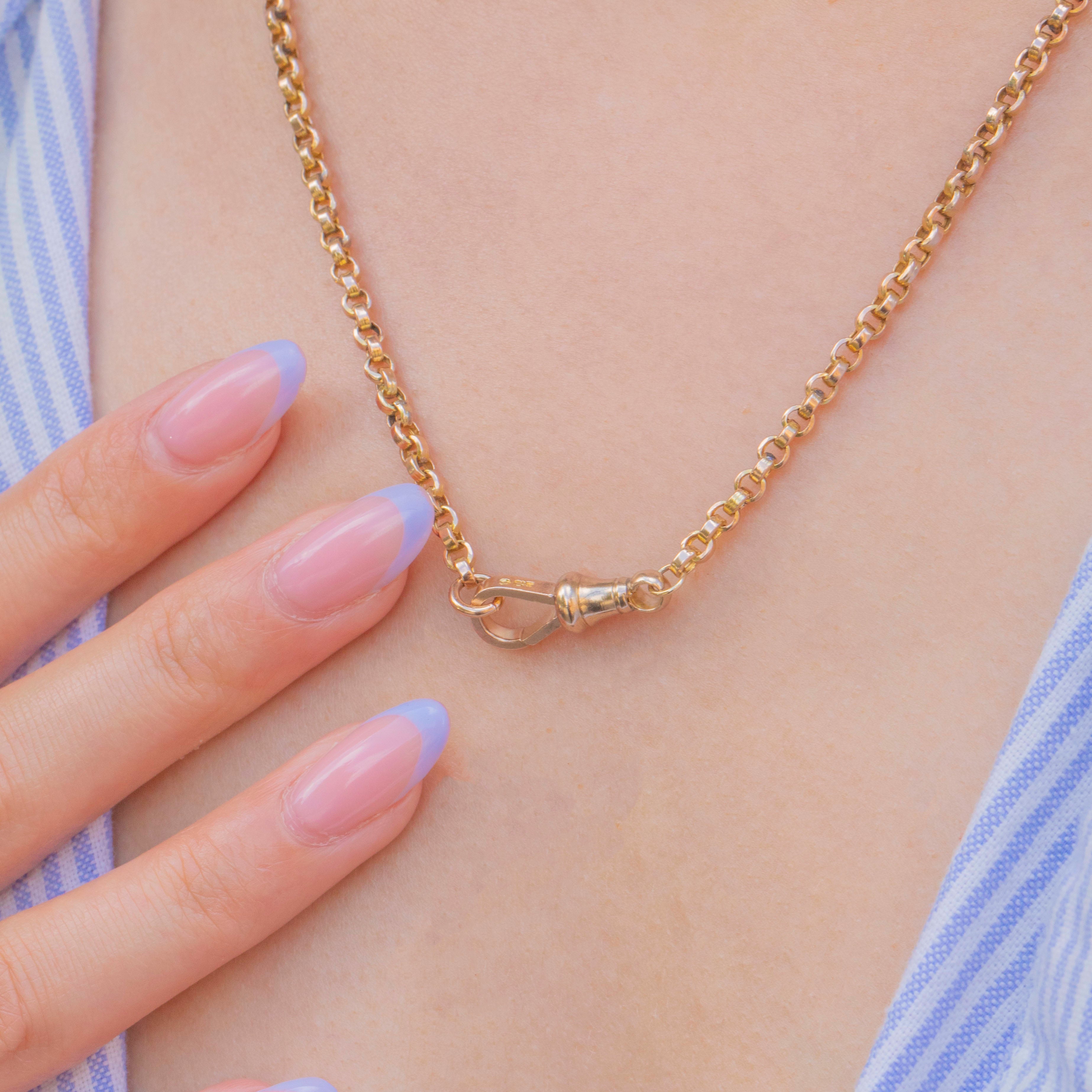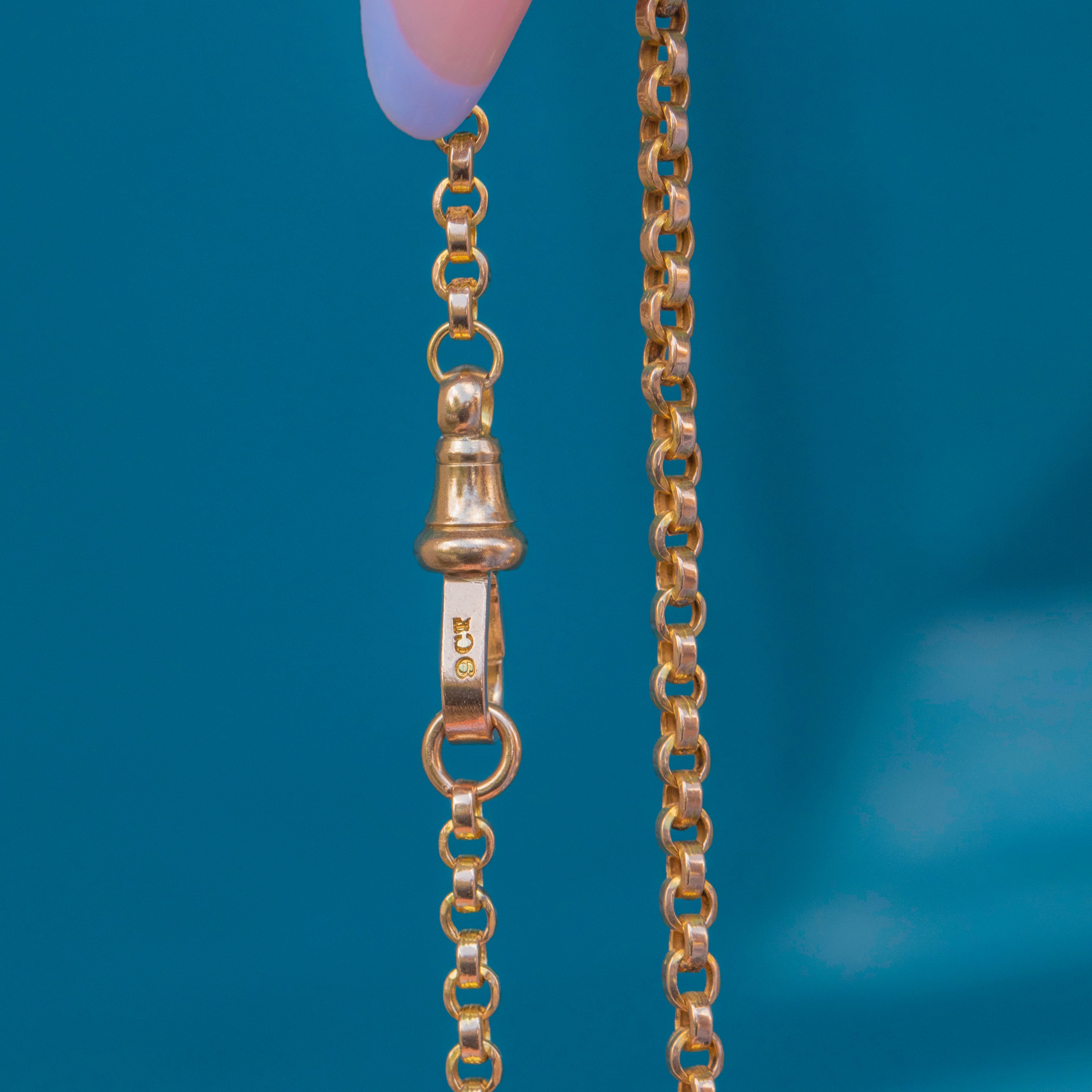 Complete with an adorable dog-clip, which you can customise with a small charm or pendant, this Victorian 9ct Gold chain is brimming with antique charm.