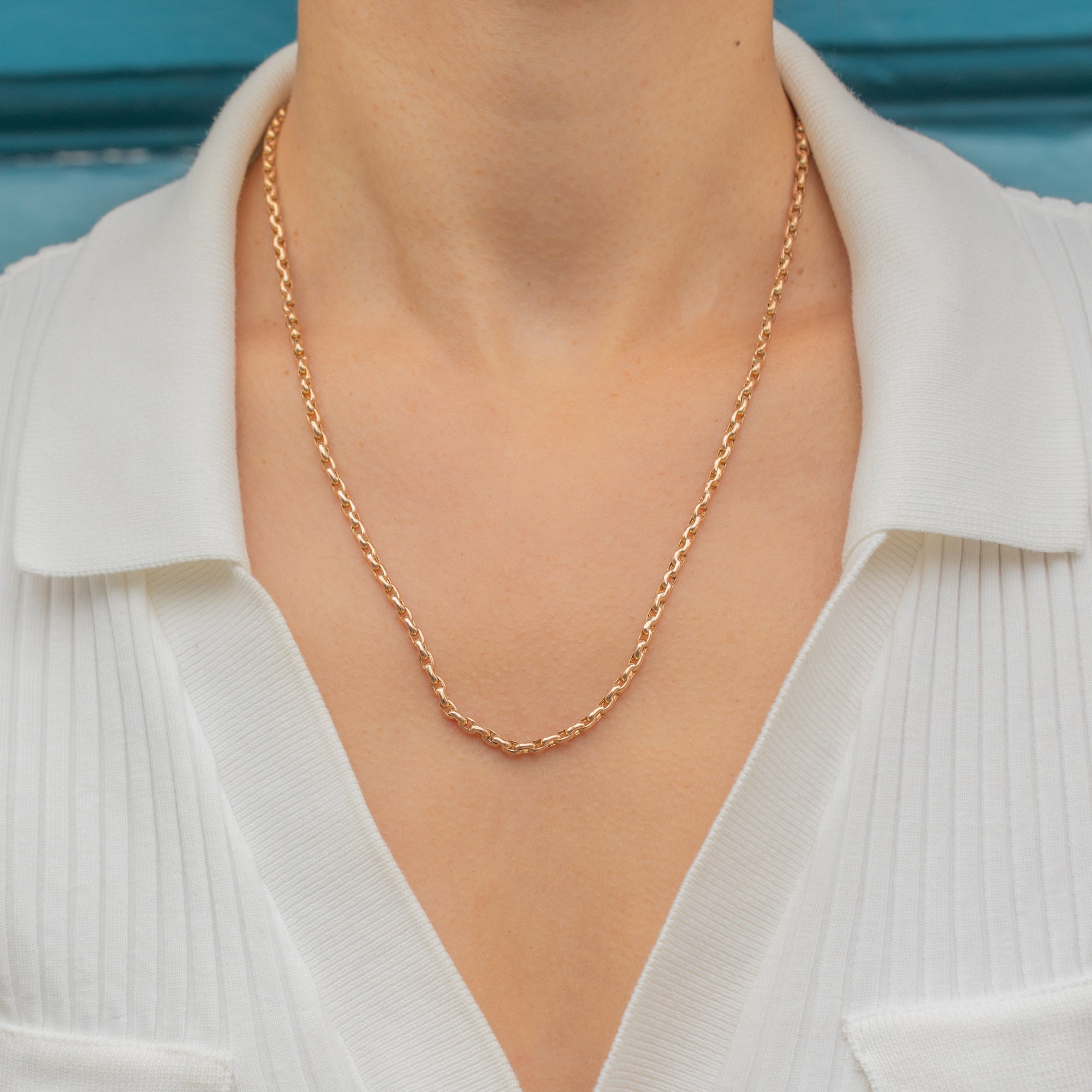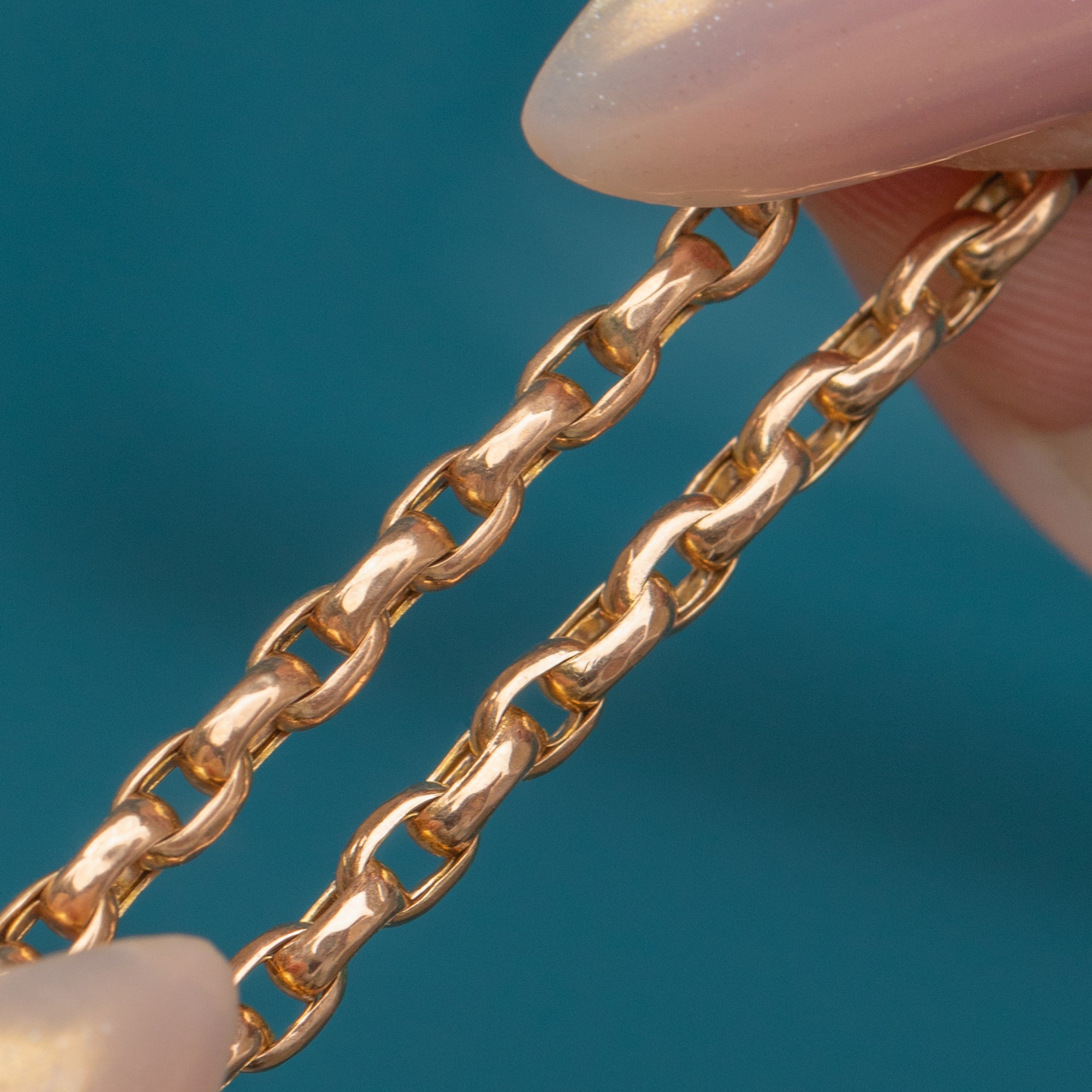 The 18" length makes it a versatile chain, perfect for wearing alone, layered with other antique chains, or paired with a pendant or locket. The links are weighty and well-crafted, offering both durability and timeless style.