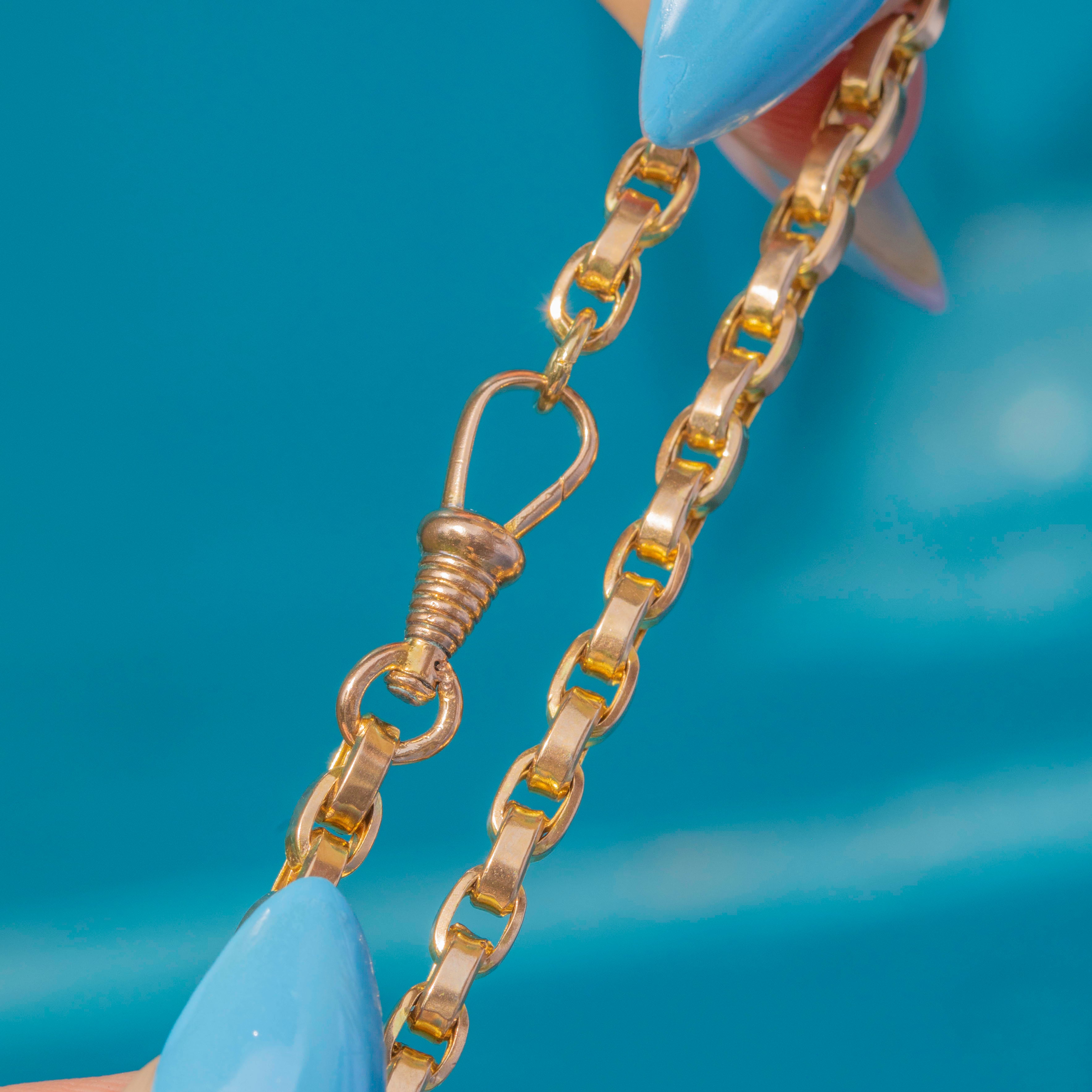 EXCELLENT: Each link is uniform and secure and radiates a gorgeous glossy warmth. With the dog-clip in perfect working order and little else to note, this Victorian chain can be worn with utmost confidence.