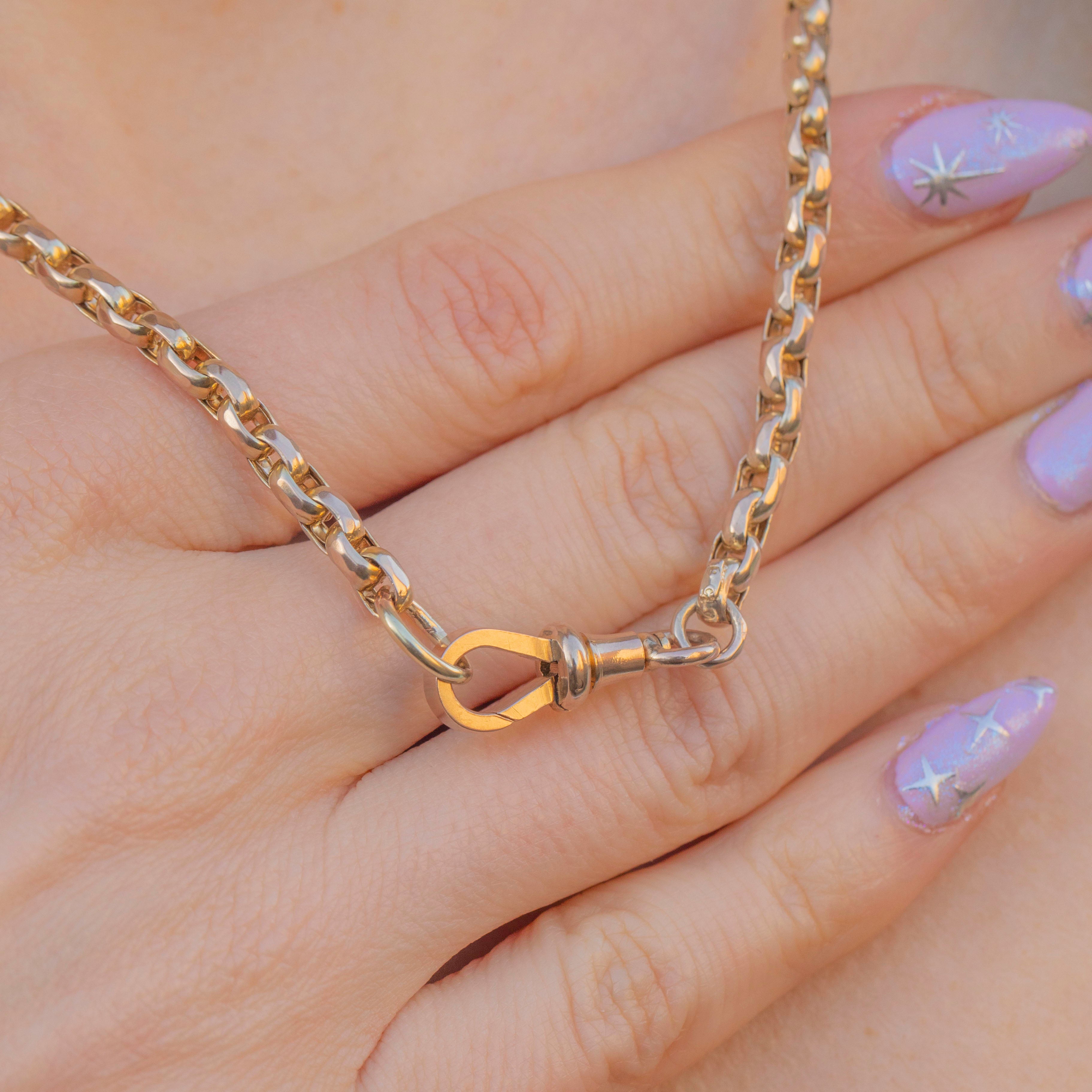 Crafted entirely from buttery 9ct Gold, she has gorgeous faceted belcher links and a highly coveted antique dog-clip to finish, which you can personalise with your own charms and pendants!