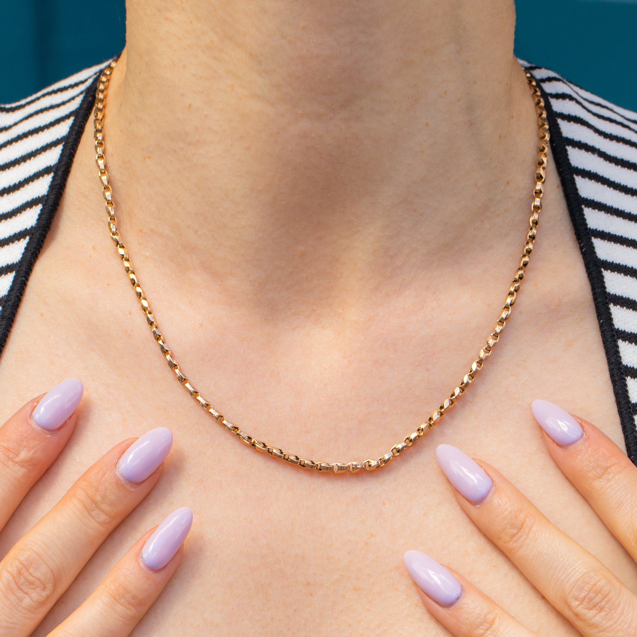The perfect 18" antique 9ct Gold tulip link chain for your collection. Crafted from a brightly saturated 9ct Gold, she features an antique dog-clip for all your charm-holding needs!