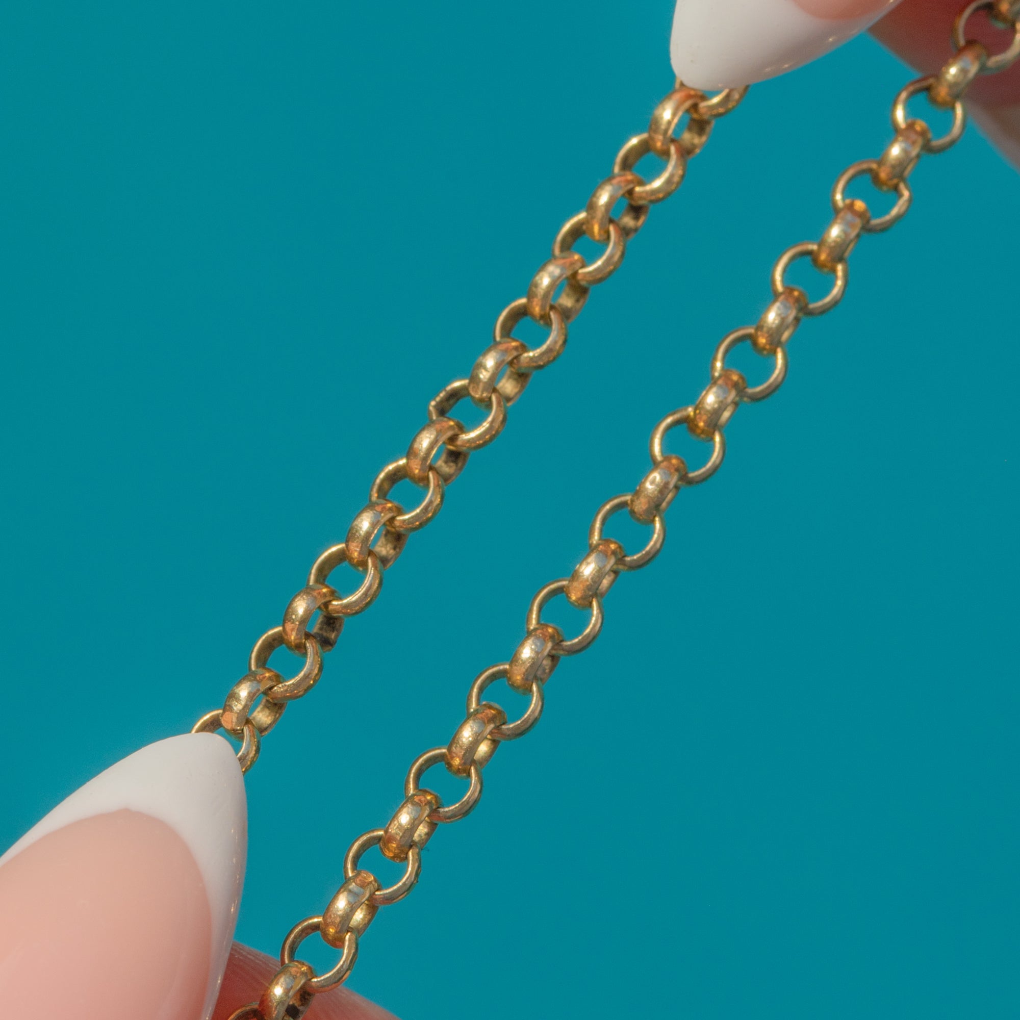 A classic antique belcher chain crafted in 9ct Gold. This piece has a warm golden hue and a versatile medium weight, making it perfect for wearing alone or pairing with pendants.