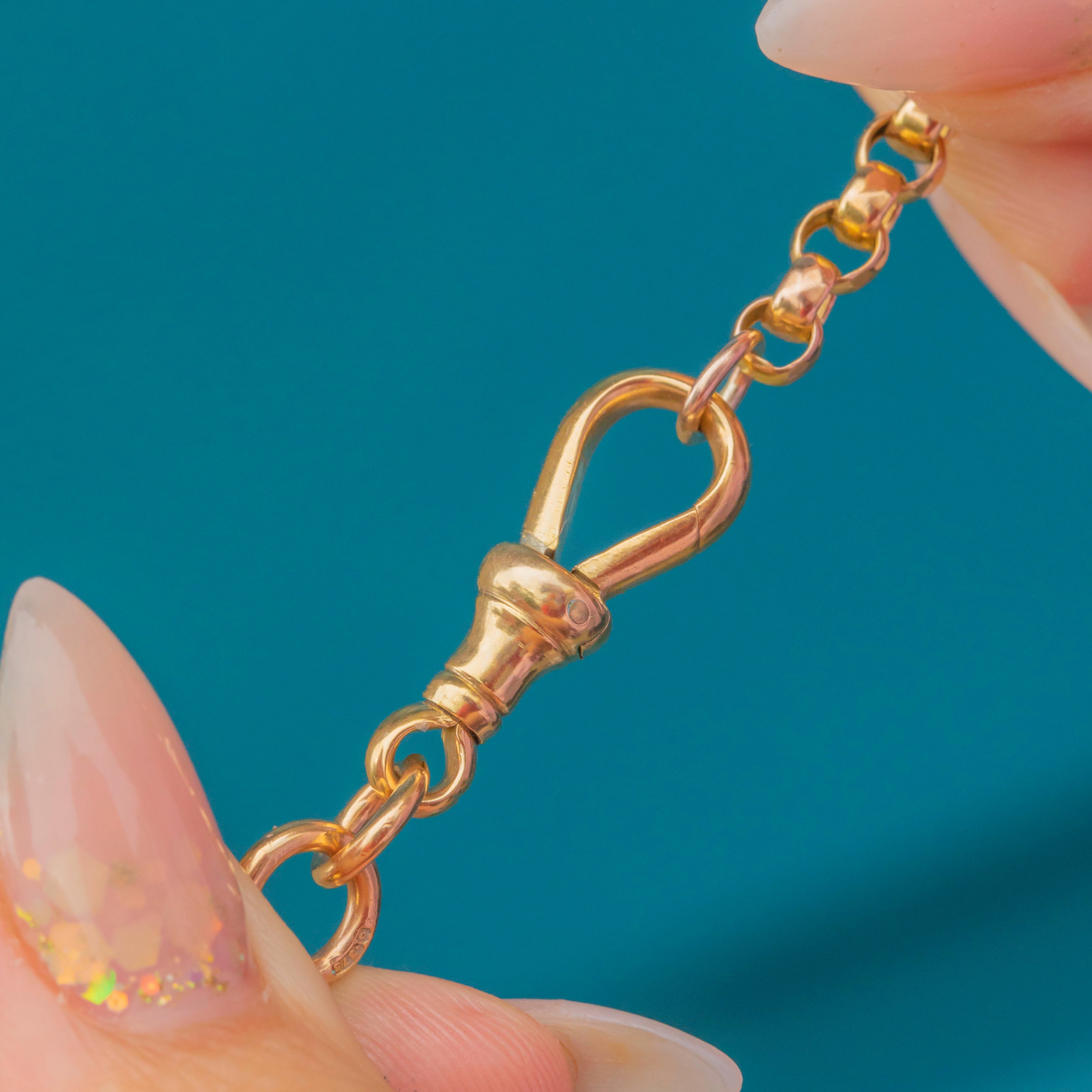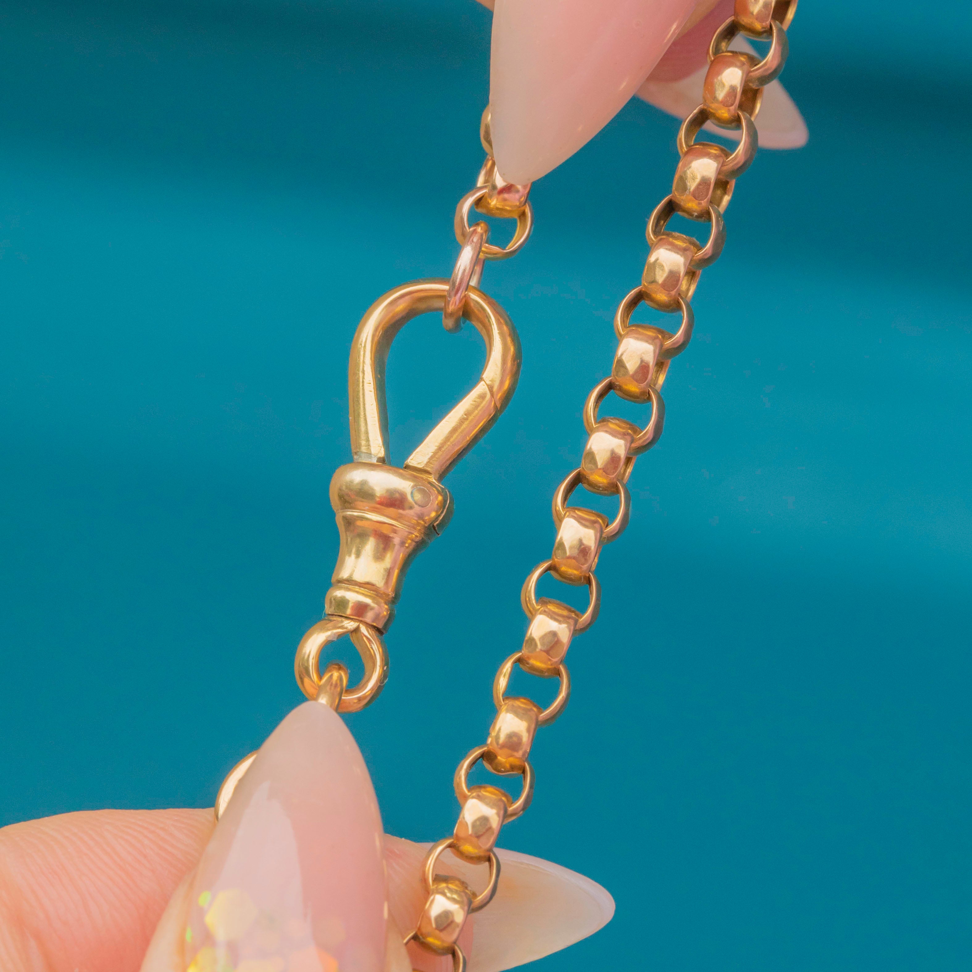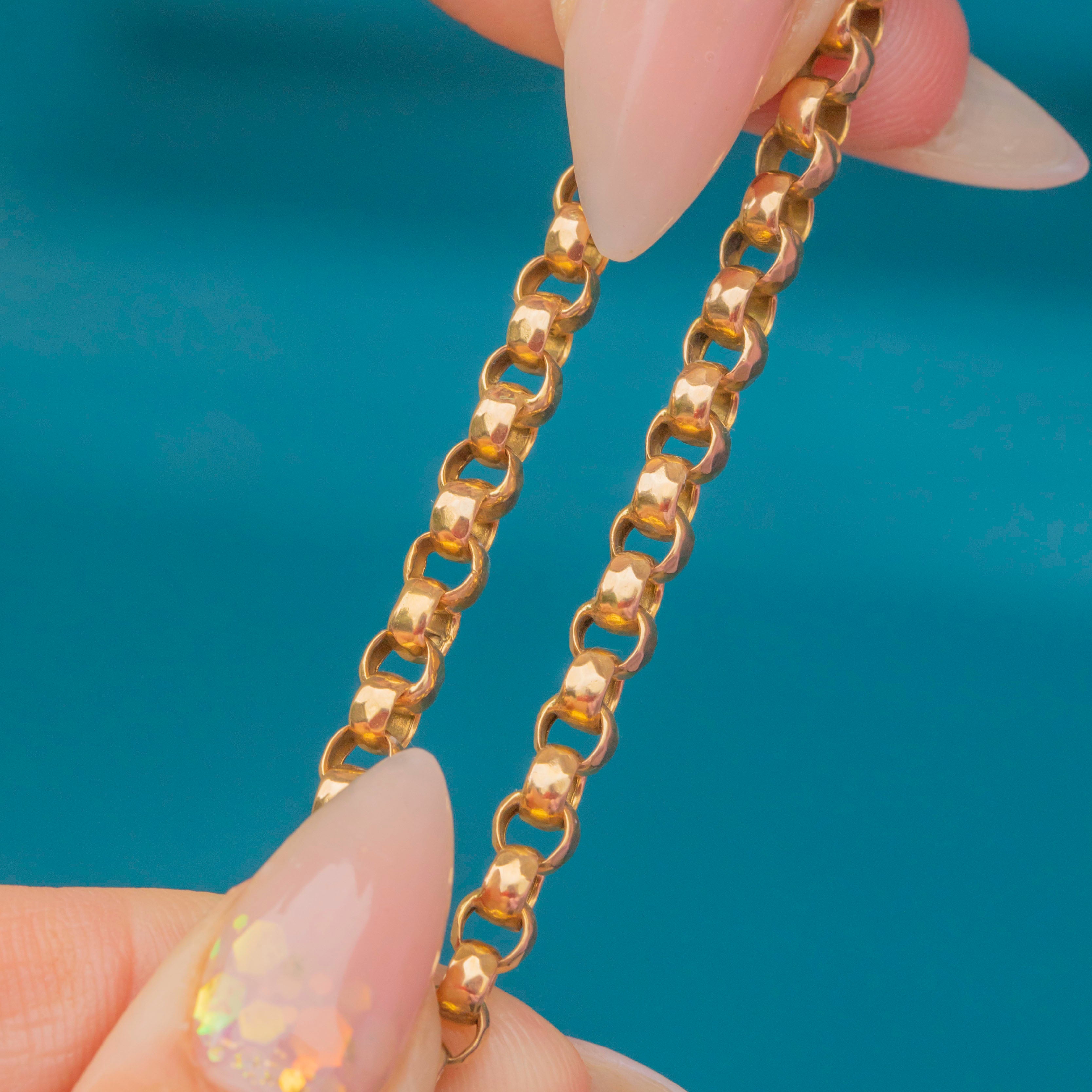 A beautiful Victorian belcher chain crafted in richly coloured 9ct Gold. The rounded links are smooth and bright, giving the chain a classic antique character that is both versatile and elegant.