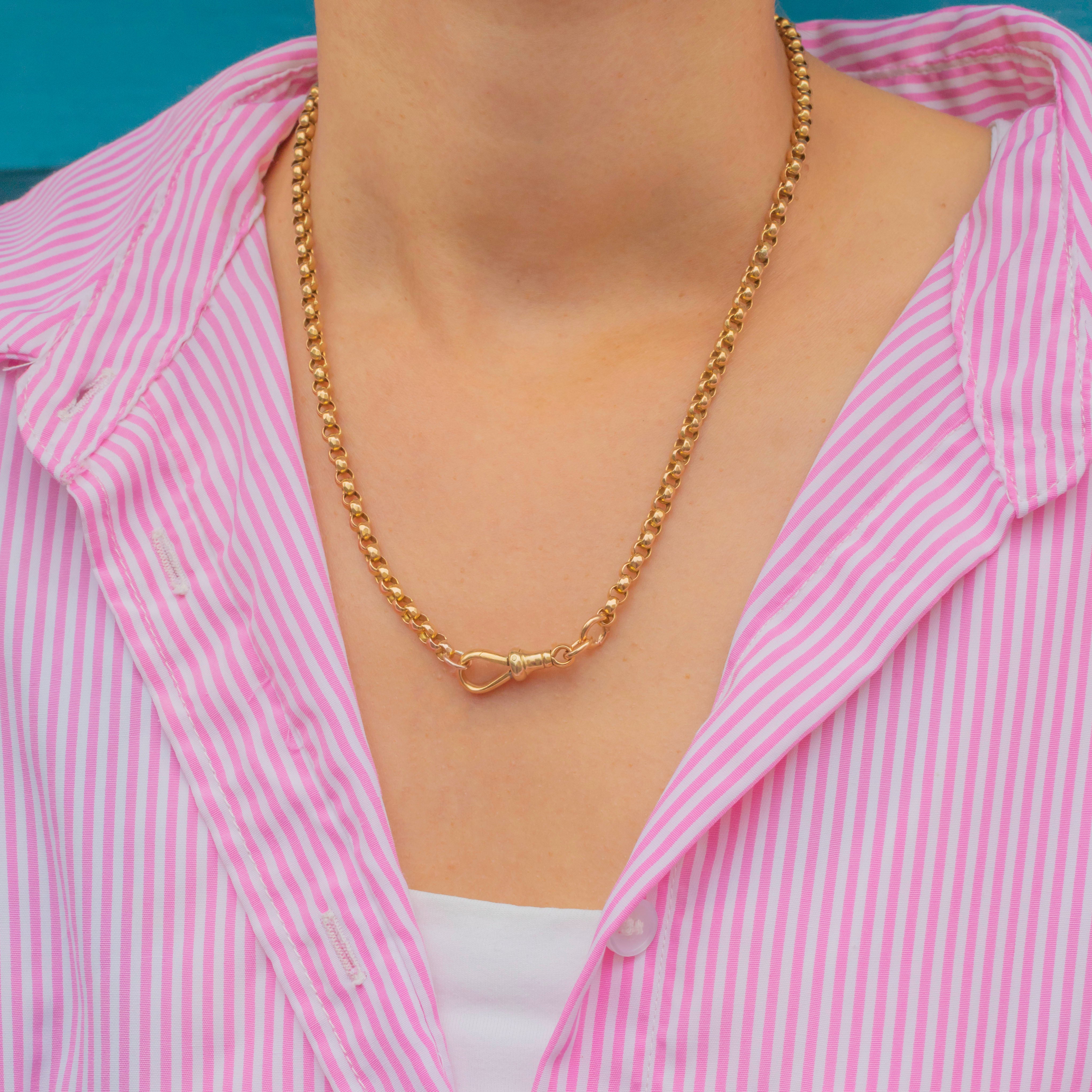 Secured with a substantial 23.5mm dog-clip clasp, this is a perfect chain for wearing with pendants, lockets, or charms.