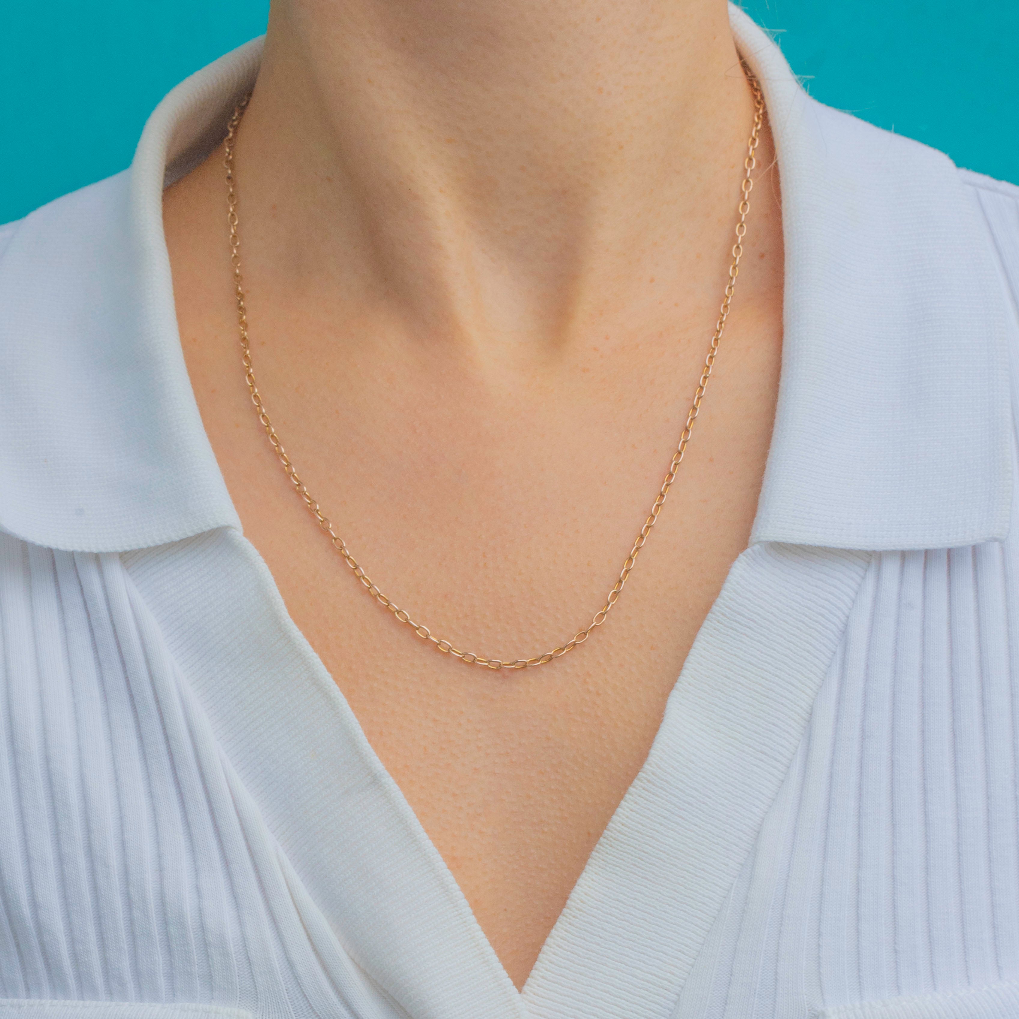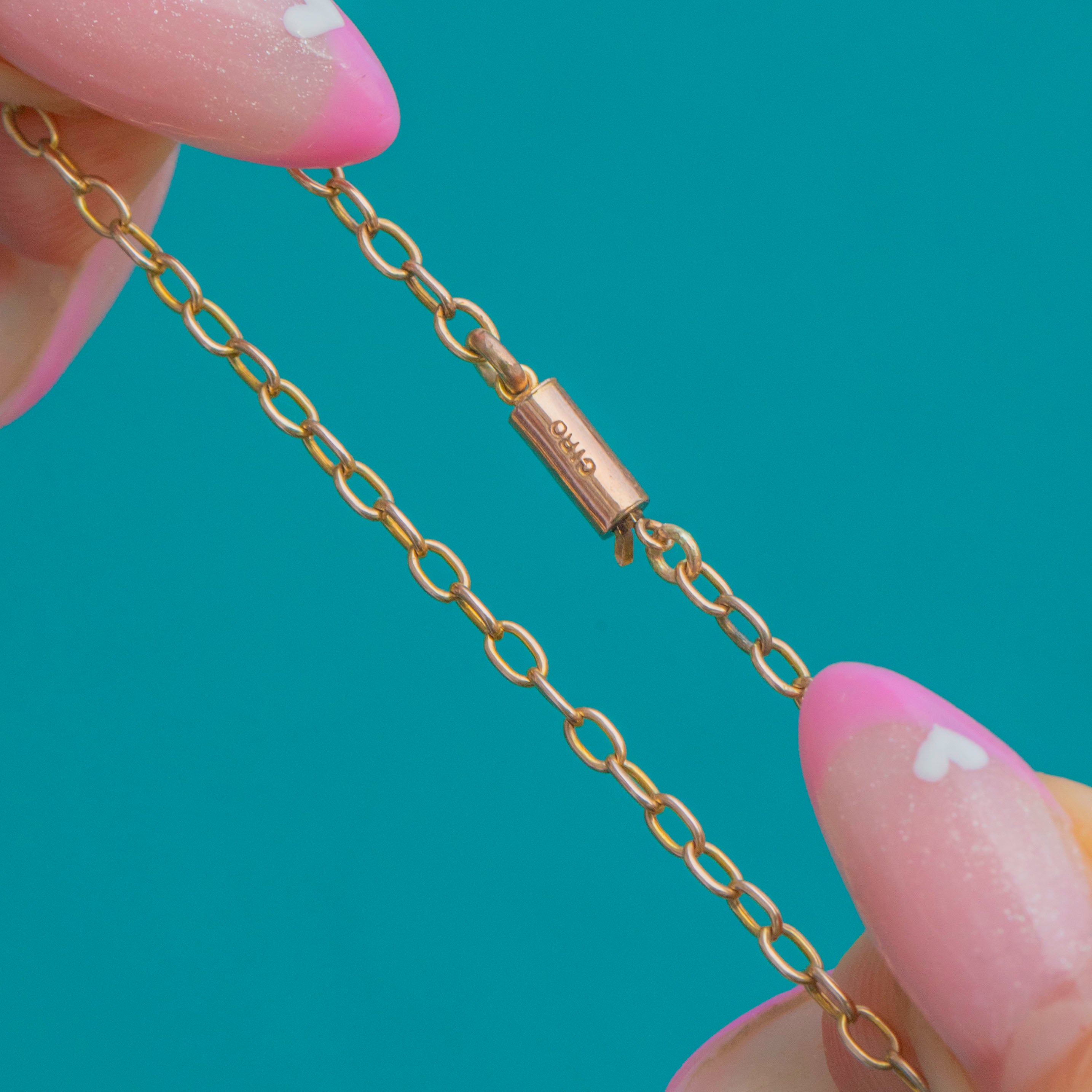 This elegant Victorian 9ct Gold belcher chain features classic oval links and a secure barrel clasp, a timeless staple of 19th-century jewellery. The fine 2mm links create a delicate yet sturdy chain, perfect for pairing with pendants or wearing alone for a subtle touch of antique Gold.