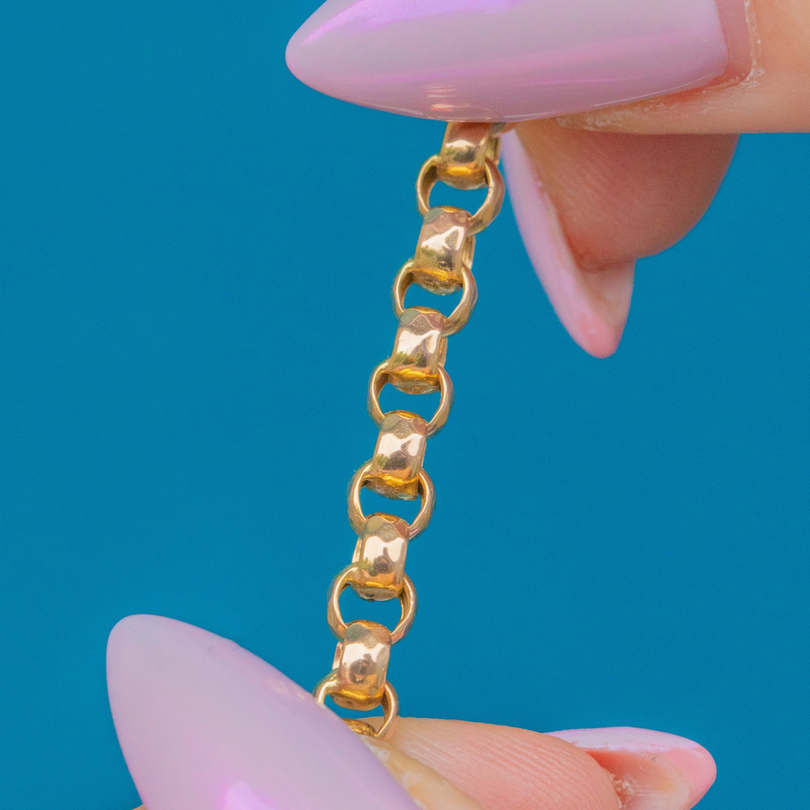 A superb Antique 9ct Gold chain of excellent weight and quality. The links are beautifully crafted with a smooth, bright polish, giving the chain a rich, buttery tone and luxurious feel. Substantial yet elegant, this classic design is perfect for everyday wear or pairing with a statement pendant or charm.