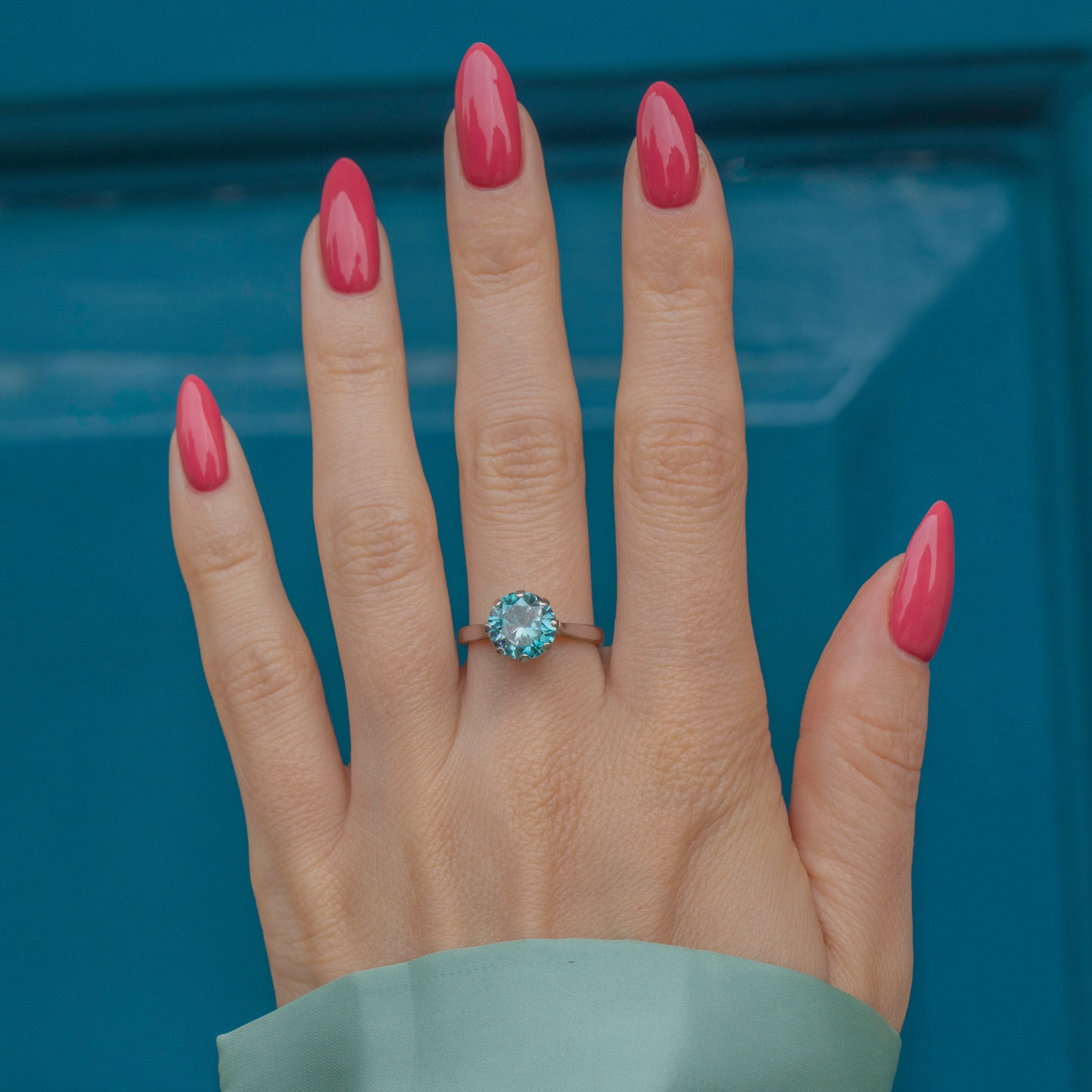 MATERIALS: 18ct White Gold shank, Blue Zircon (3.60ct).