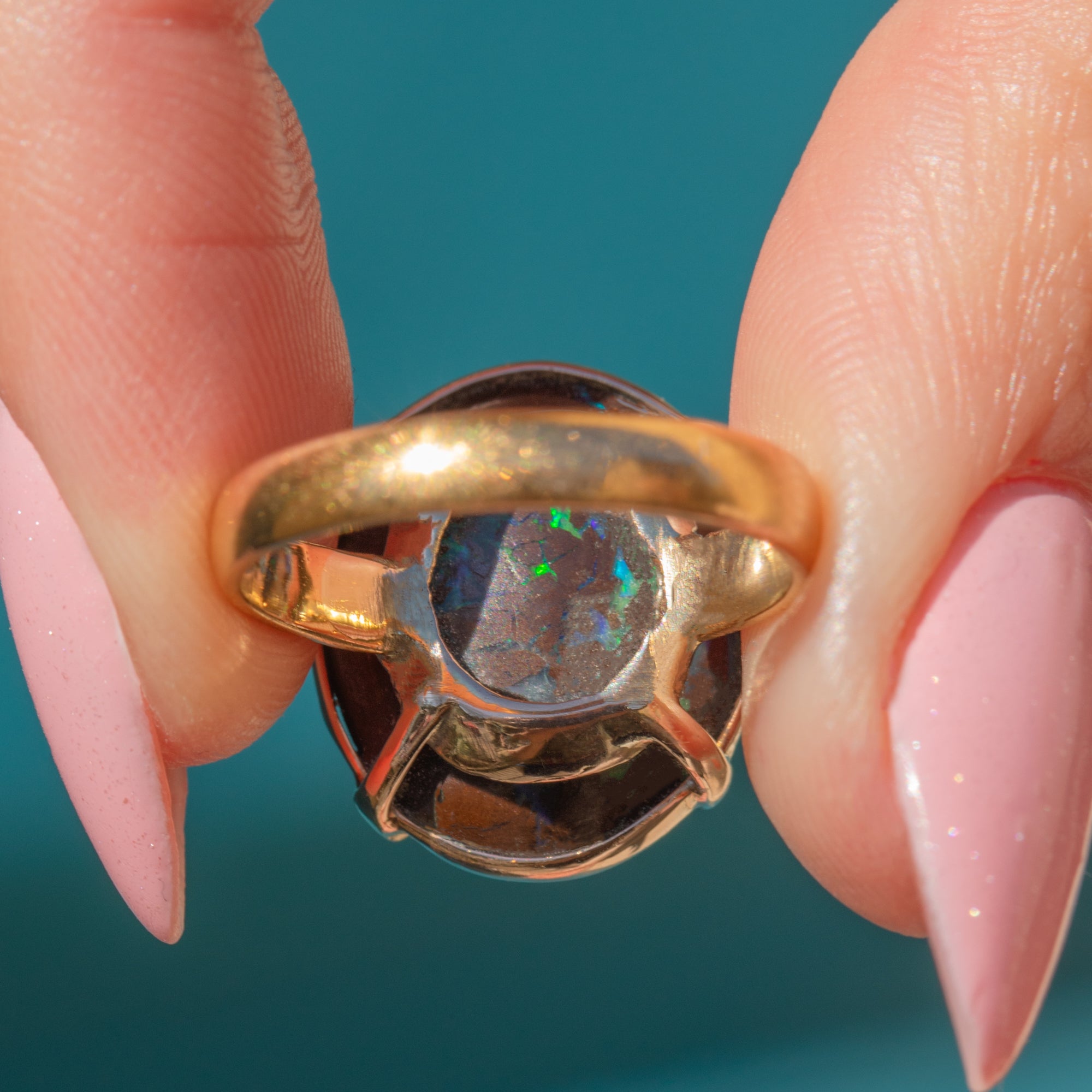 The Boulder Opal provides the finger with ample coverage and you will discover a new pattern or colour within this impressive treasure every time you look at it!