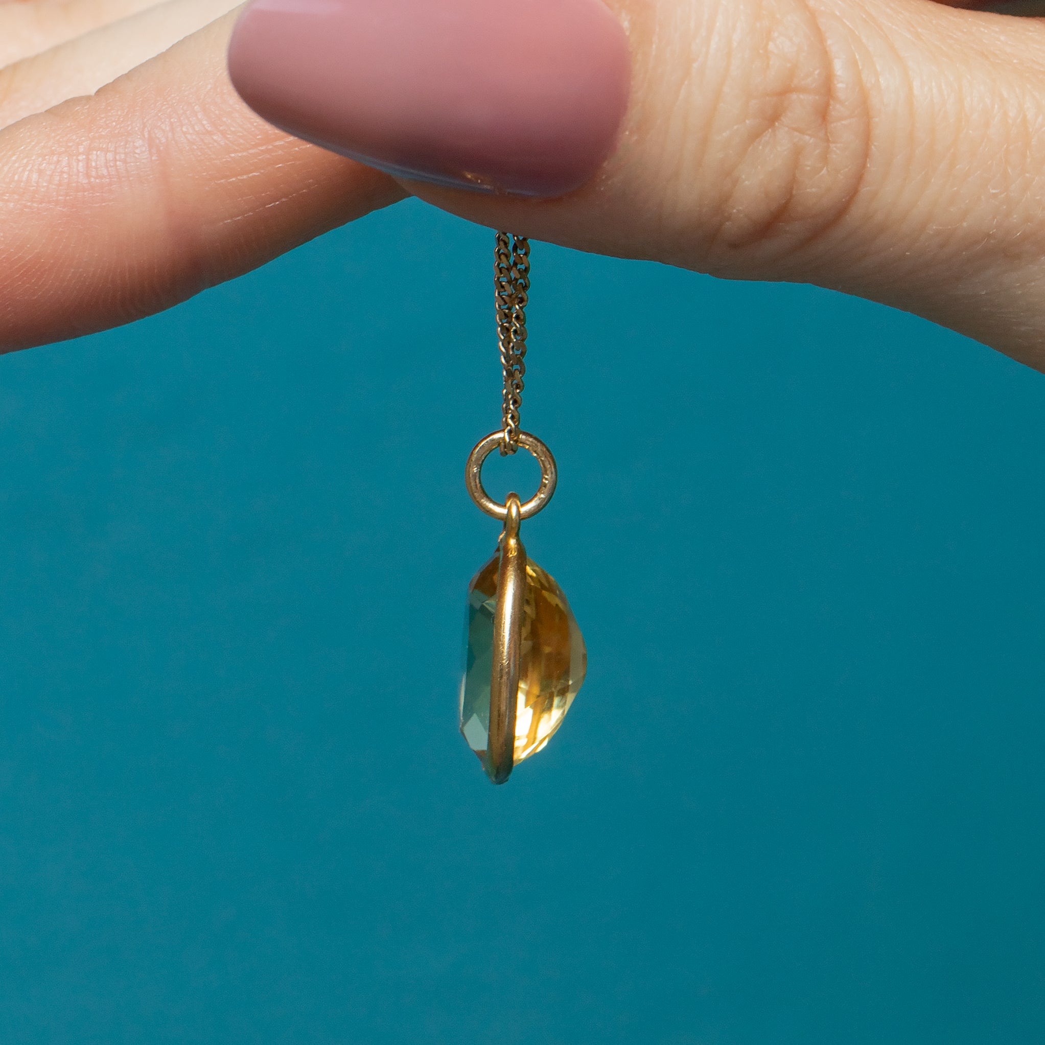 EXCELLENT. This 18ct Gold Citrine bezel-set charm is in excellent condition! The Citrine has a delicious syrupy hue and is secretly nestled into its bezel setting allowing you to wear it with the utmost confidence!