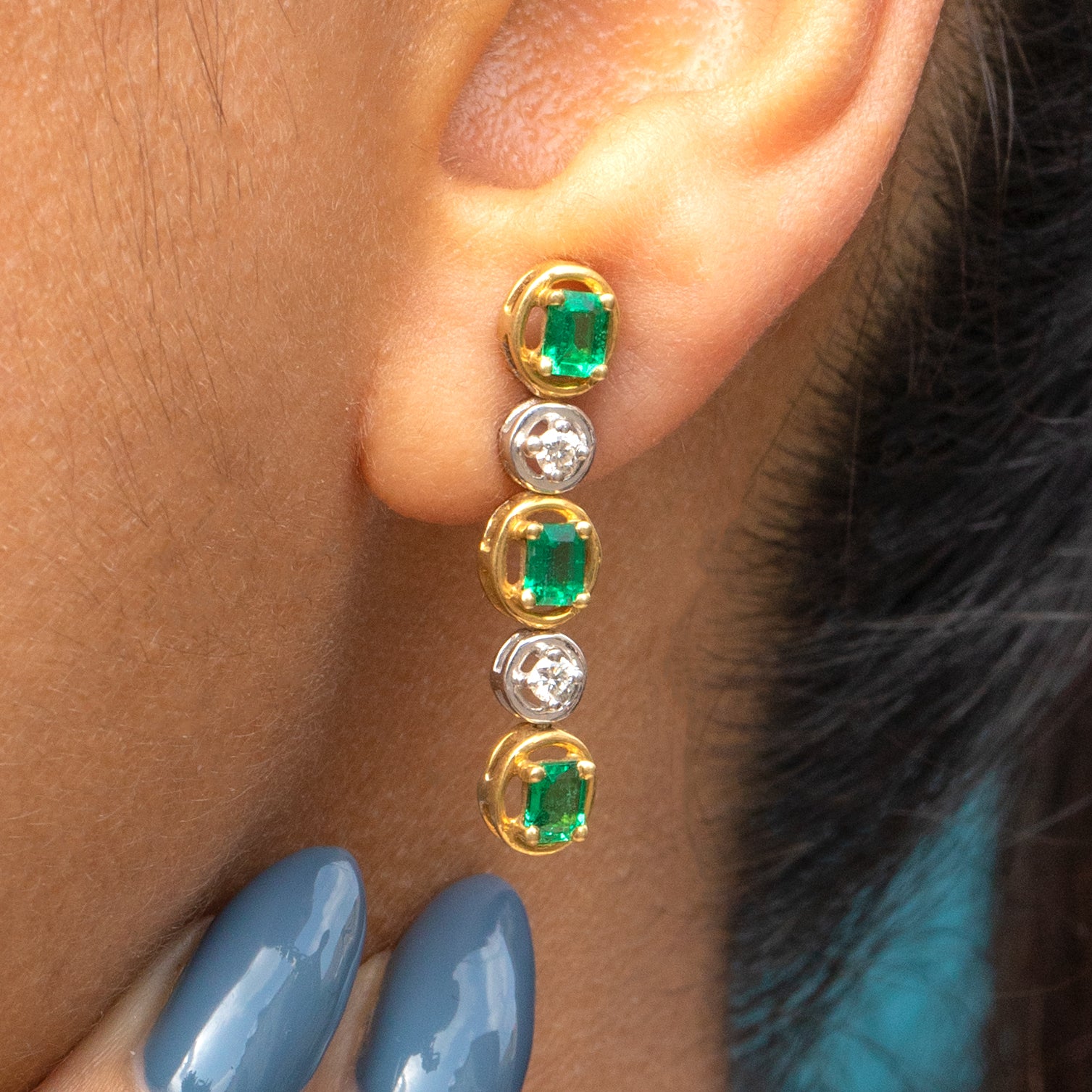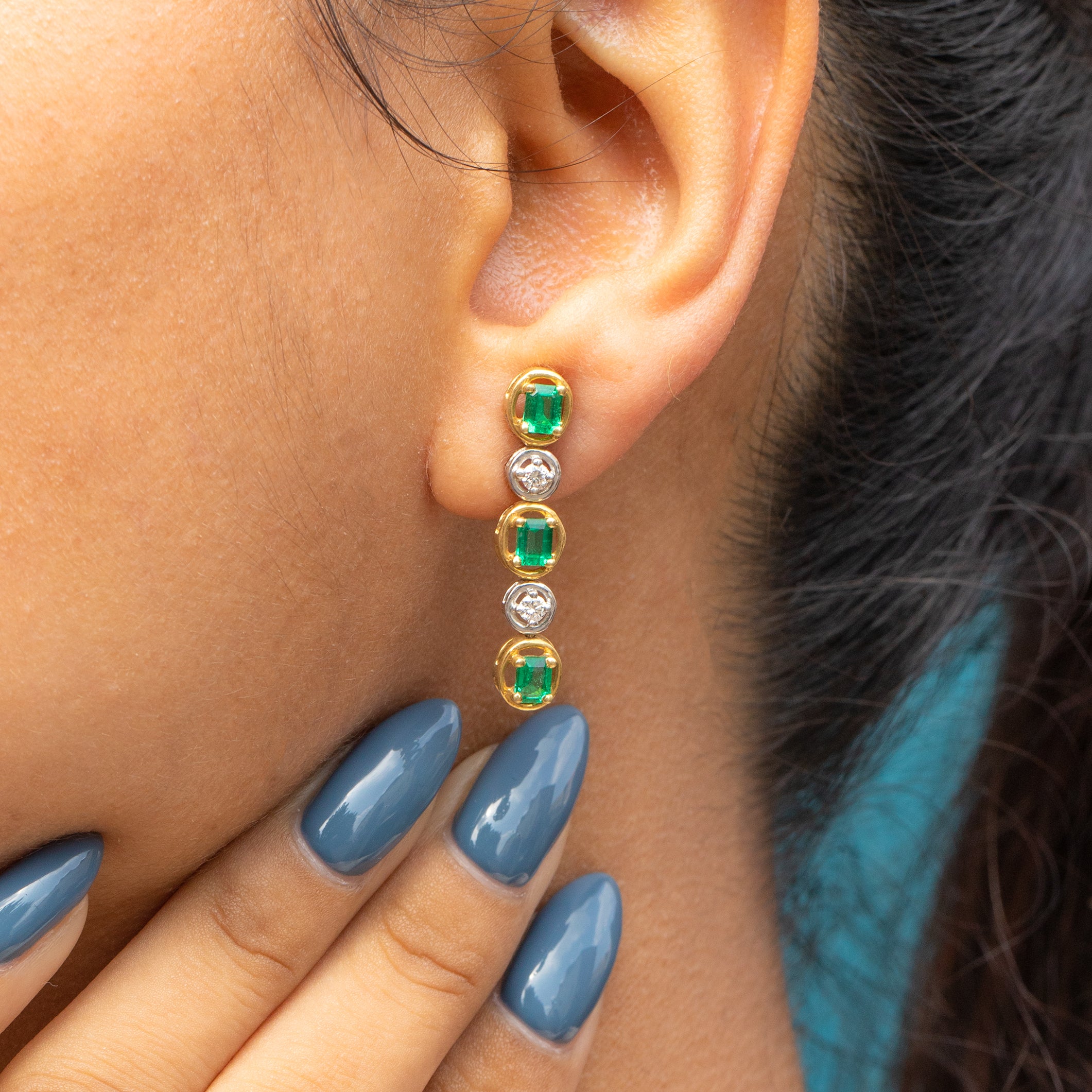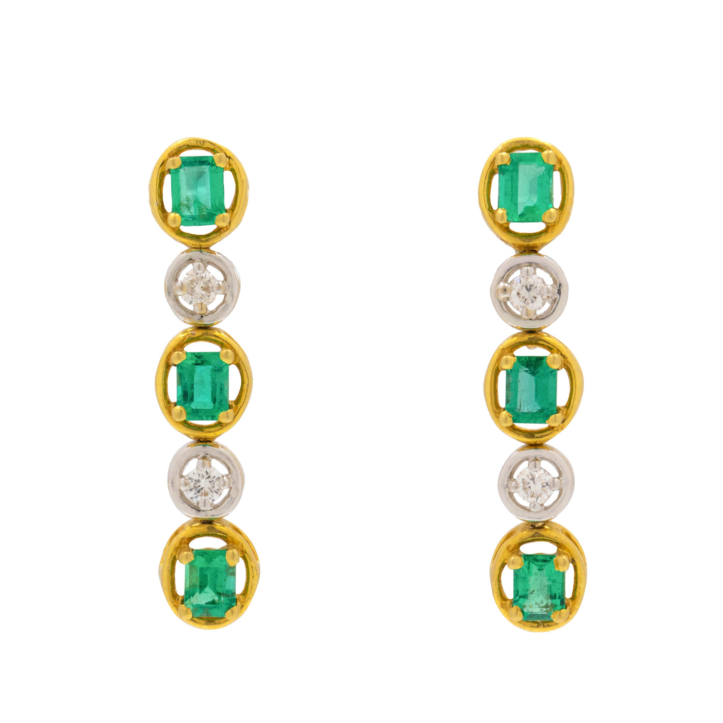 Boucles d'oreilles pendantes en or 18 carats avec émeraude et diamant, émeraude 0,40 ct