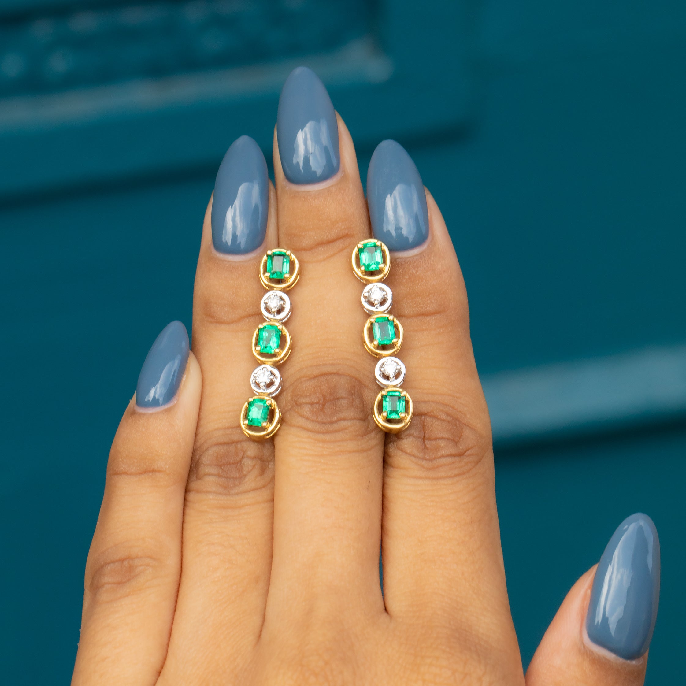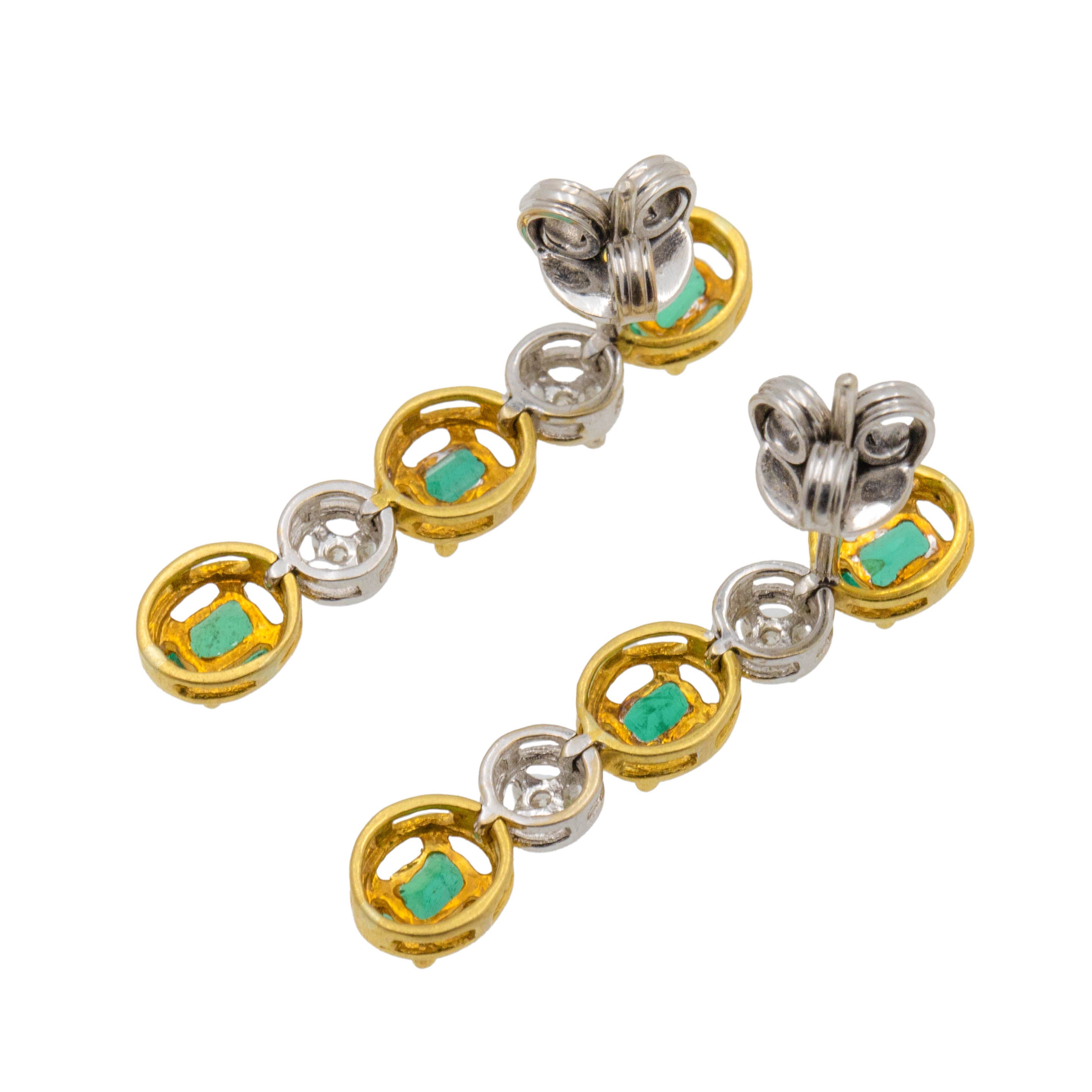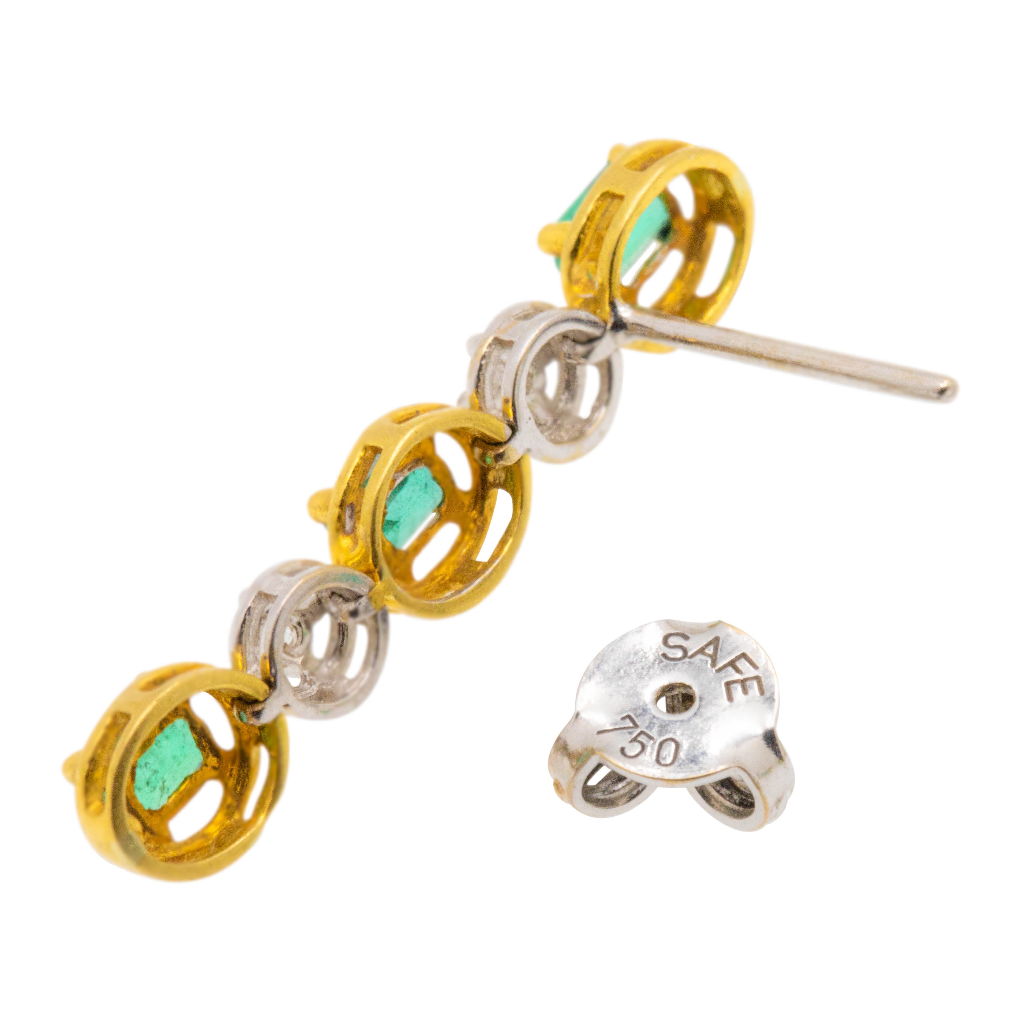 Boucles d'oreilles pendantes en or 18 carats avec émeraude et diamant, émeraude 0,40 ct