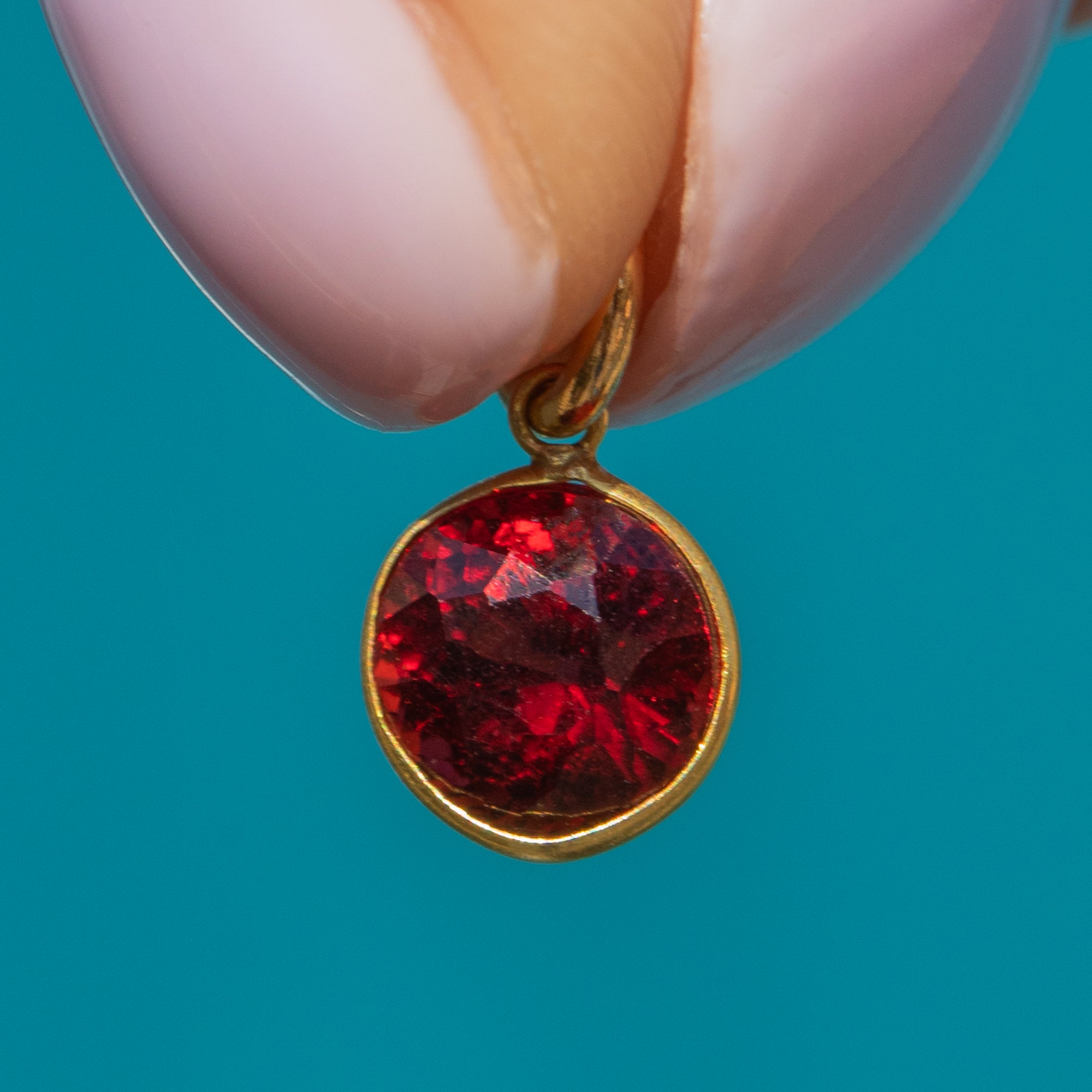18ct Gold Garnet Bezel Set Round Charm, 1.00ct