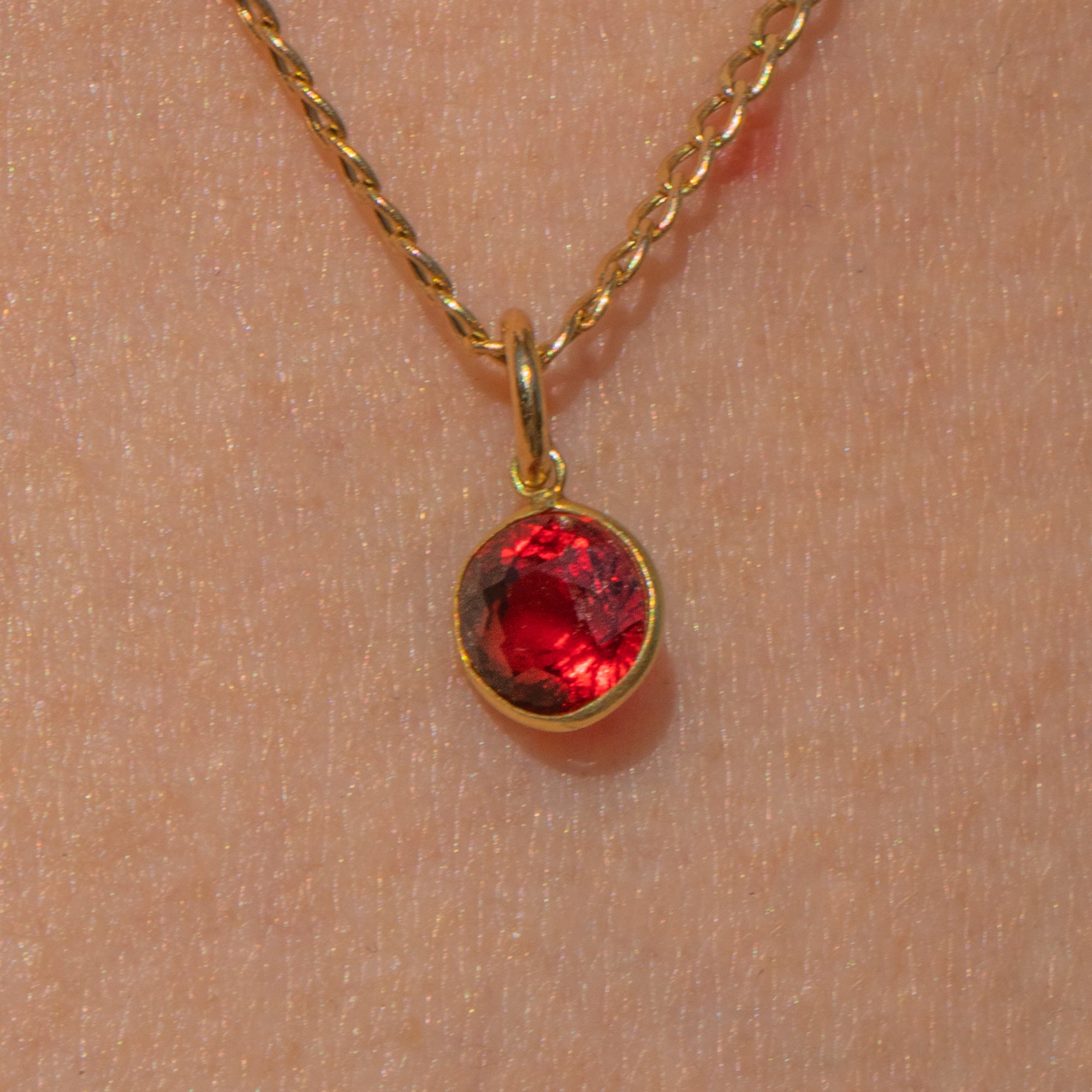 EXCELLENT. This 18ct Gold Garnet bezel-set charm is just delicious! From her Gold setting to her fabulously faceted form, this Victorian Garnet pendant is in excellent condition throughout!