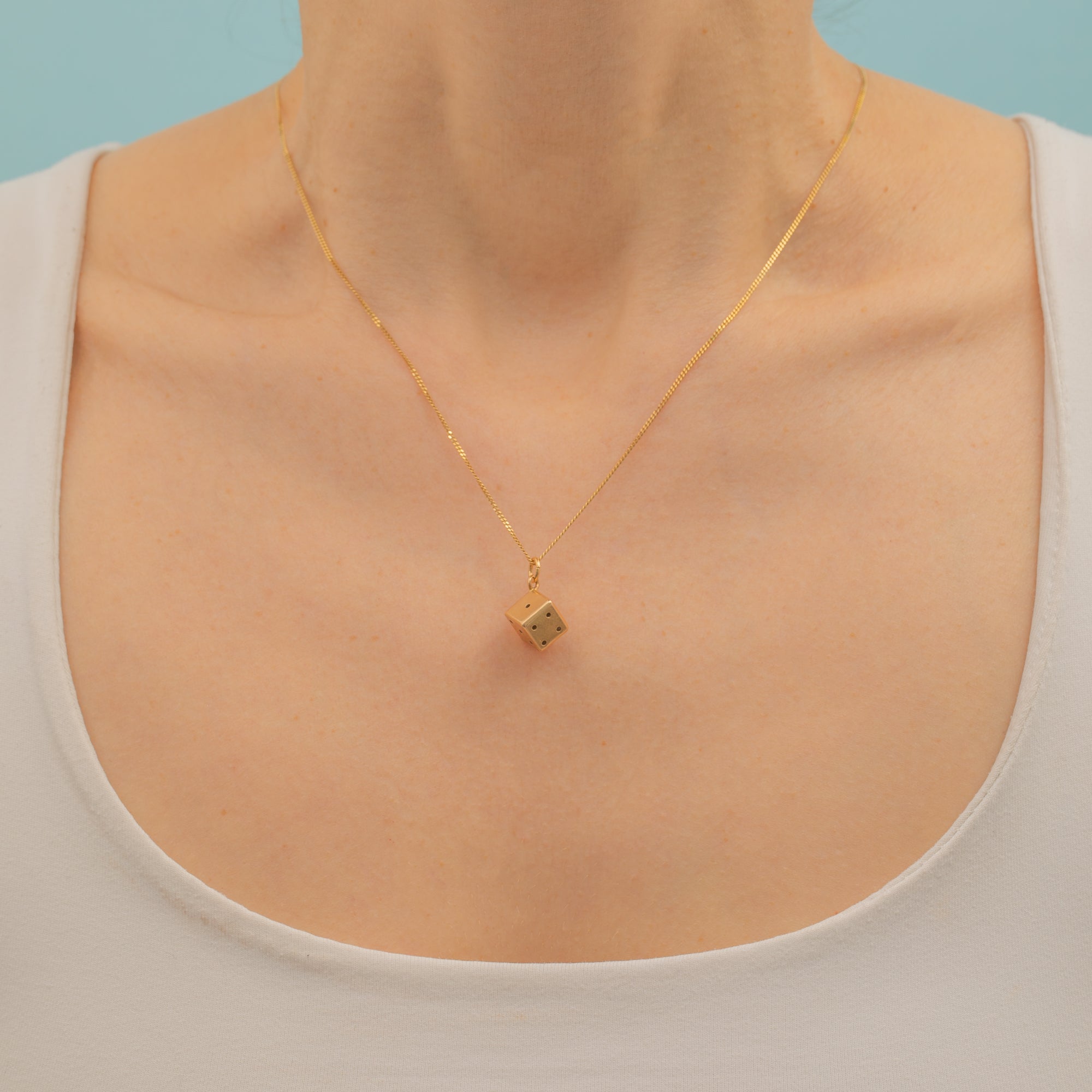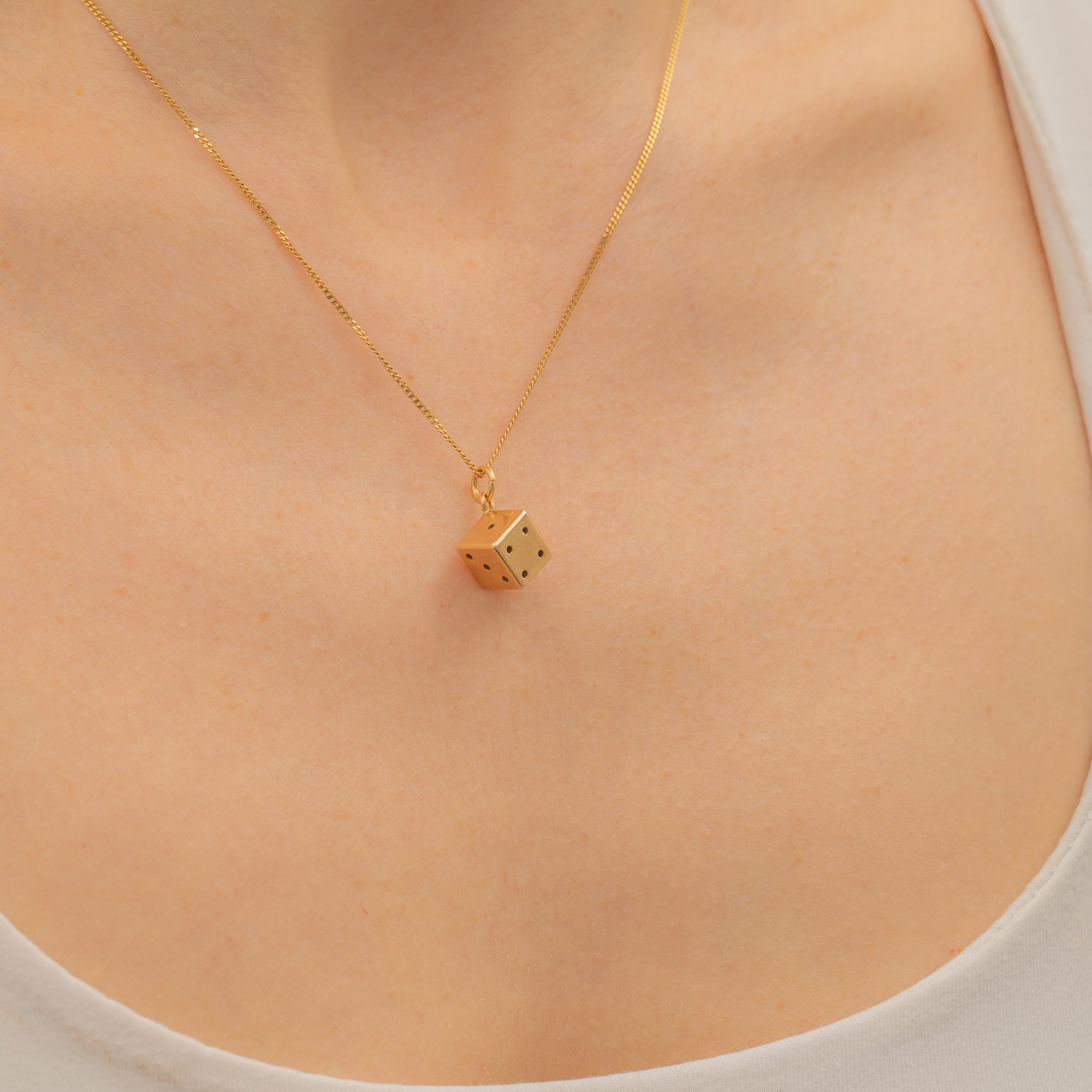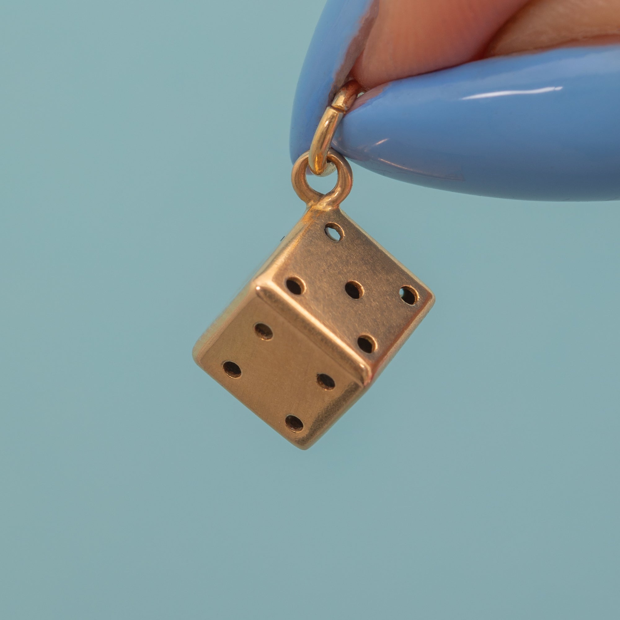 This 18ct Gold lucky dice charm is the perfect good luck talisman to carry with you everywhere! Crafted from brightly saturated 18ct Gold, the three dimensional form of this mid-century vintage charm is wonderfully tactile.