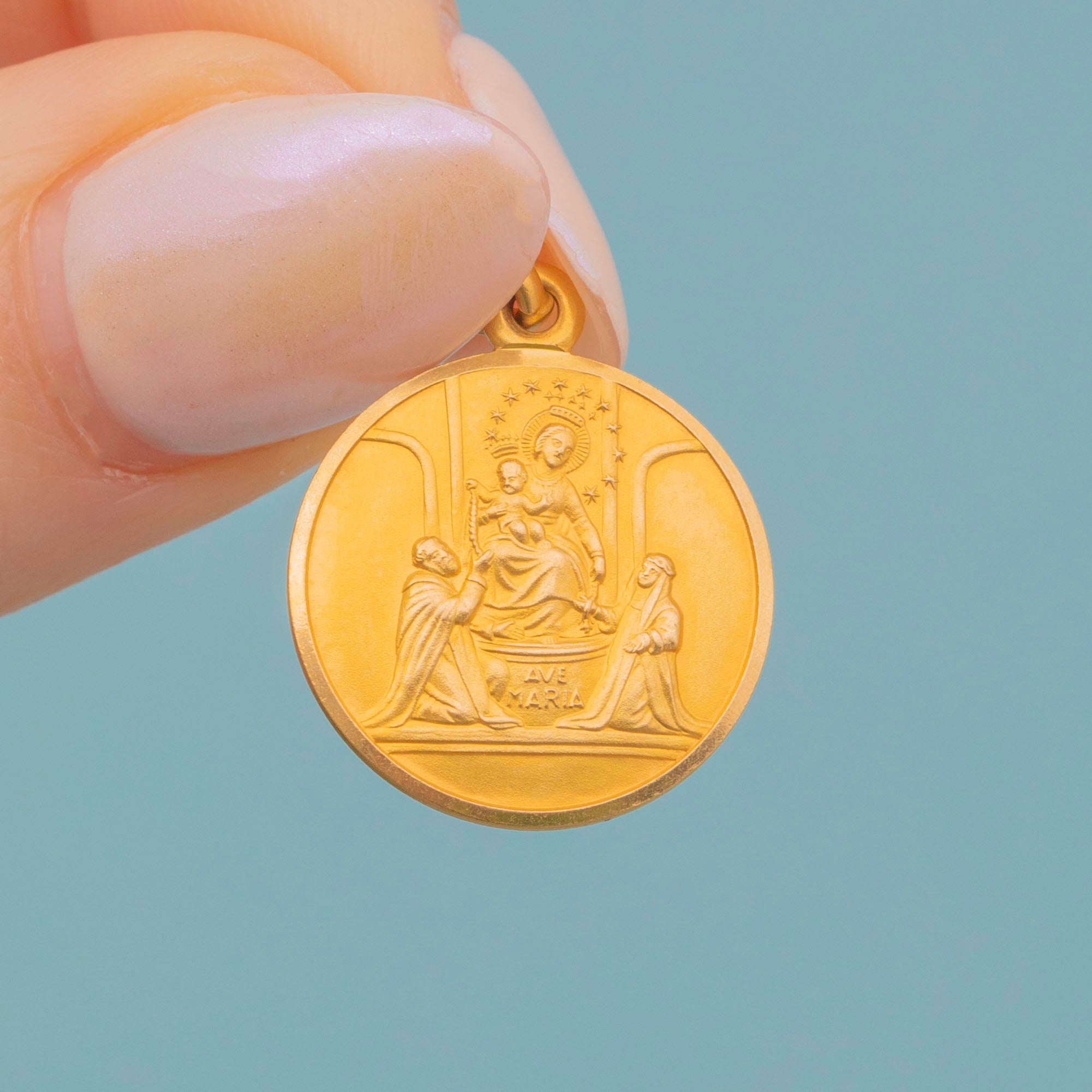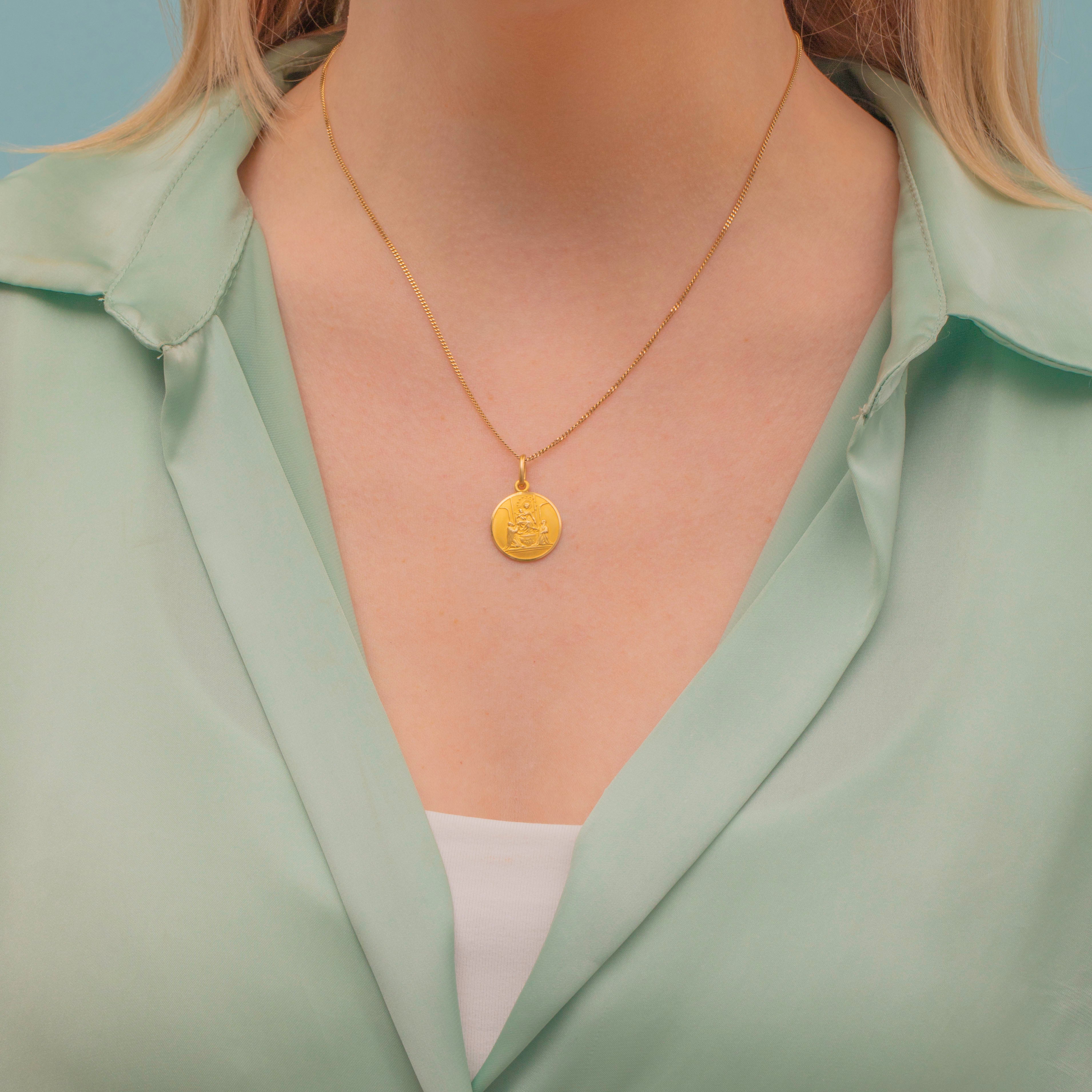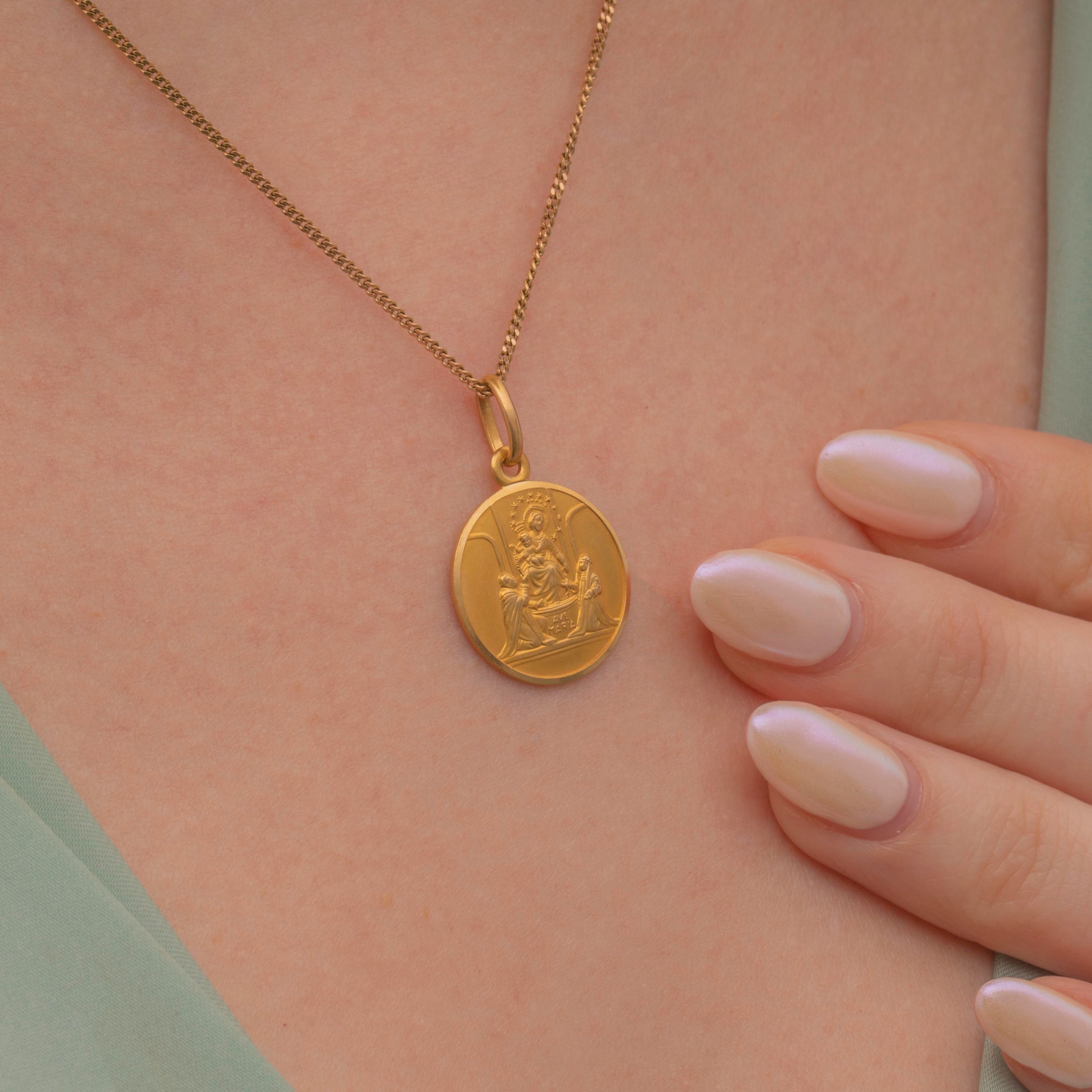 This is a gorgeous 18ct Gold Madonna medallion pendant, perfect for everyday wear! The Madonna pendant is said to bring special graces from the Virgin Mary, so what better place to have her than adorning your neck suspended from a dainty Gold chain.