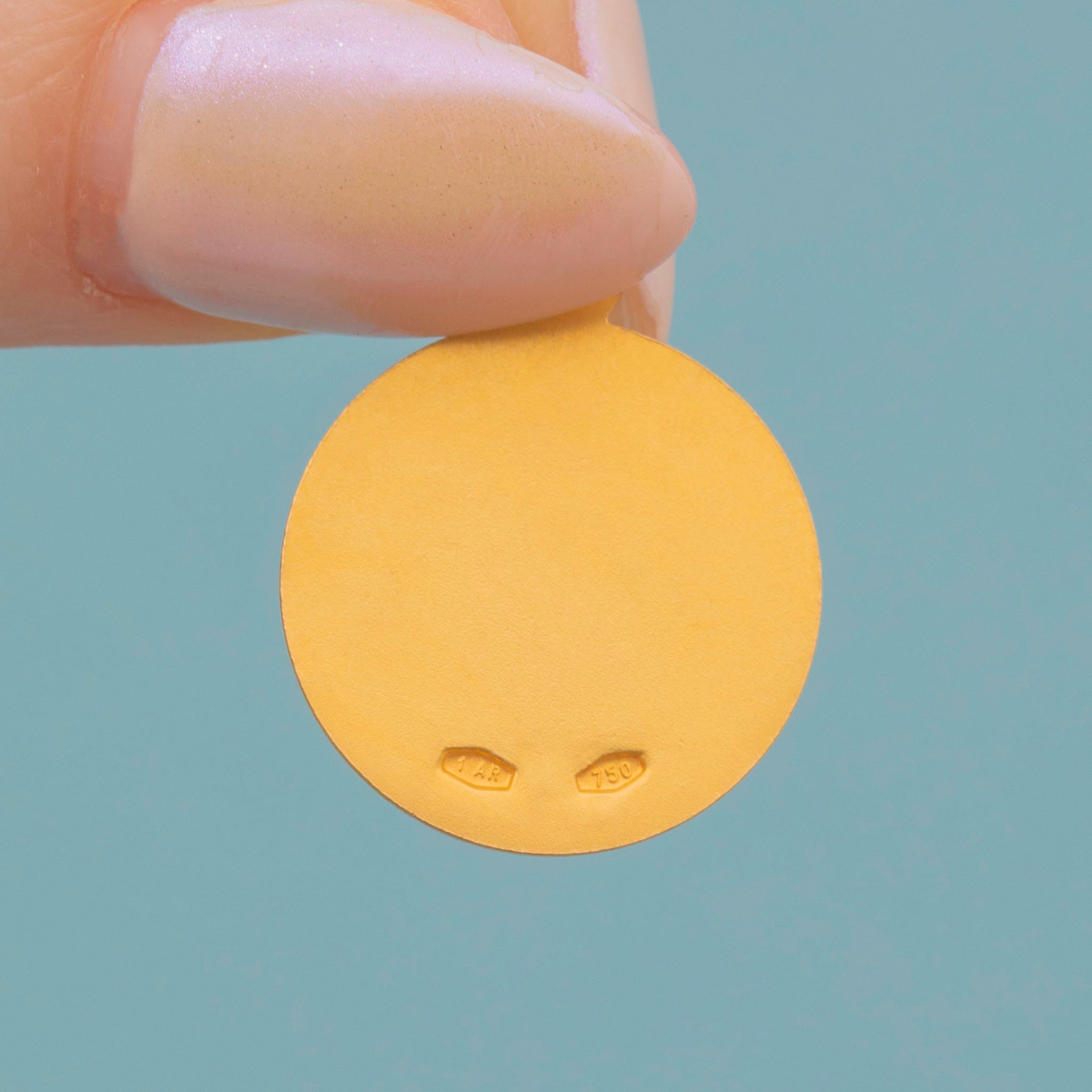 STAMPS: 750 fineness mark on back of pendant
