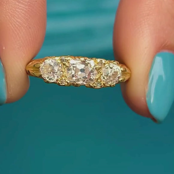 18ct Gold Old Mine Cut Diamond Three Stone Ring, 0.92ct