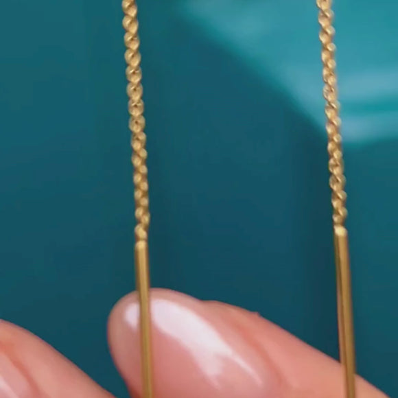 Crafted entirely from buttery 18ct Gold, these threader earrings aren't short of splendour. Lightweight and easy to style, you will be reaching for these lovely ladies time and time again.