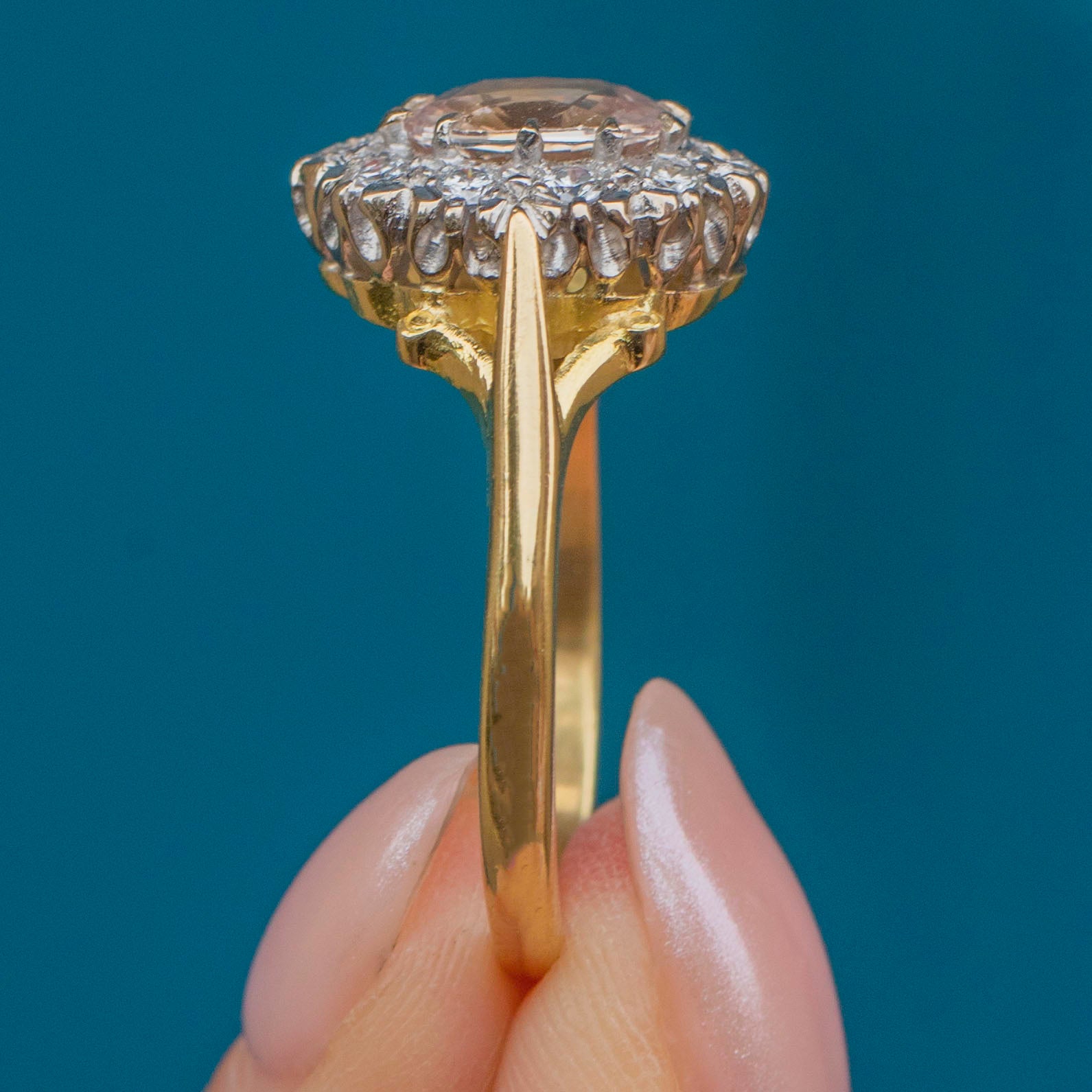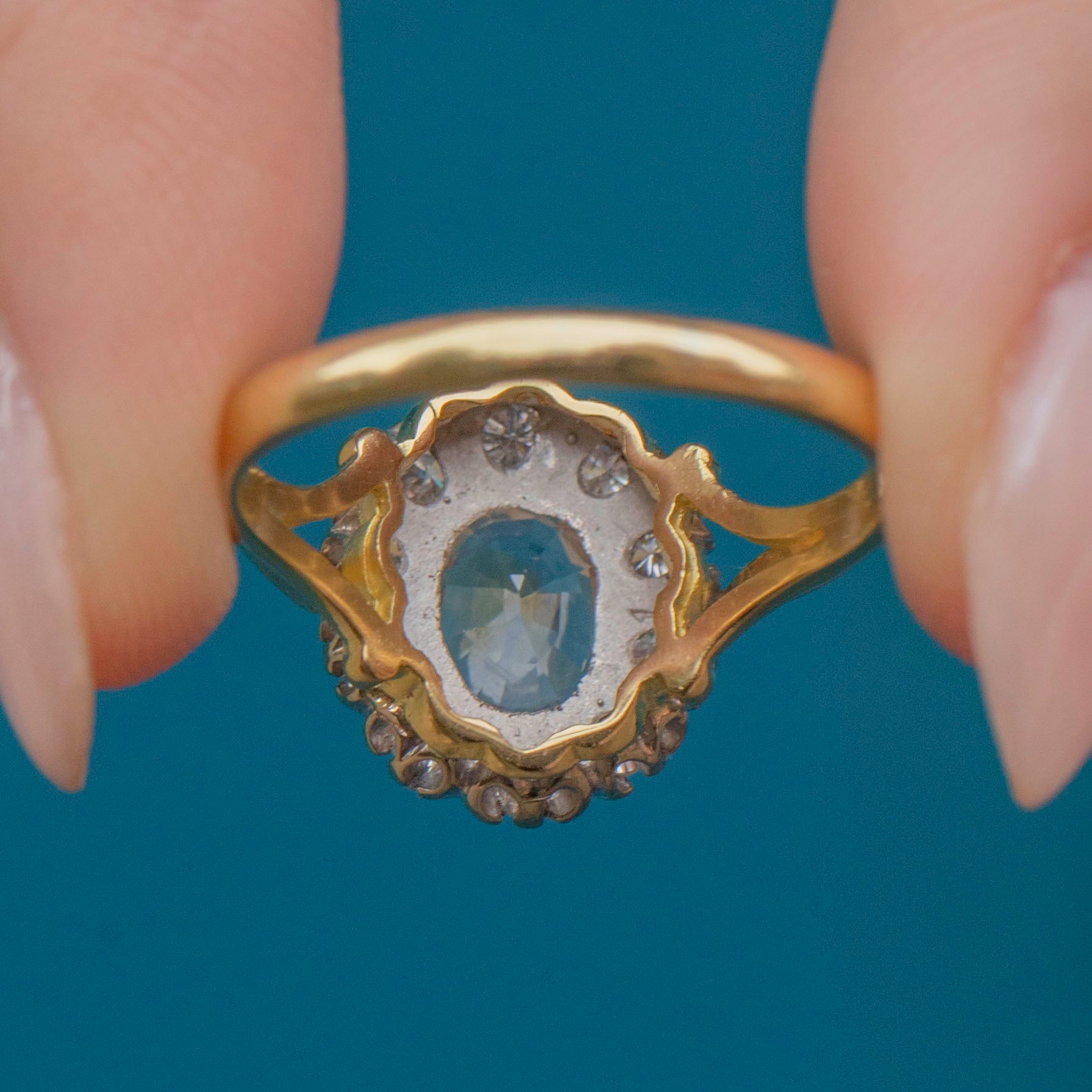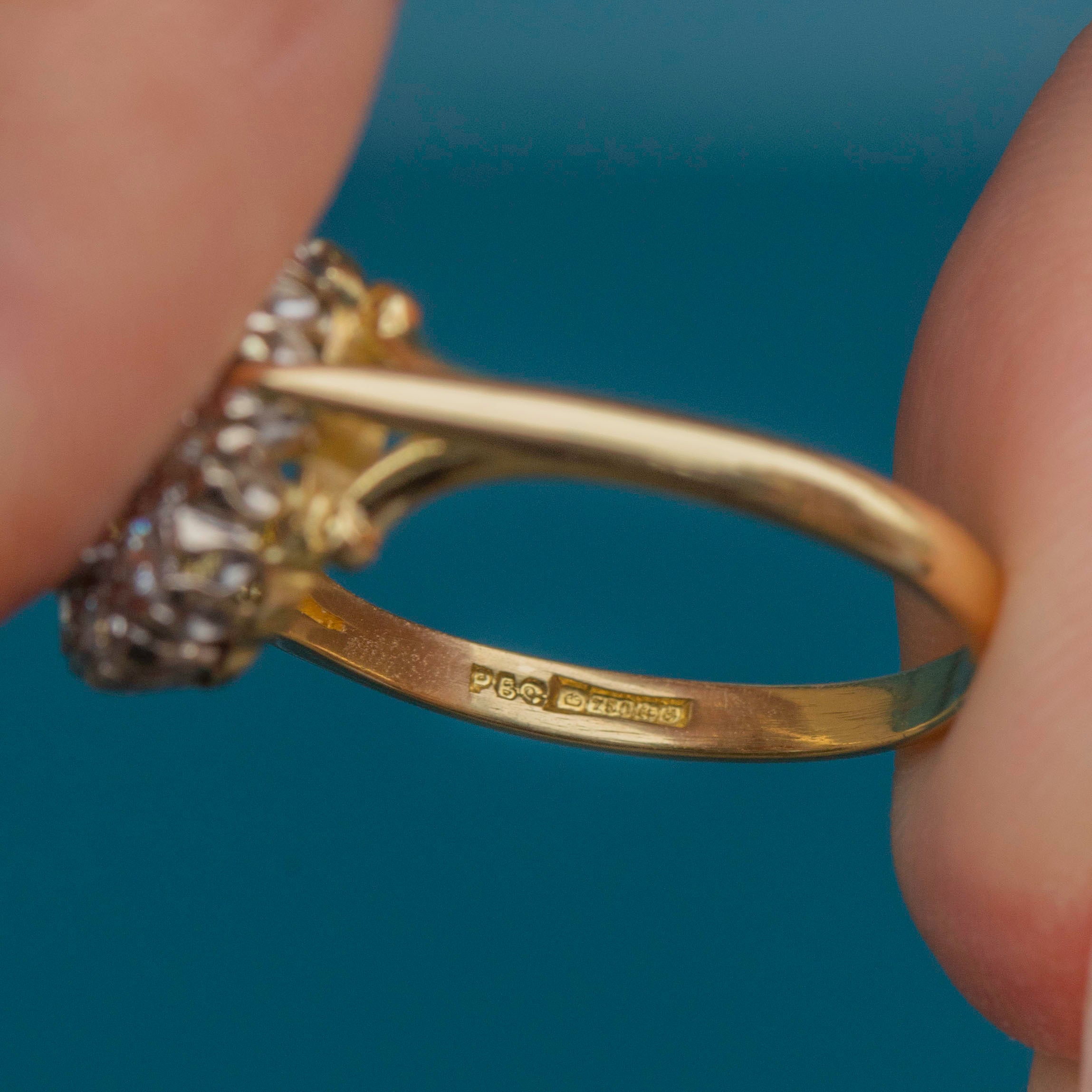 The ring is crafted in 18ct yellow Gold in a gorgeous setting that perfectly complements the stones. This ring would make an amazing choice for a Vintage engagement ring, how could anyone say no to her?!