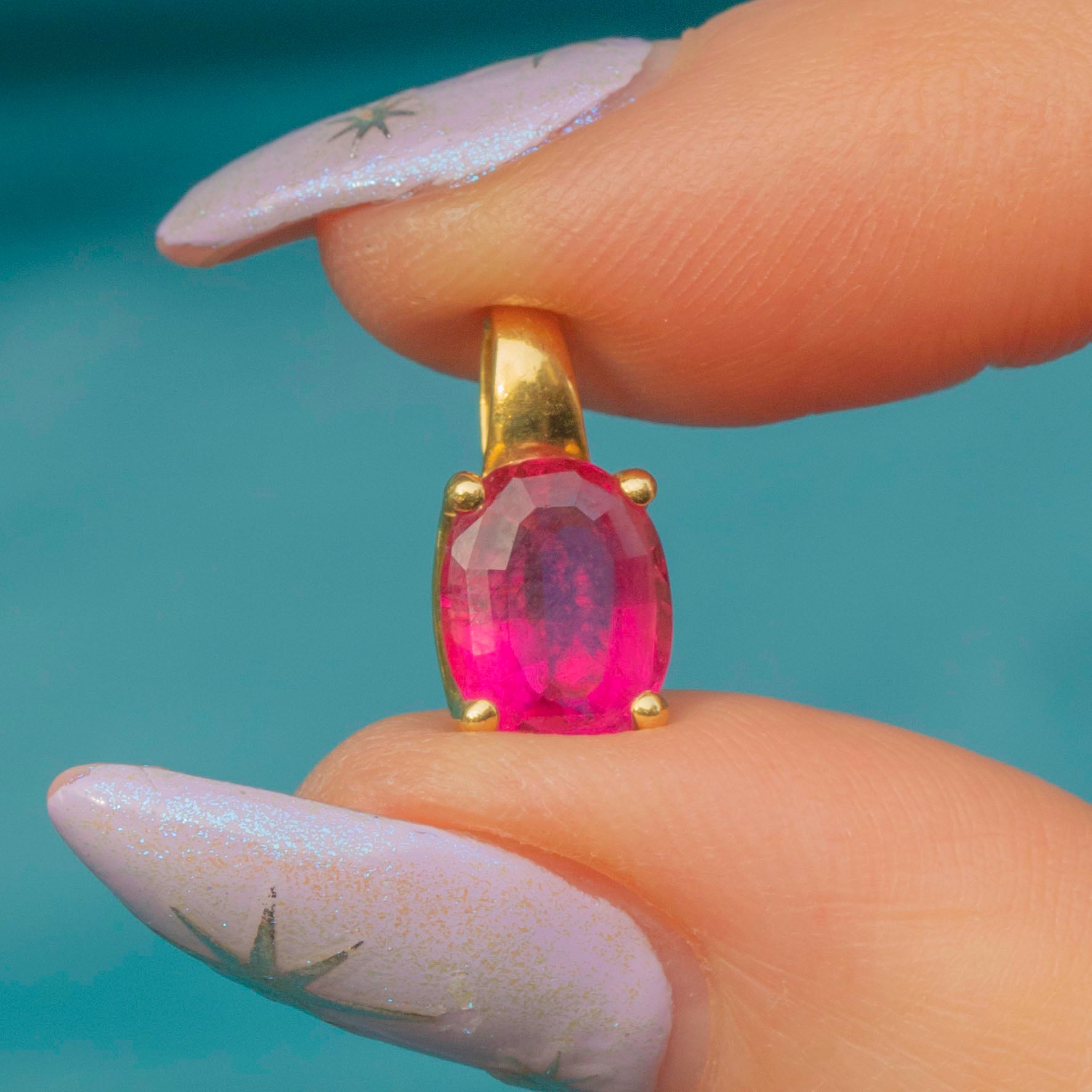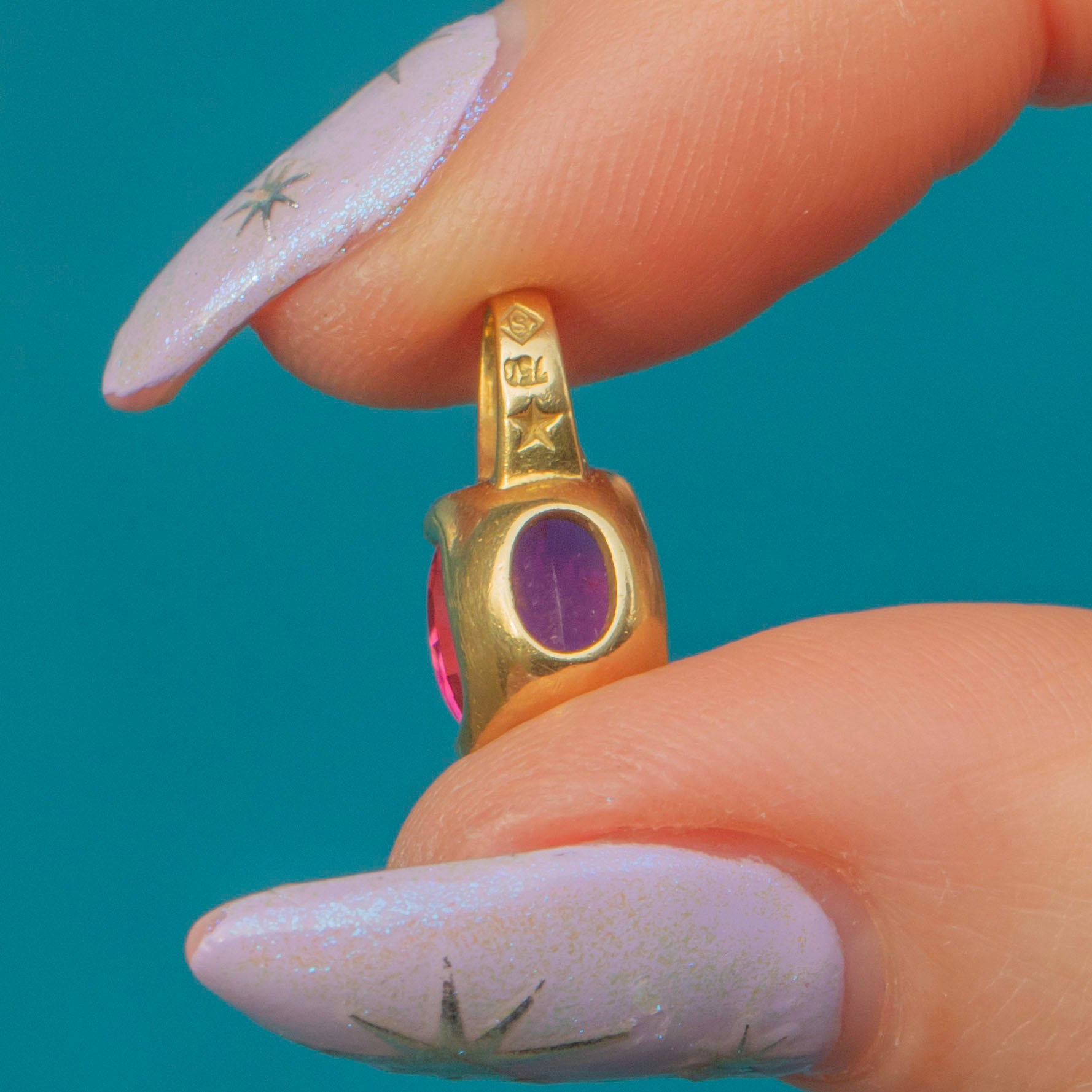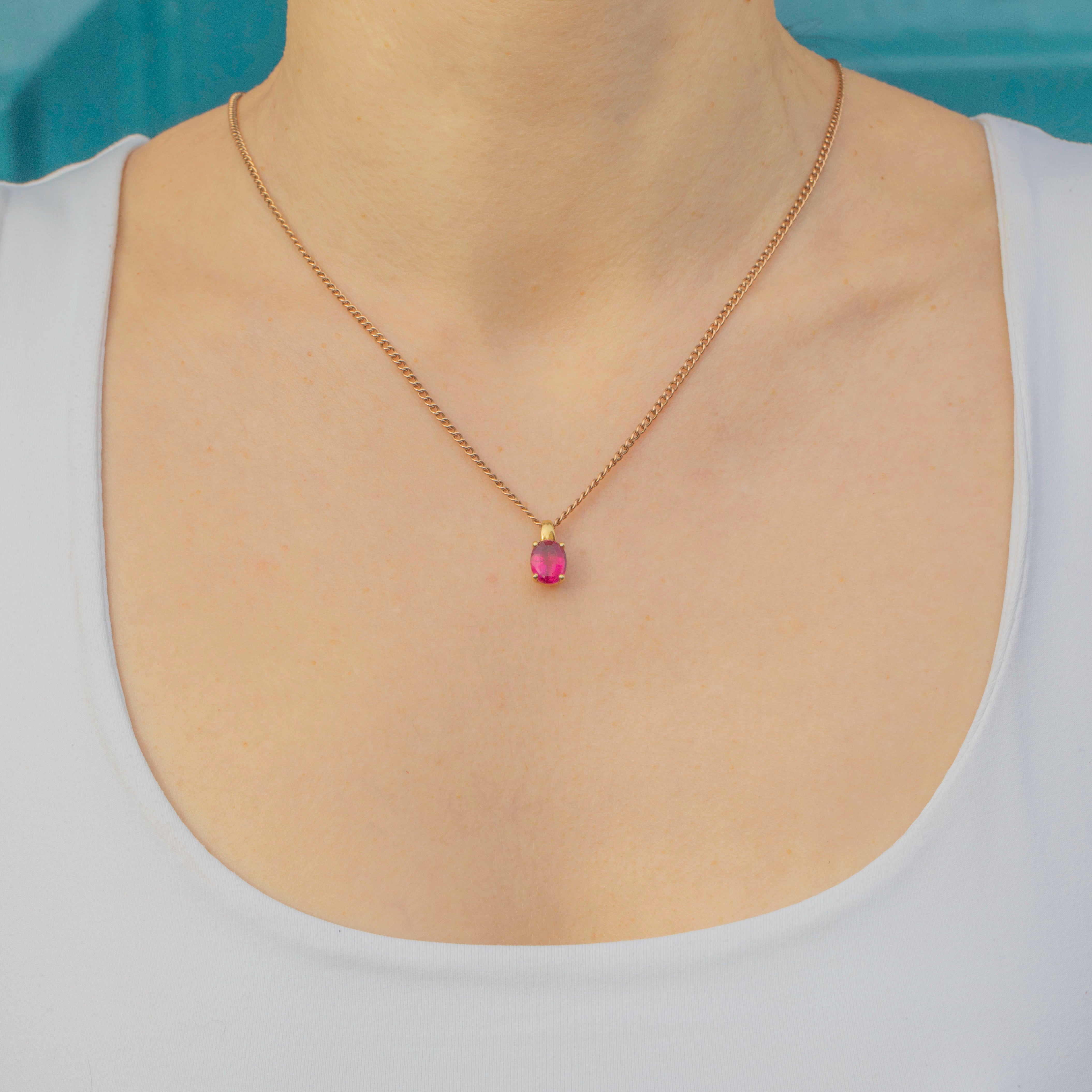 EXCELLENT. This 18ct Gold Pink Tourmaline charm is in excellent condition. The Tourmaline has a crisp set of facets and is free from surface wear, with lovely natural inclusions adding character to the pretty gem. The Gold has a superb saturation and its form is robust with a large bale making it easy to style and wear!