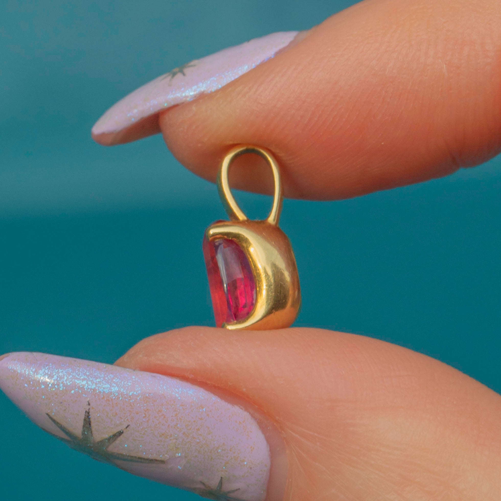 This 18ct Gold Pink Tourmaline charm is the perfect little treasure! The 1.96ct Tourmaline glimmers with a hot pink hue and is displayed within a smooth and curvaceous 18ct Gold setting.