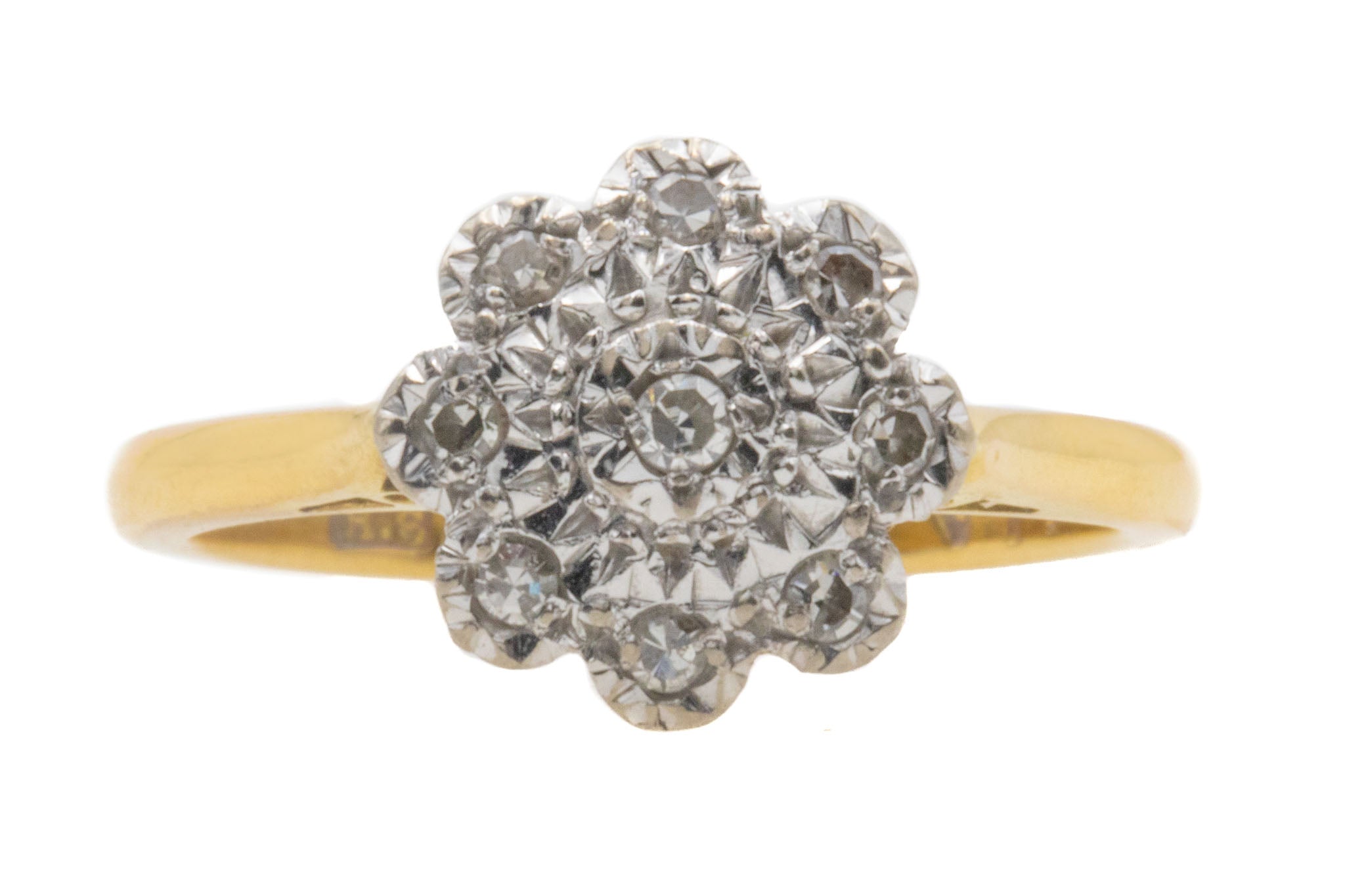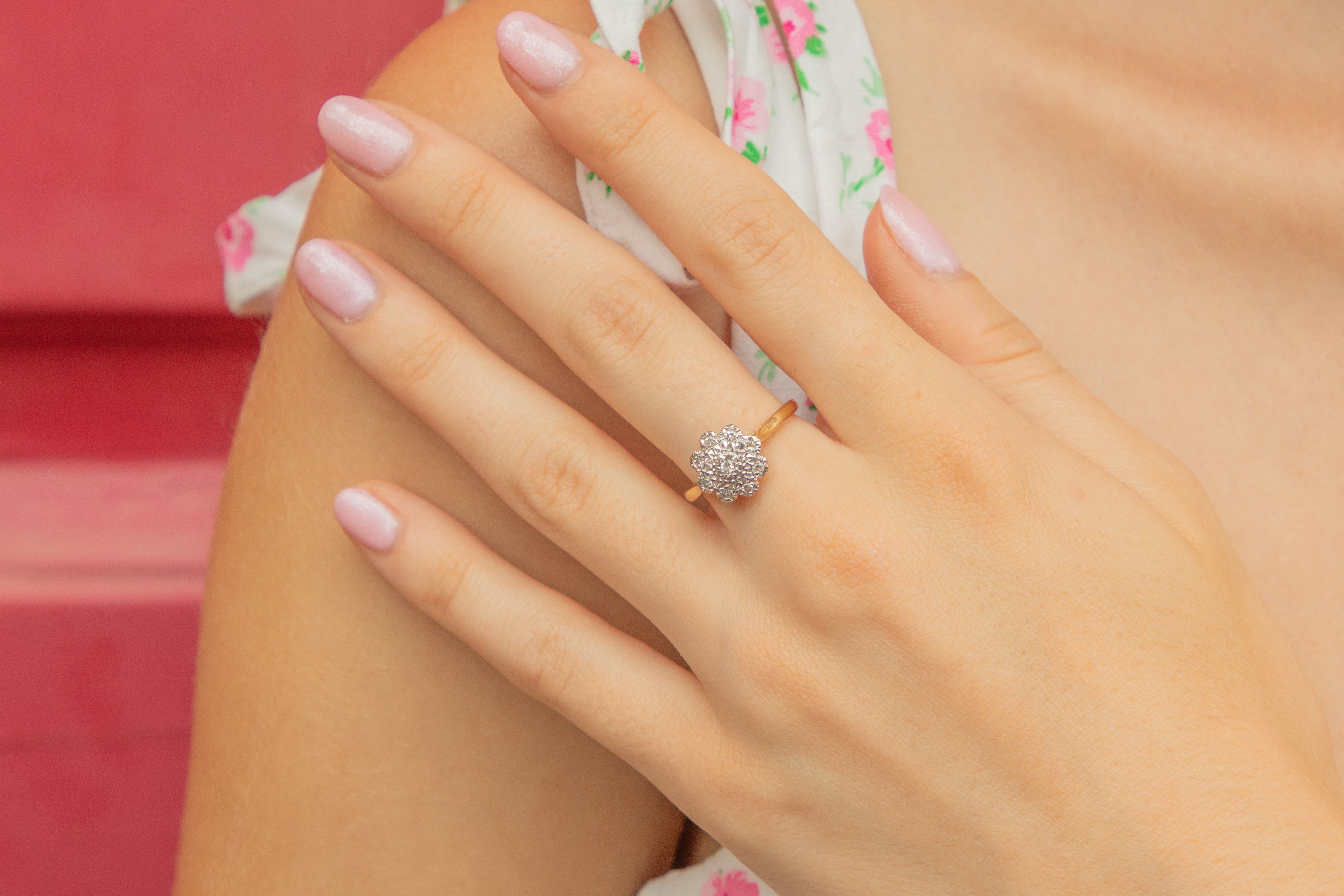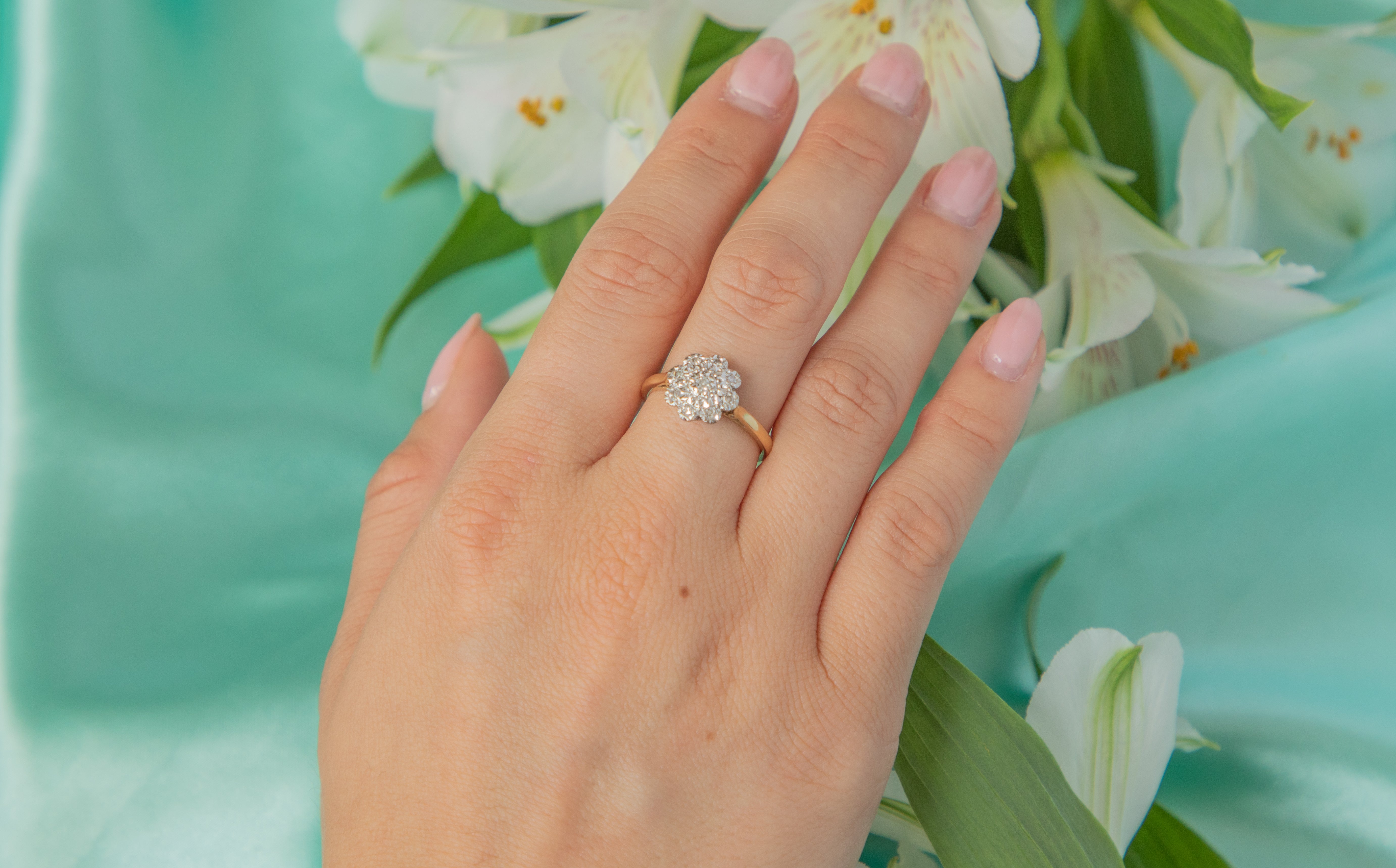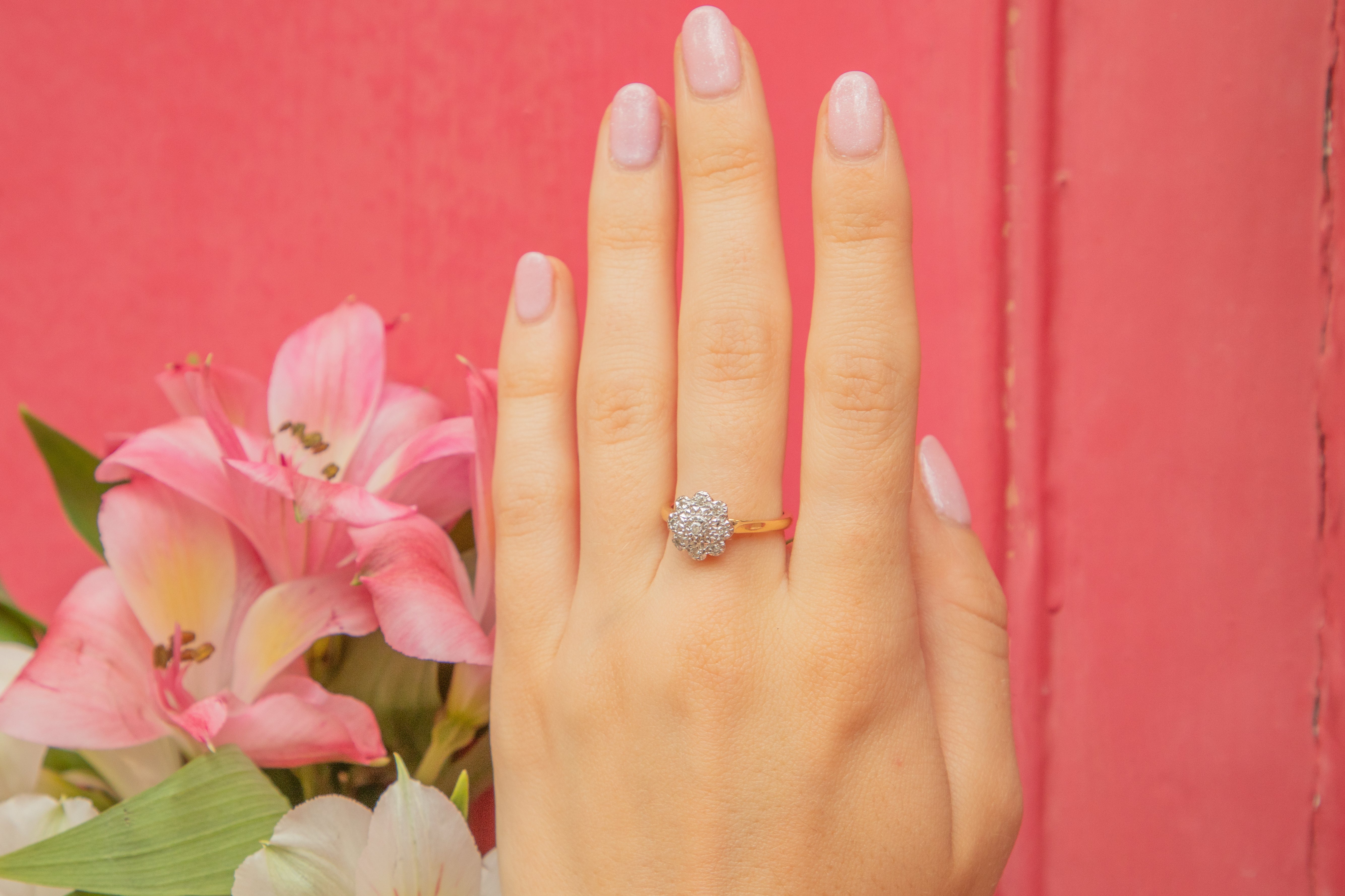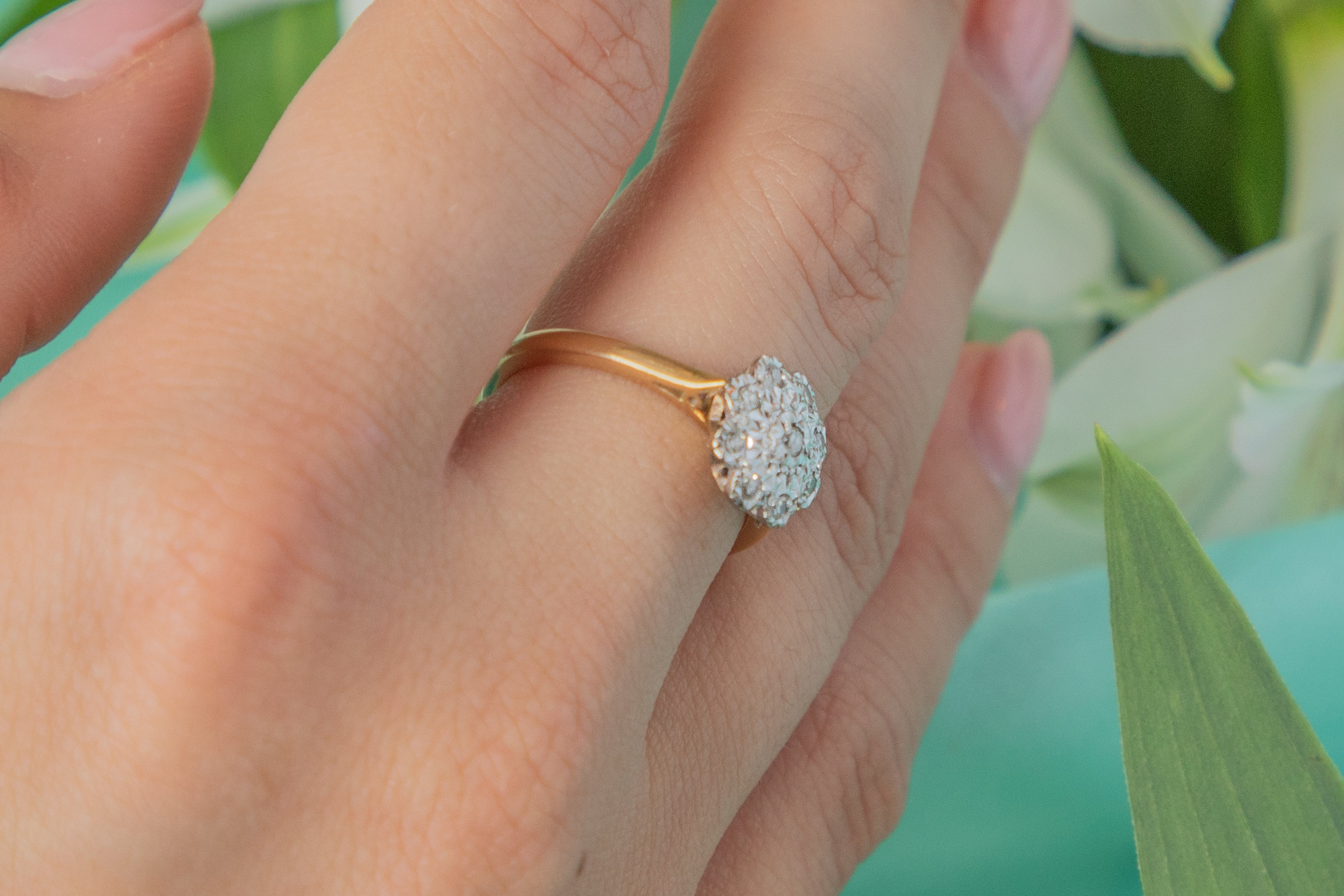 Bague de fiançailles en or 18 carats et platine avec un groupe de diamants