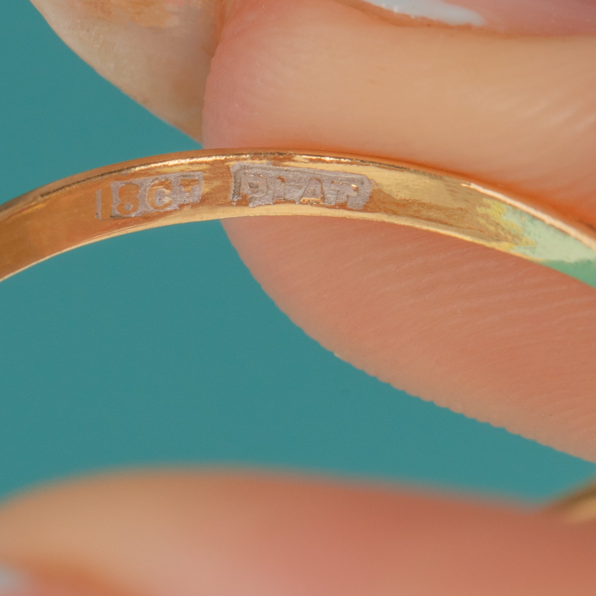 The Platinum head and 18ct Yellow Gold shank create a refined two‑tone palette, with an open under‑gallery and low profile for effortless, everyday wear. Sparkling, timeless and impeccably made, this mid‑century jewel captures the enduring charm of the daisy cluster.
