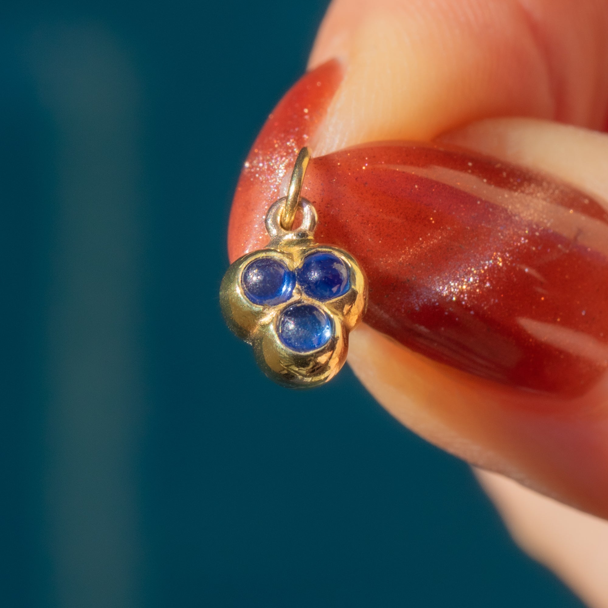This 18ct Gold Ruby Sapphire trefoil charm is a lovely versatile piece! With six juicy gemstones set within buttery 18ct Gold bezels, this vintage charm is a dainty delight full of character.