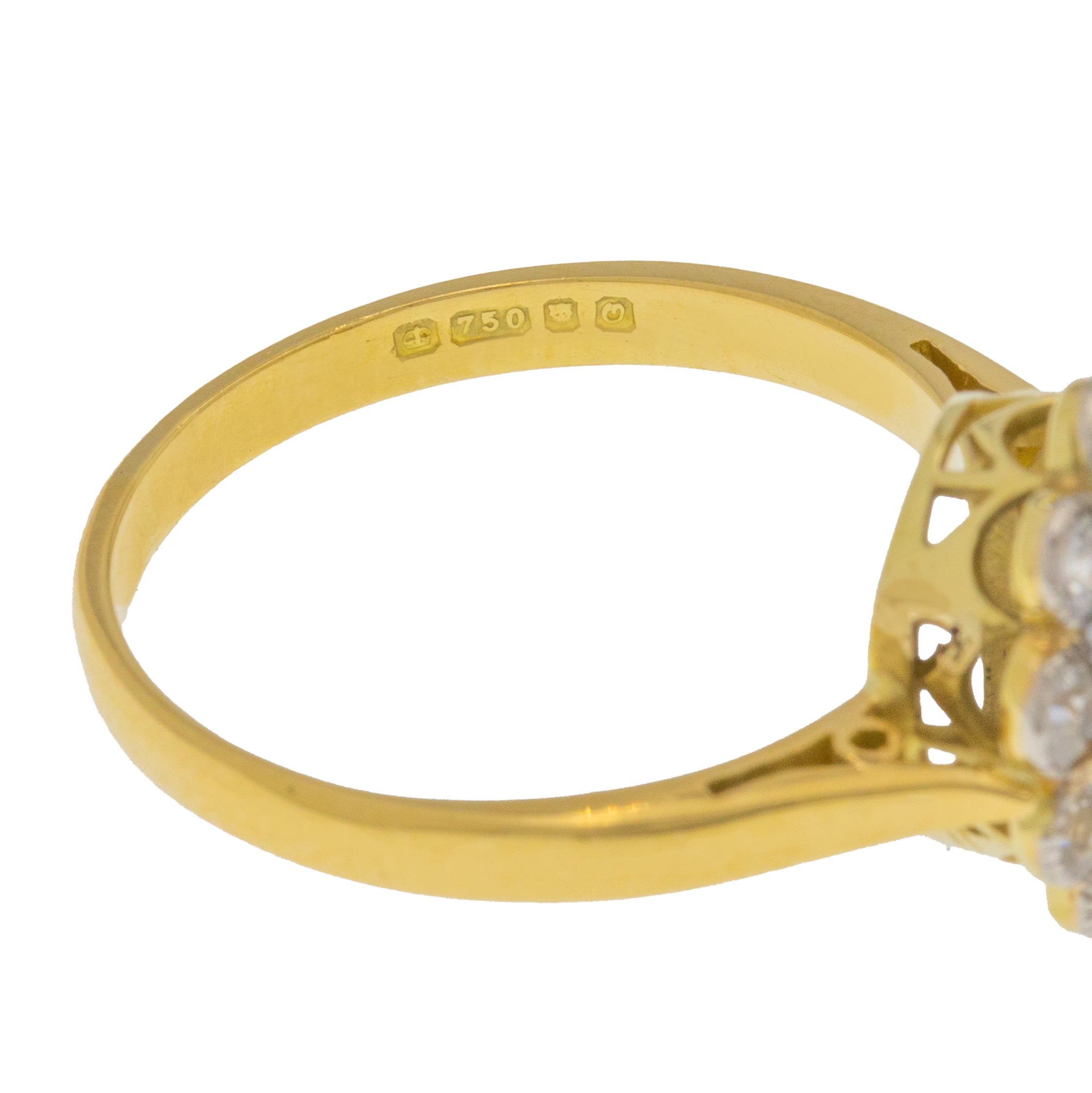 HALLMARKS: Crown, '750', Leopard's Head, Date letter 'O' for the year 1988 inside band.