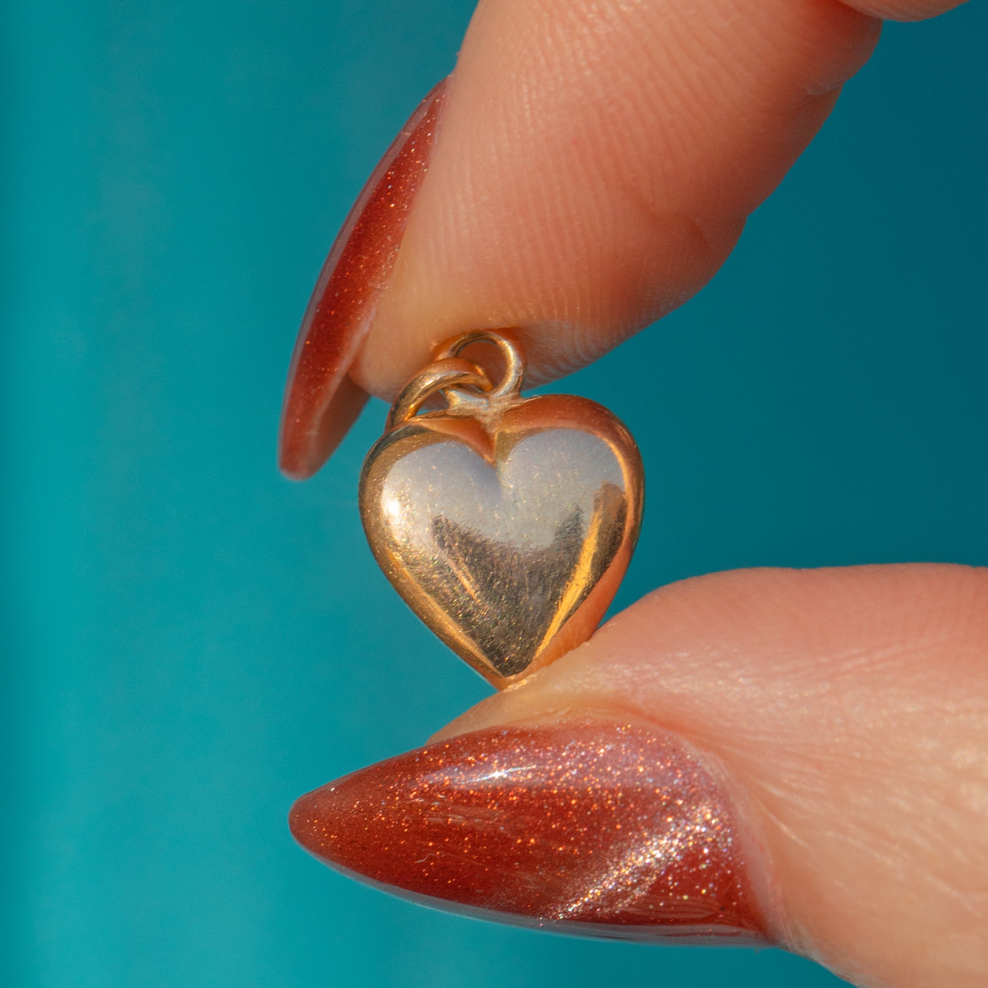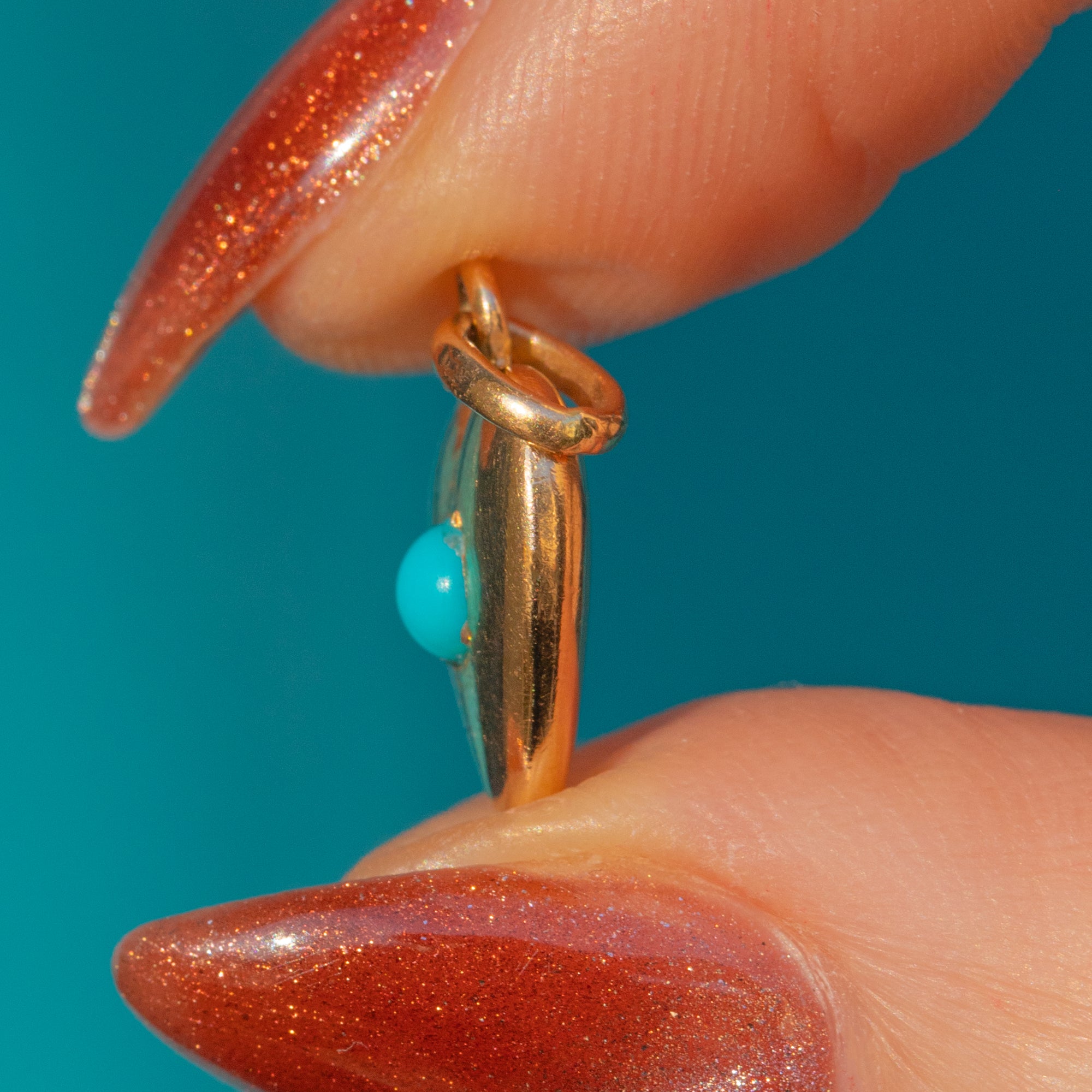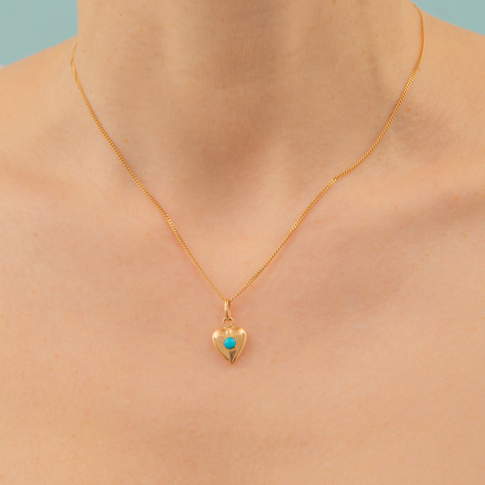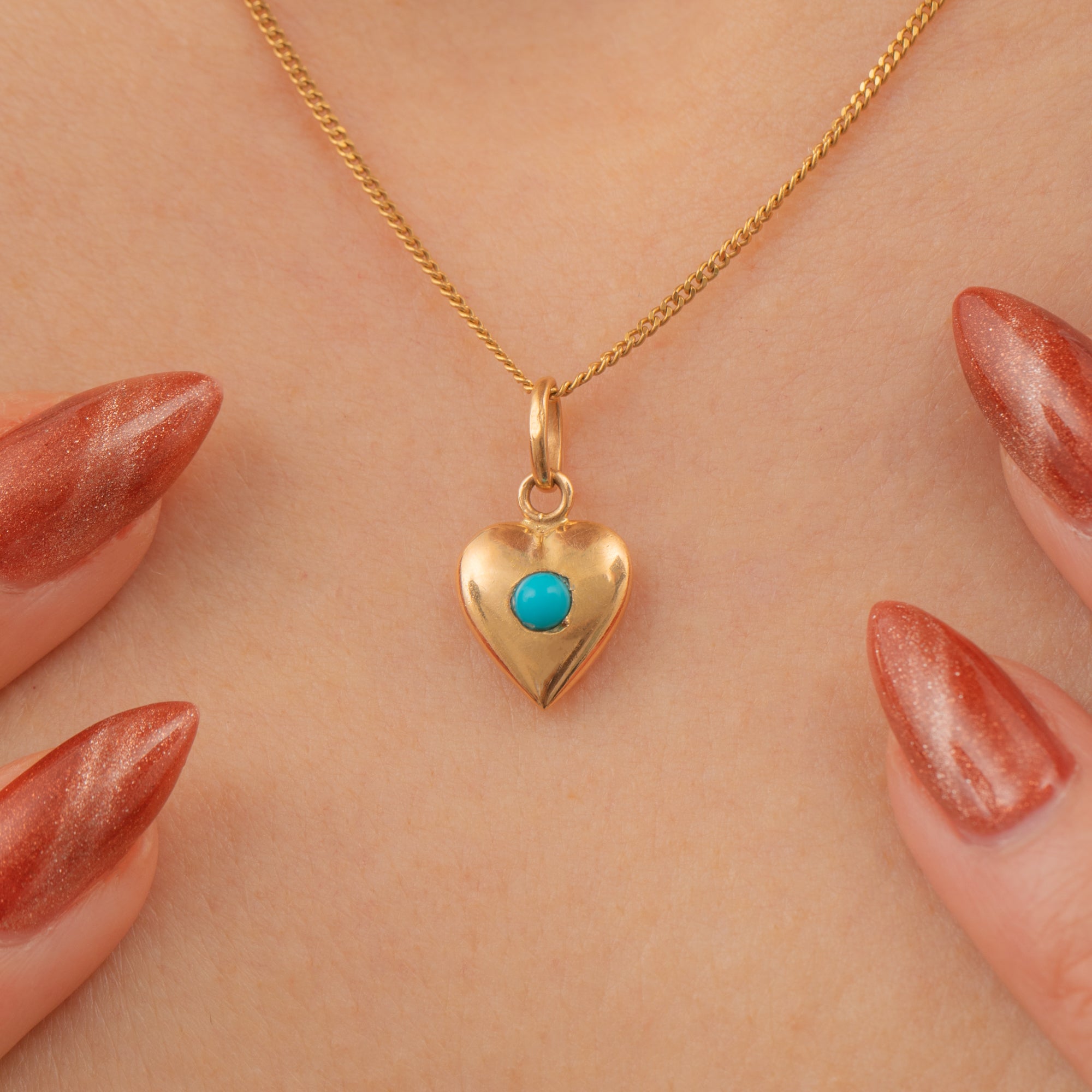 The cute puffy heart shape of this petite heart charm is crafted from luxurious 18ct Gold with a lovely bright sheen. Weighing in at just over a gram, this Victorian Turquoise charm is lightweight and easy to wear, making for the perfect addition to your antique neck stack.