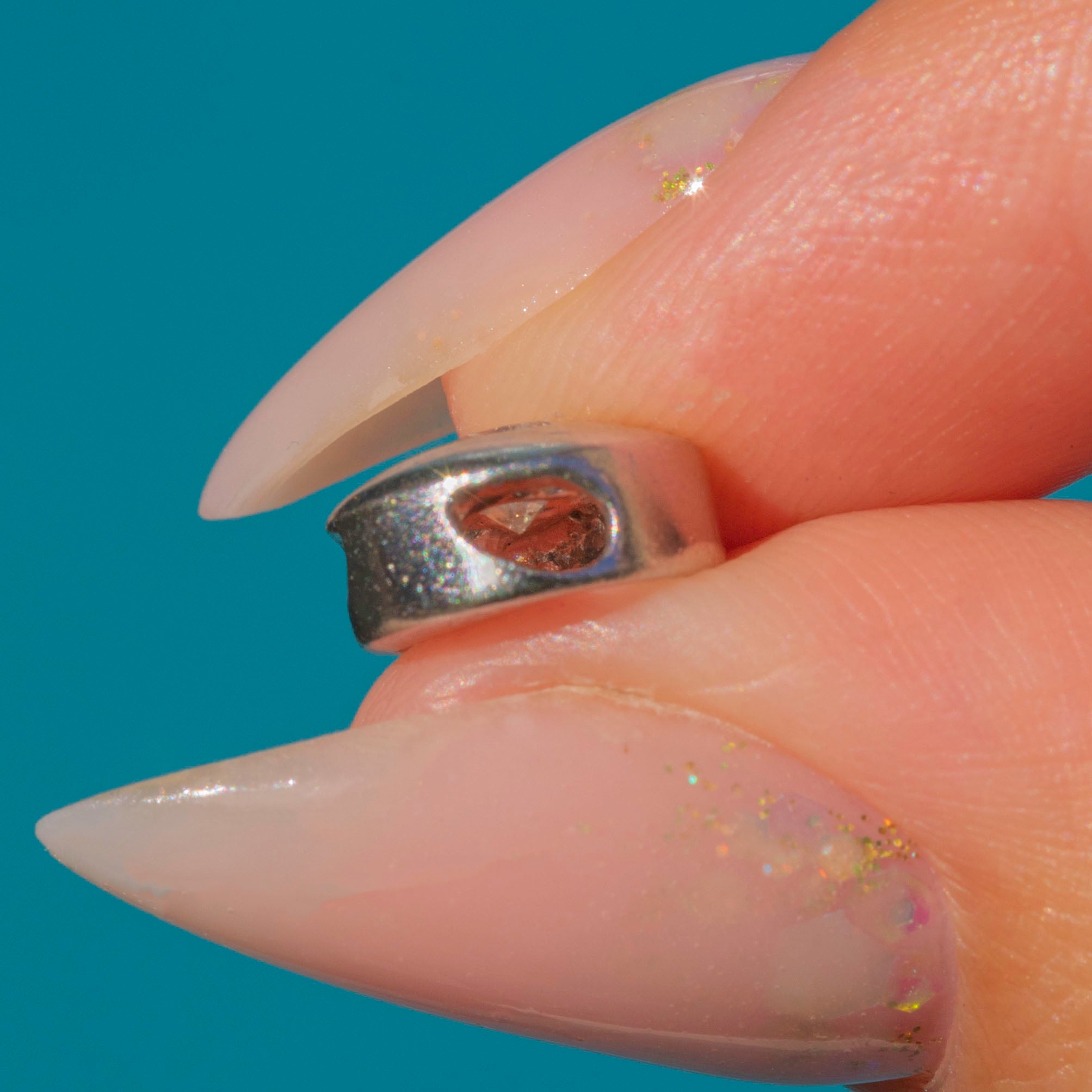 The open channel through the side allows the piece to slide freely onto a fine chain or bracelet, perfect for stacking or everyday shine. Stamped “18k” and “750”, it’s a versatile little luxury you’ll reach for time and again.