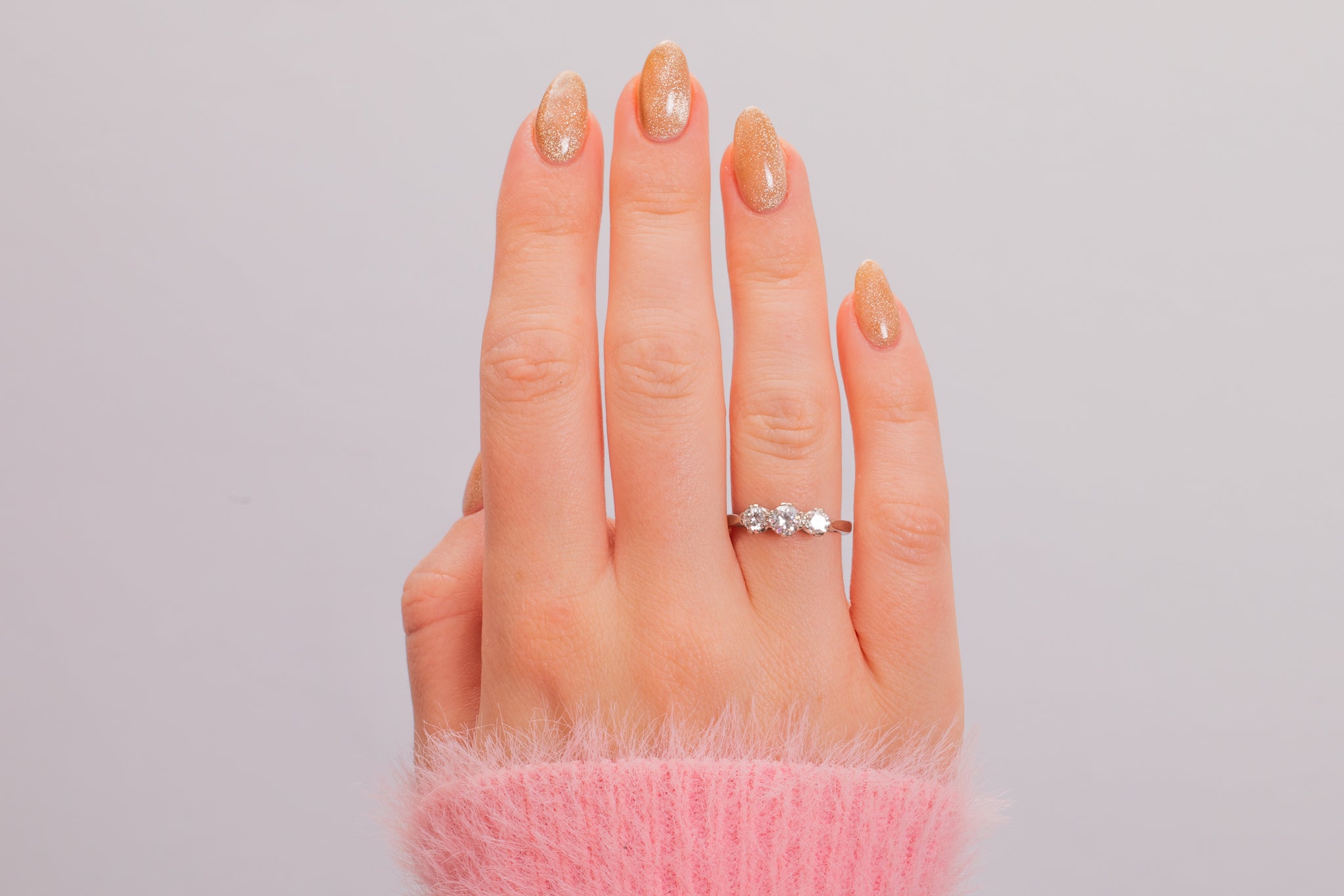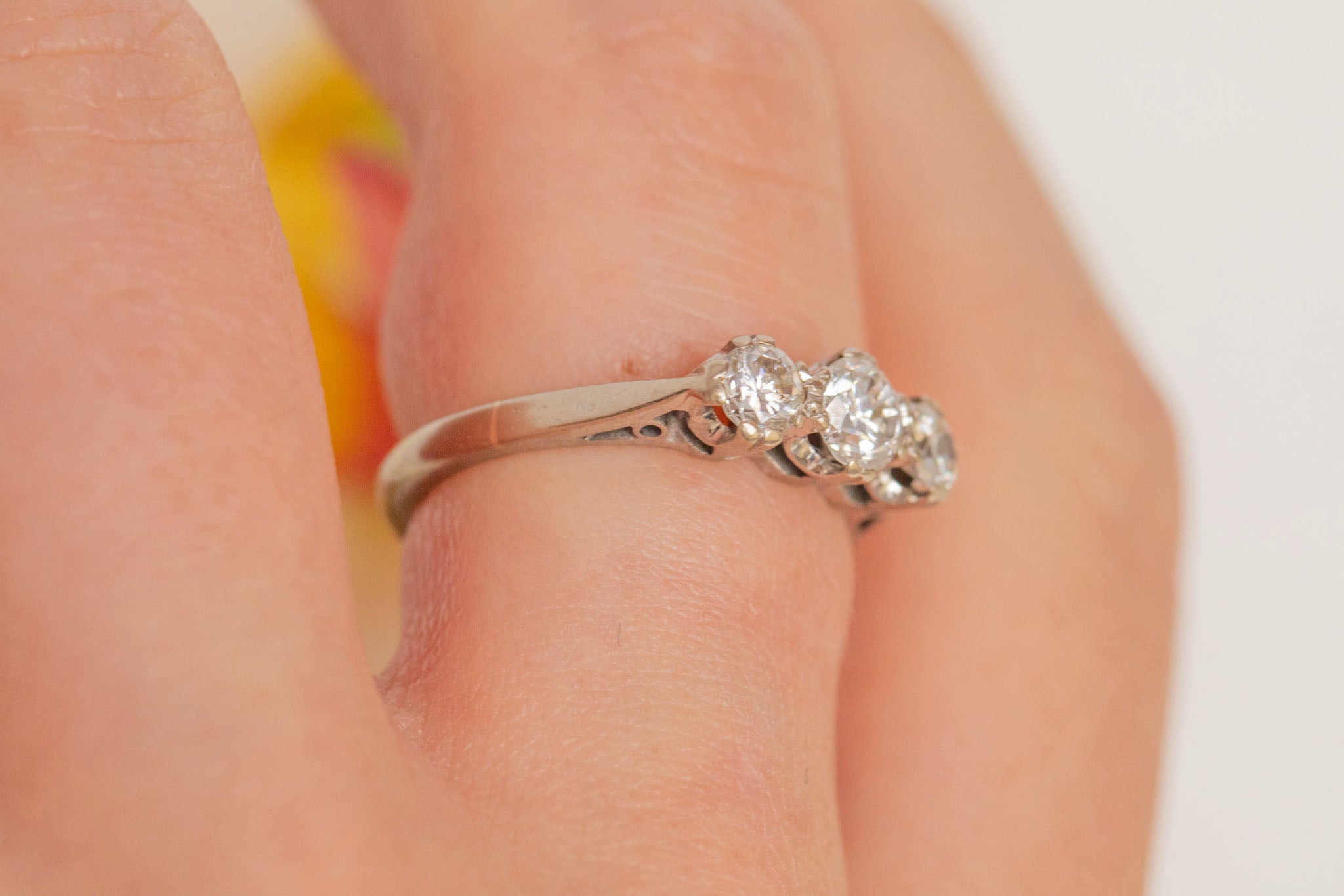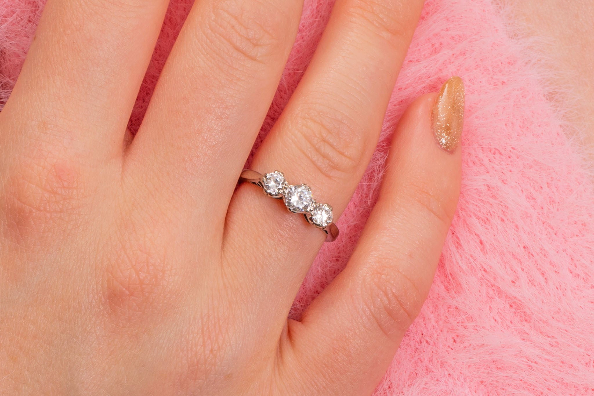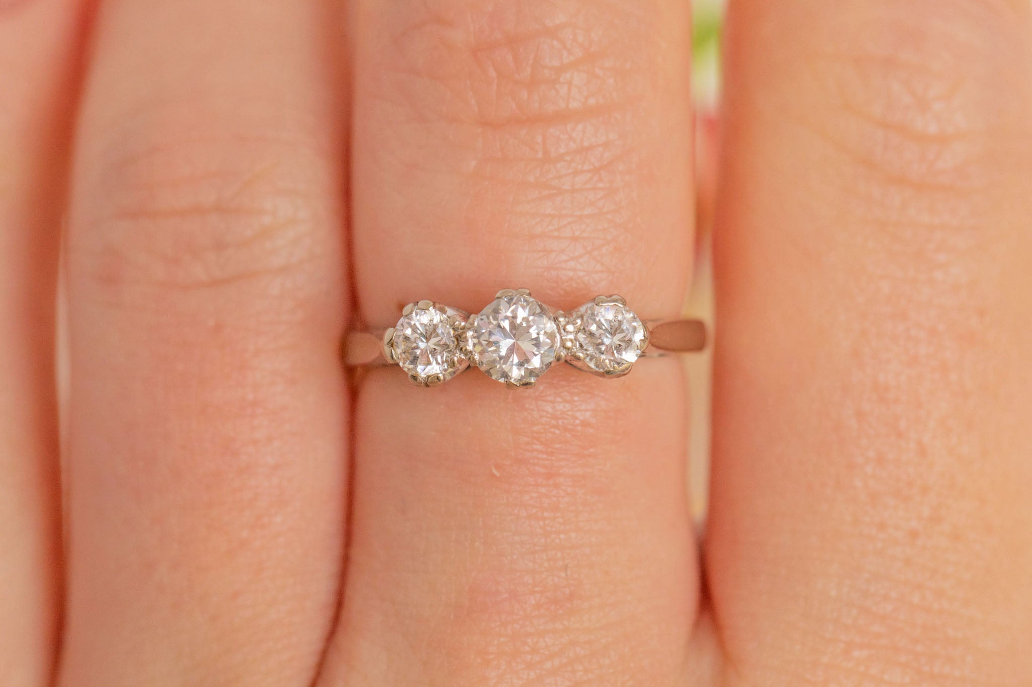 Bague de fiançailles trilogie en or blanc 18 carats avec diamants, 0,90 ct