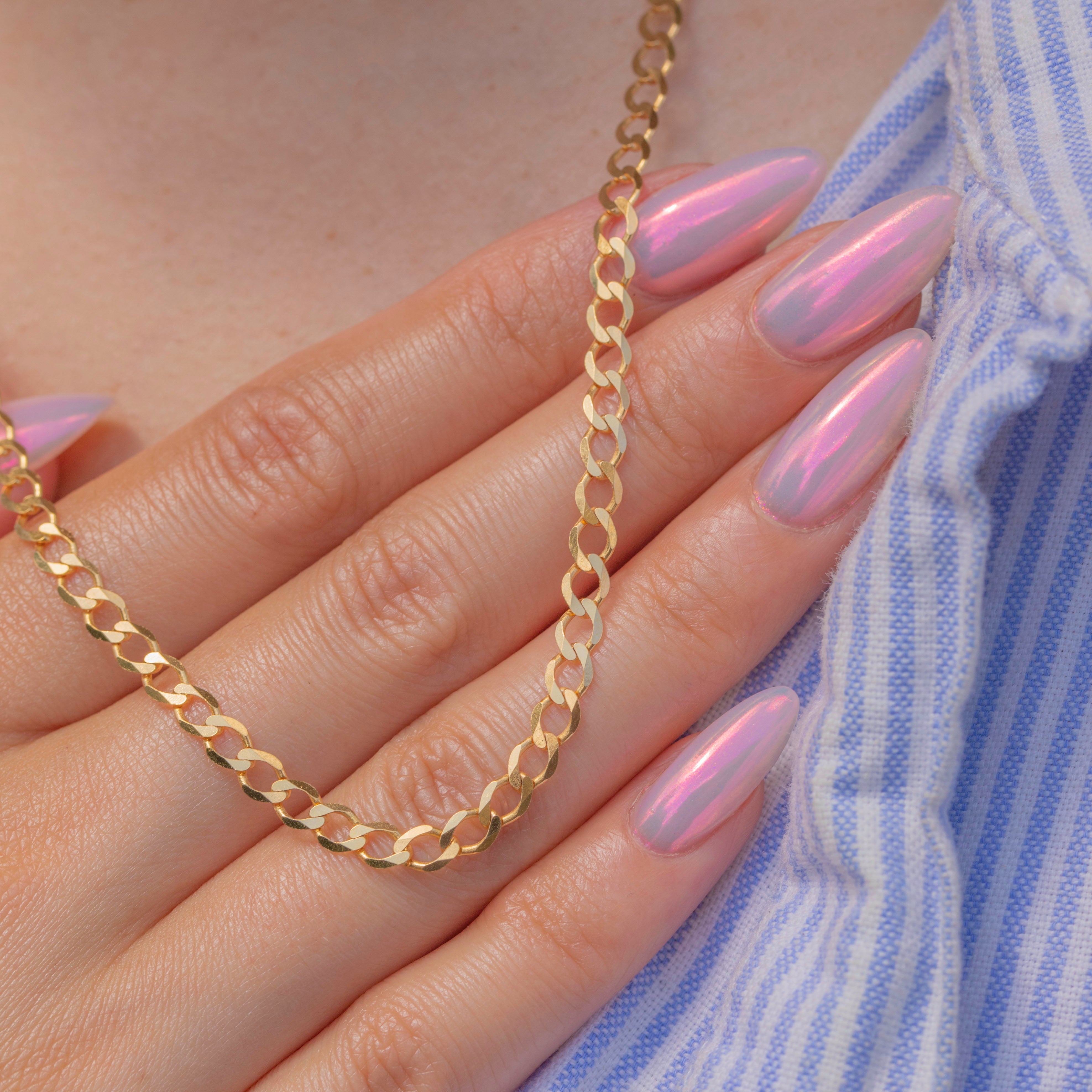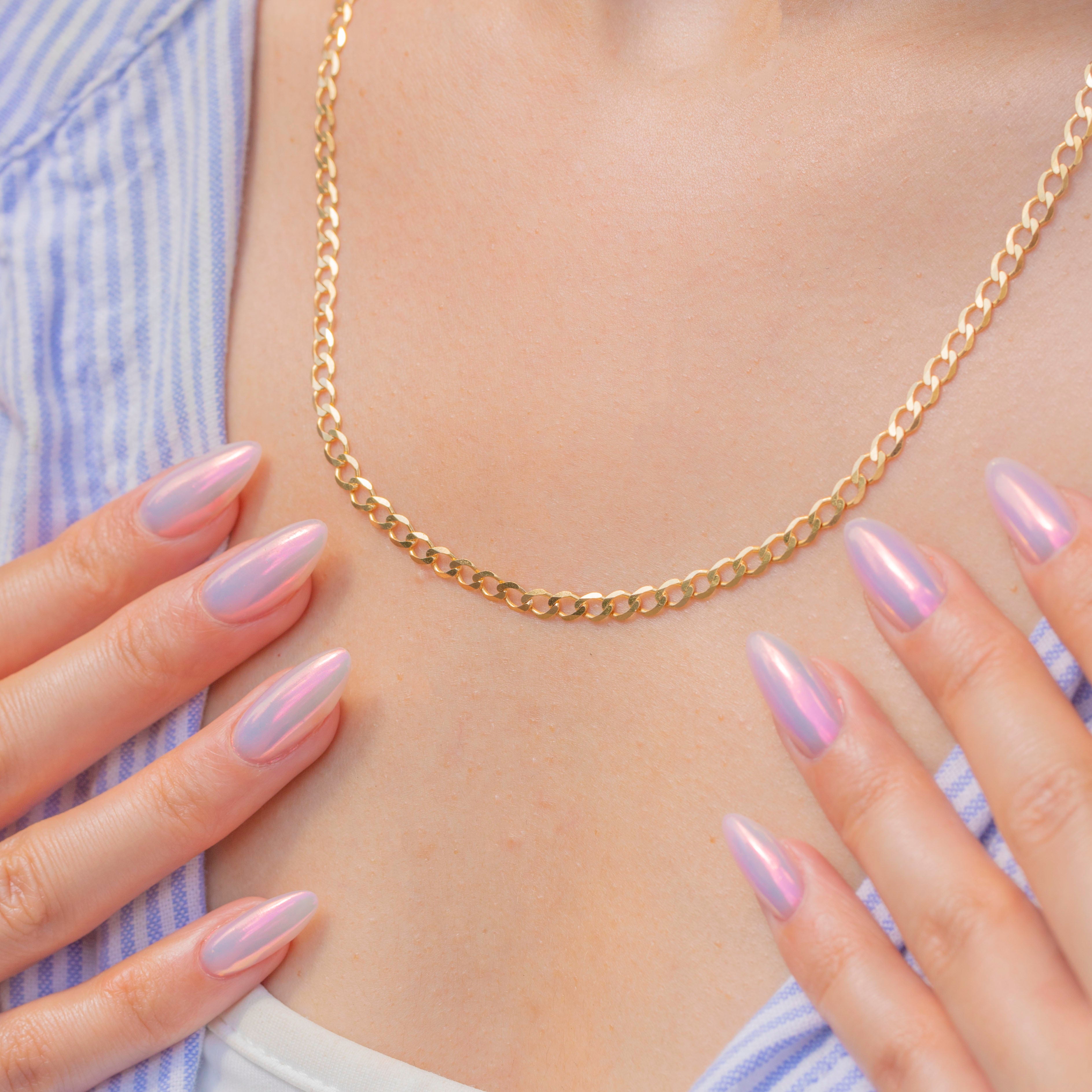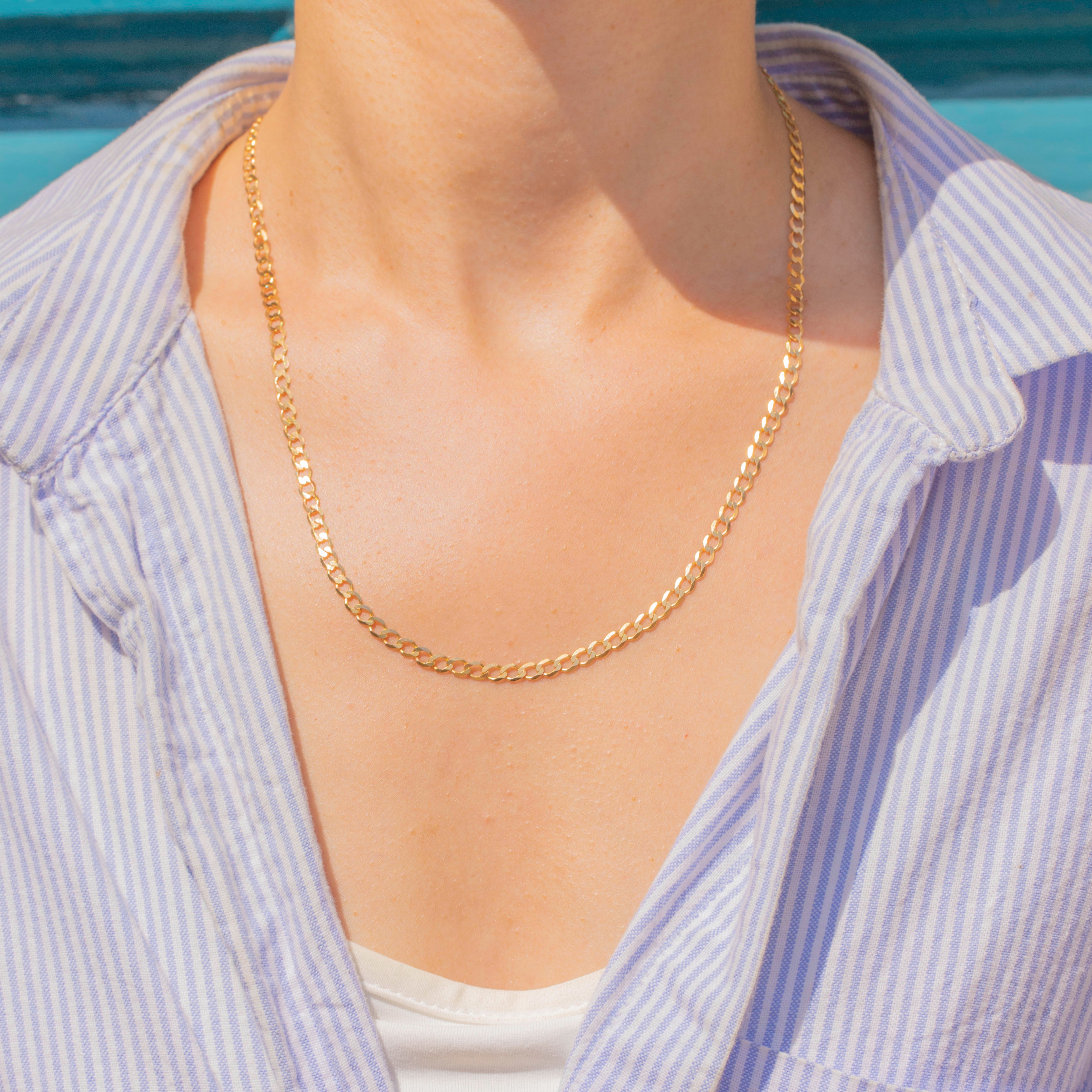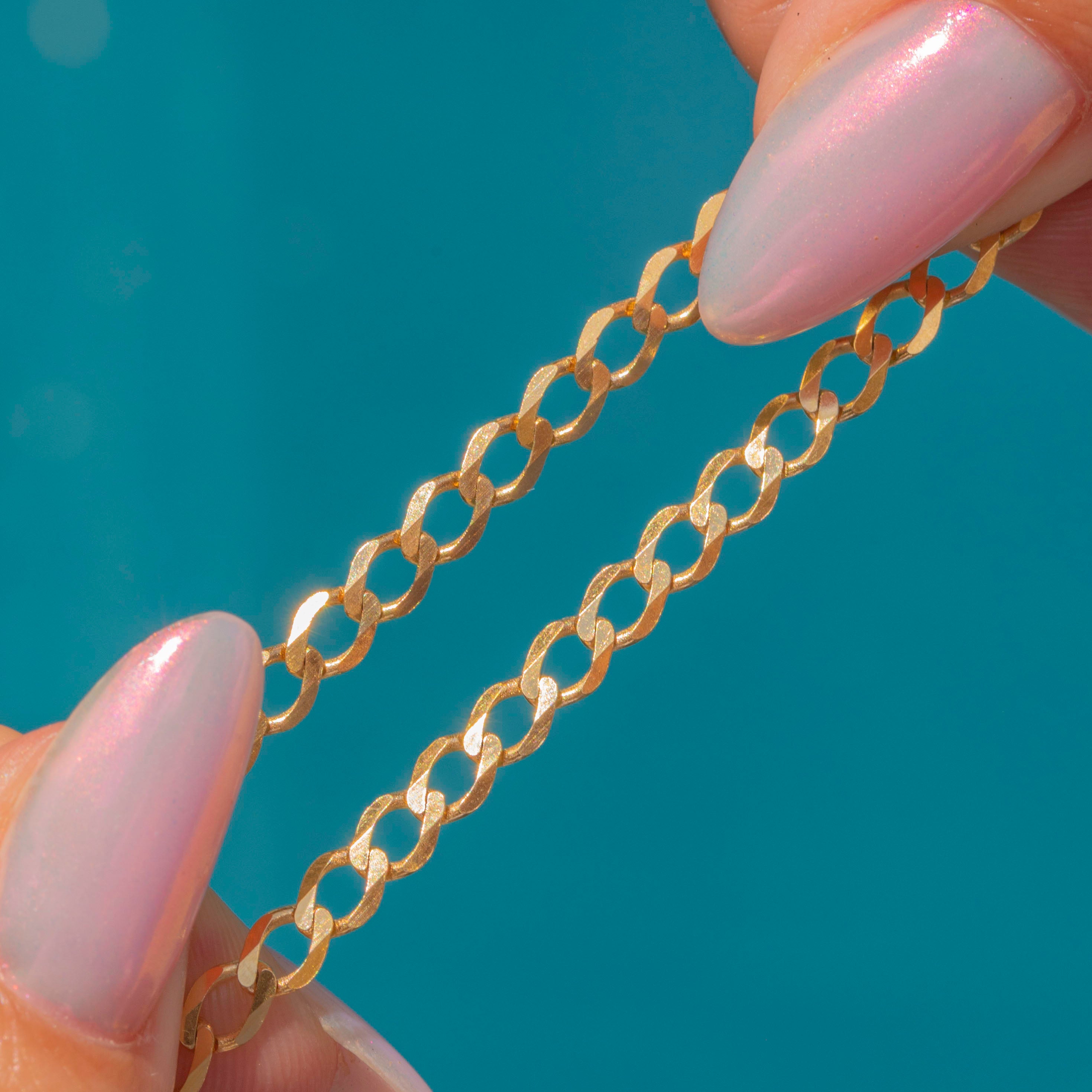 A Gold chain like this is incredibly versatile, a blank canvas to style how you please! Whether you want to wear it with one of your Gold pendants or as a standalone piece, this Gold curb chain is sure to give you your Gold fix!