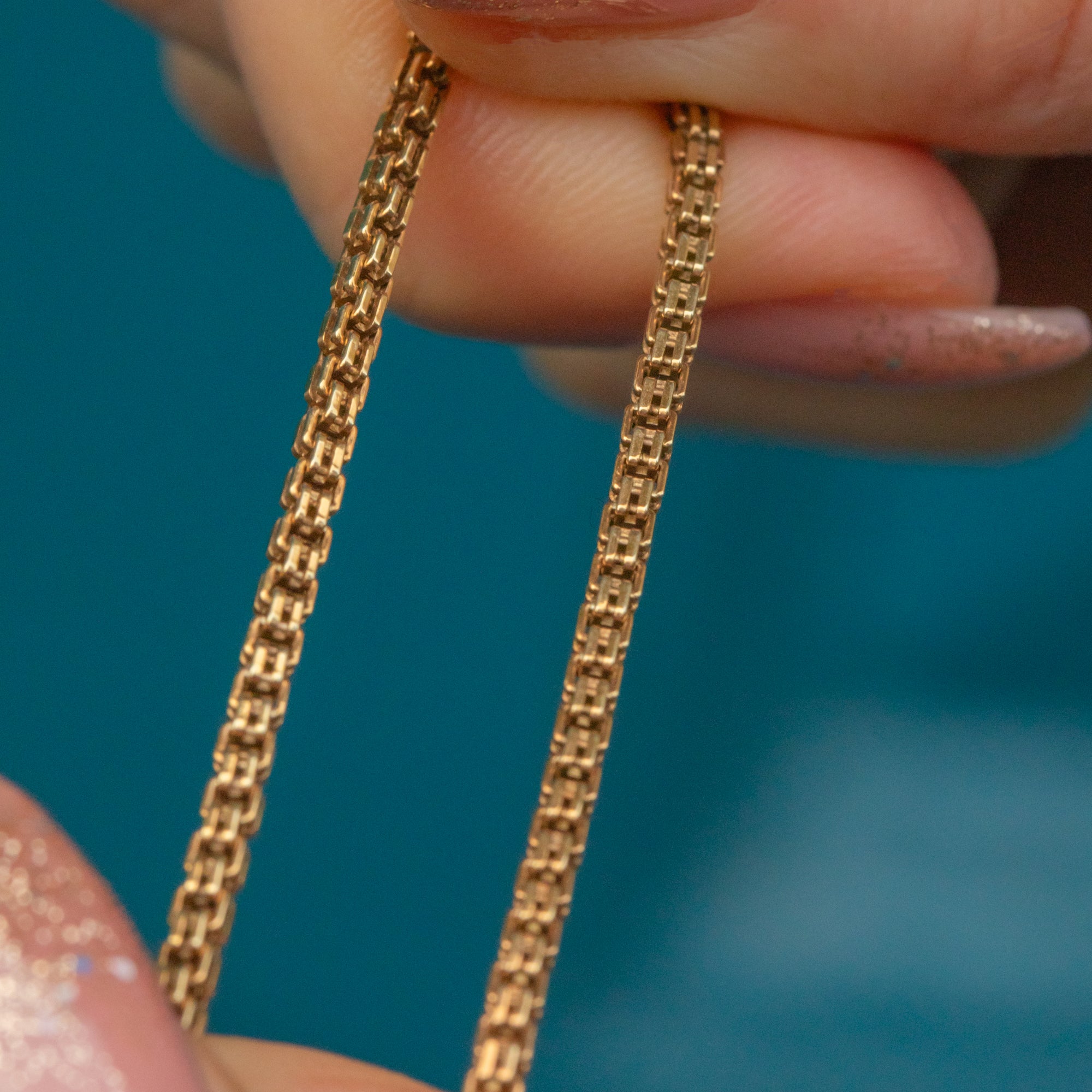 This 19" 9ct Gold fancy antique box link chain is soon to become your go-to piece! Crafted from lustrous 9ct Gold with versatile an antique barrel clasp, this Victorian chain features gorgeous box links that flow effortlessly like liquid Gold across your décolletage.