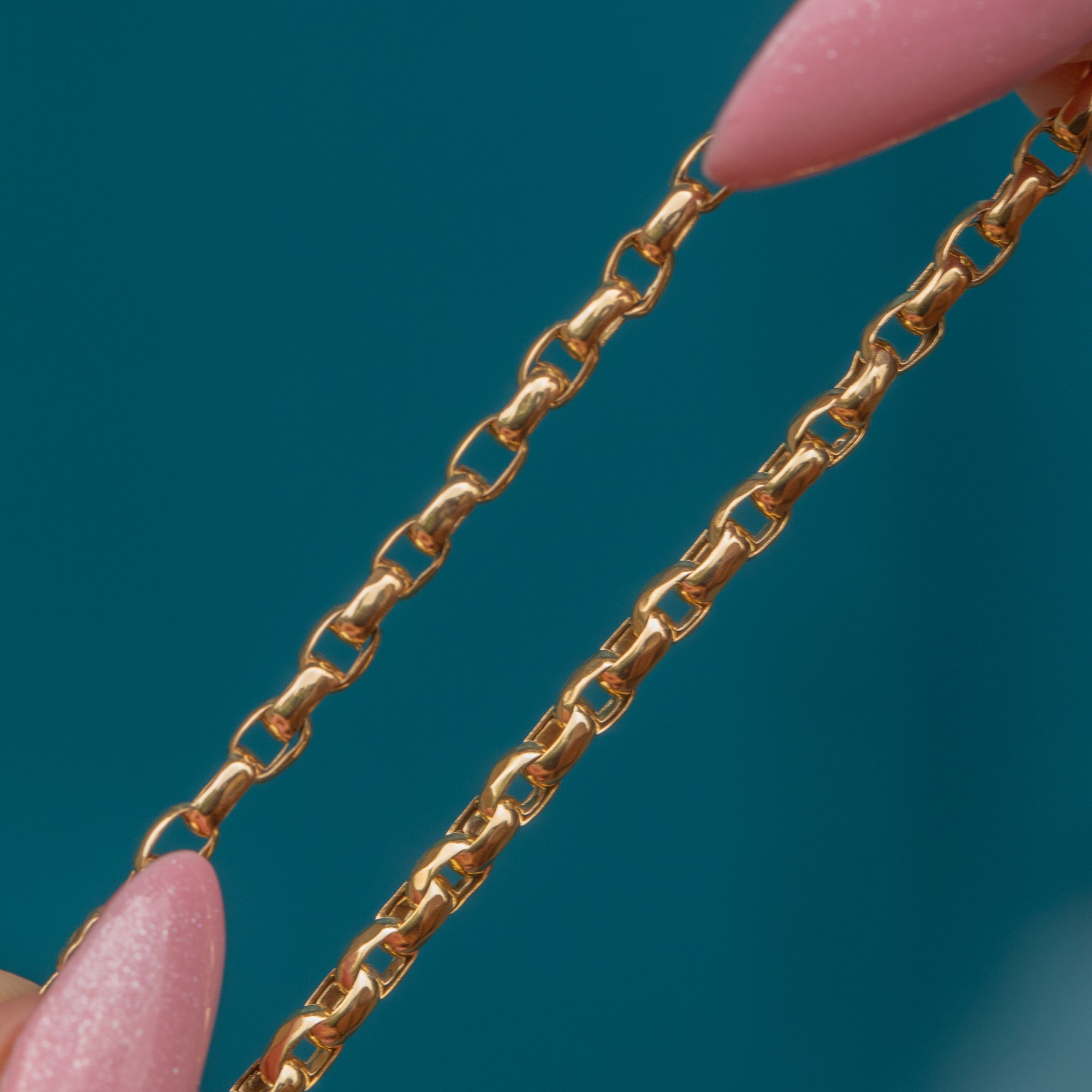 Crafted entirely from glossy 9ct Gold, this Victorian belcher has a gorgeous sheen and glows as she adorns your décolletage. Victorian Gold chains are undeniably versatile, and she is no exception!