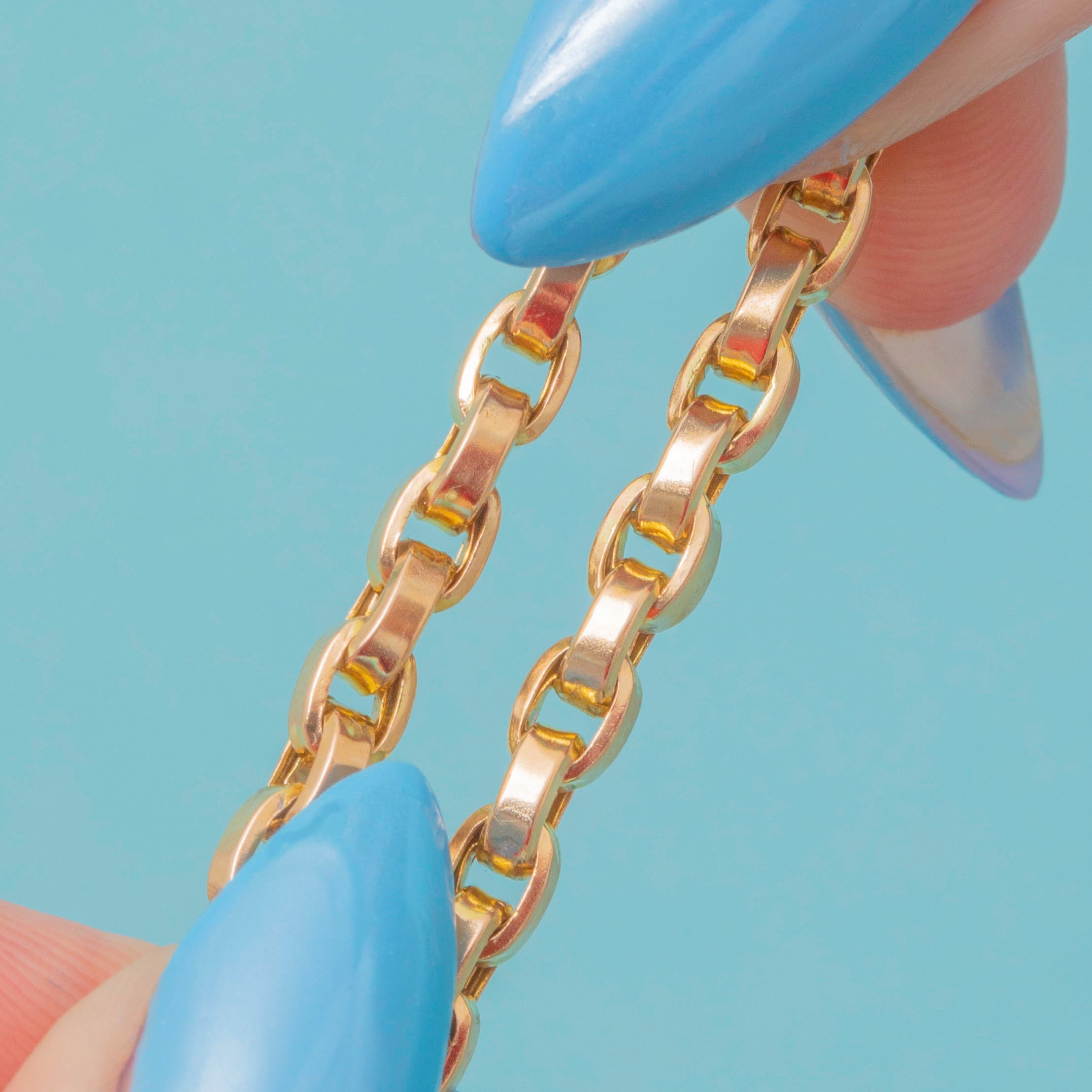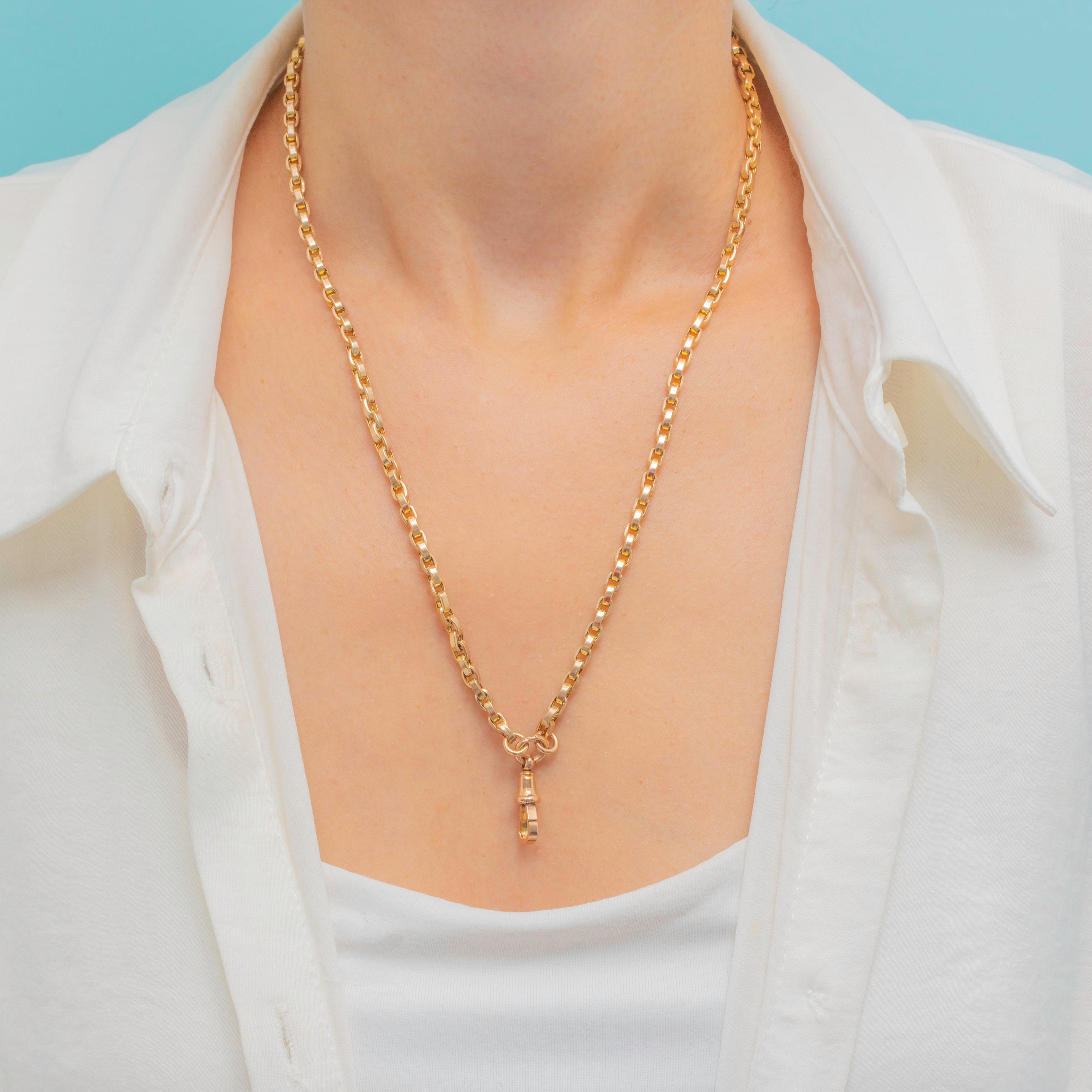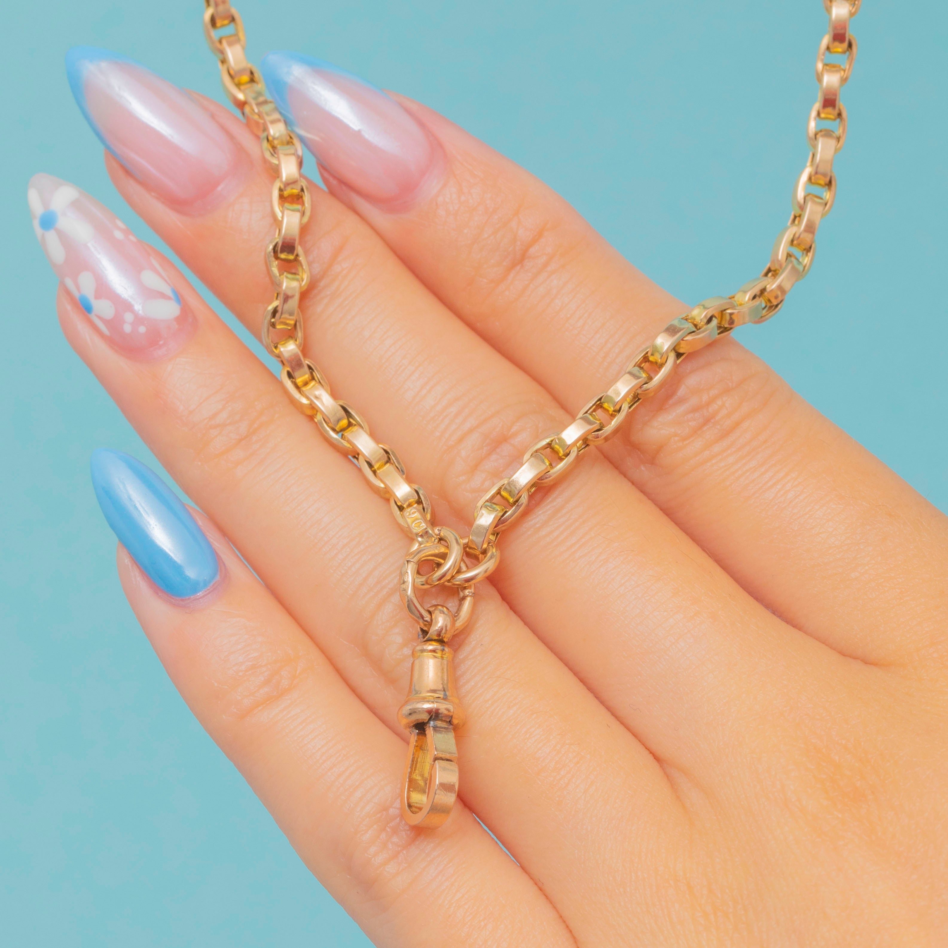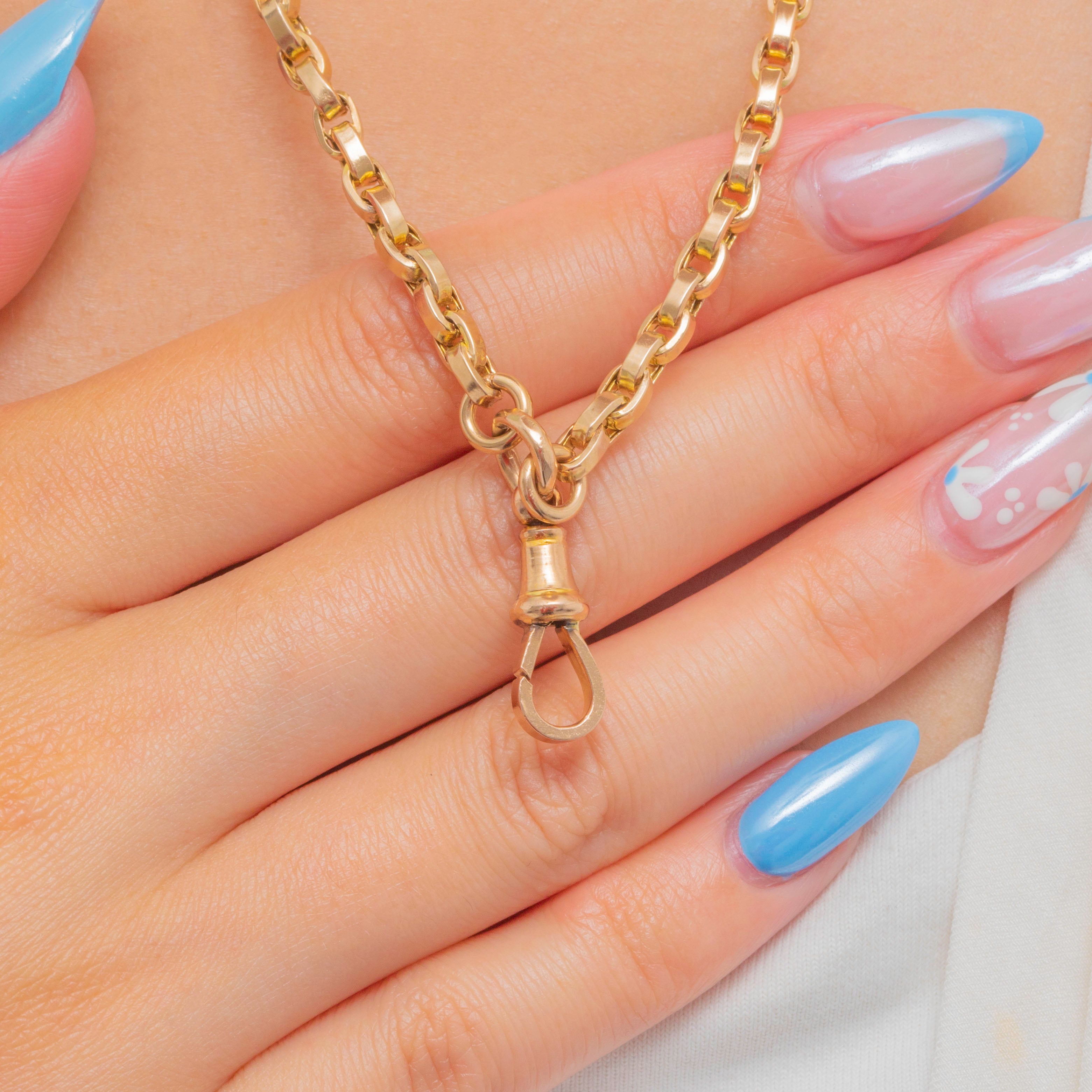 At 19" in length, this belcher chain sits elegantly across your décolletage and is complete with a highly sought-after dog-clip charm holder and bolt-ring clasp, simply radiating antique allure!