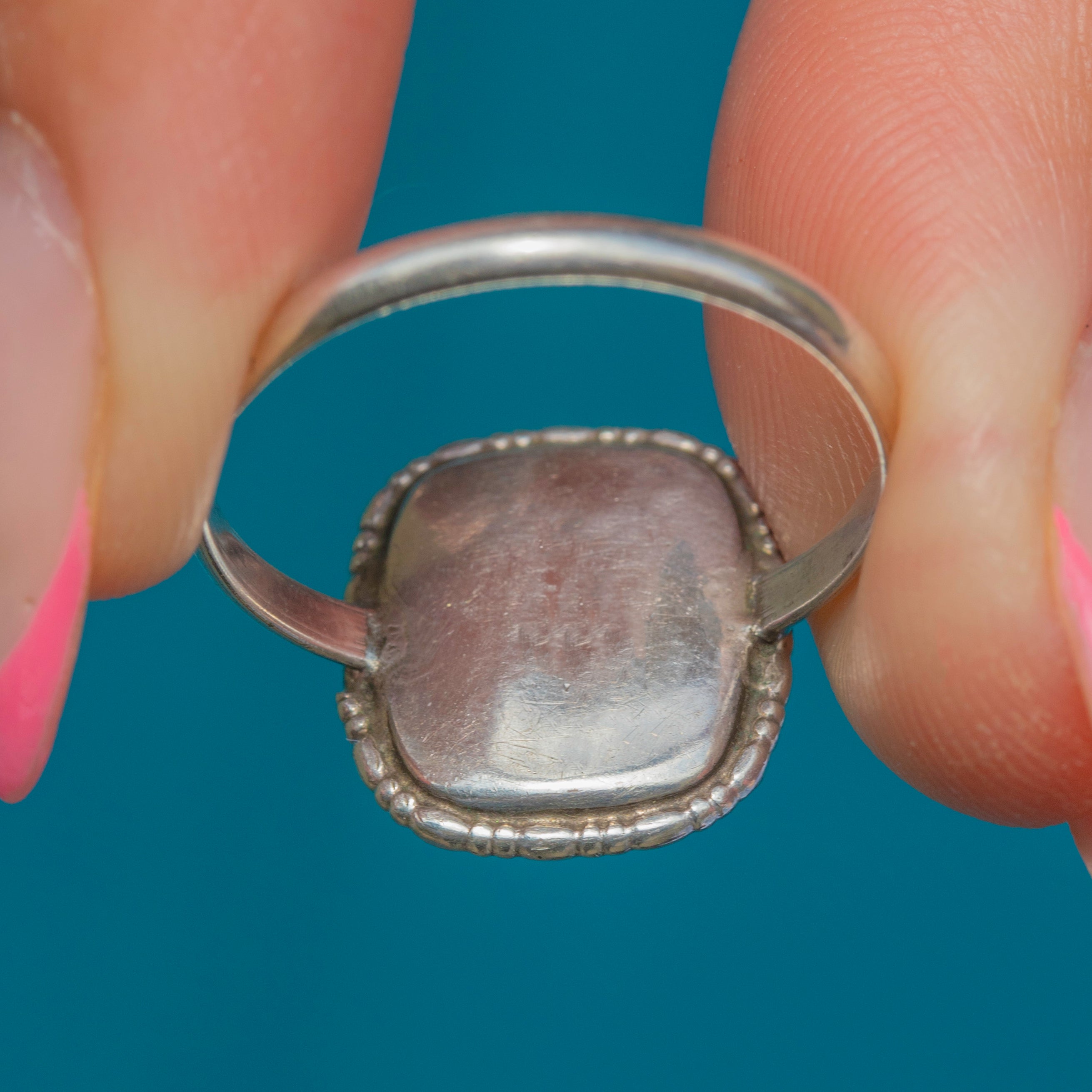 This 1920's antique Silver Venetian glass ring is a great way to incorporate some colour into your collection! Made from Sterling Silver, this Art Deco era piece wears beautifully on the finger.