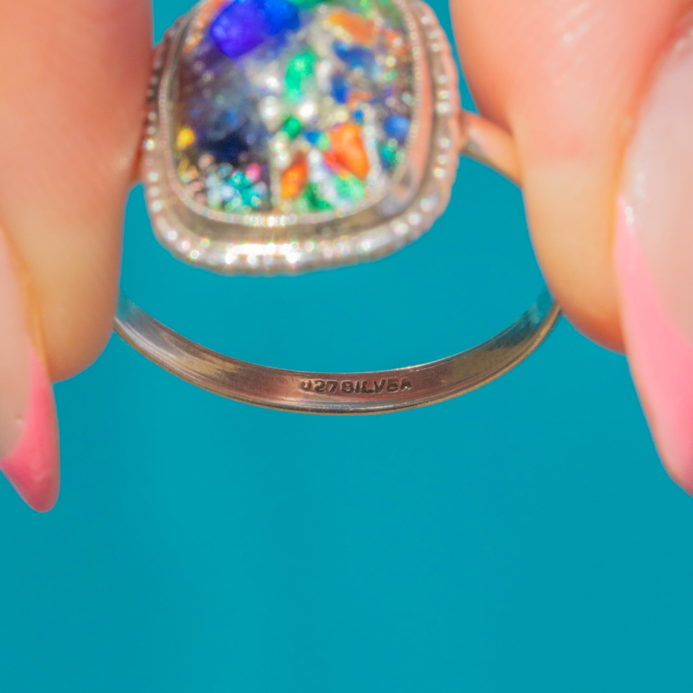 Home to a rainbow of colours, from electric blues to the softest touch of pink, this 1920s Venetian glass ring is he perfect piece to liven up your outfit this summer!