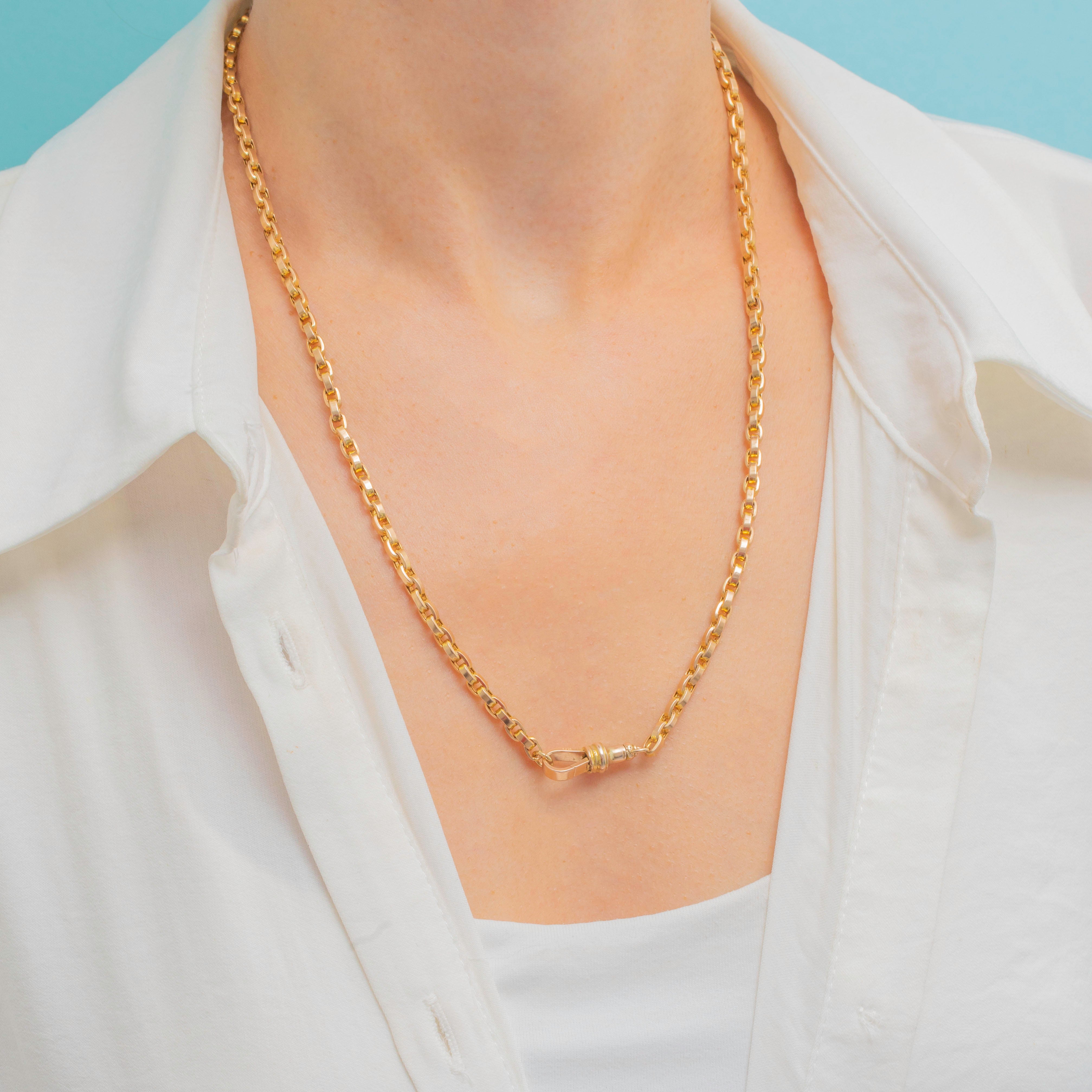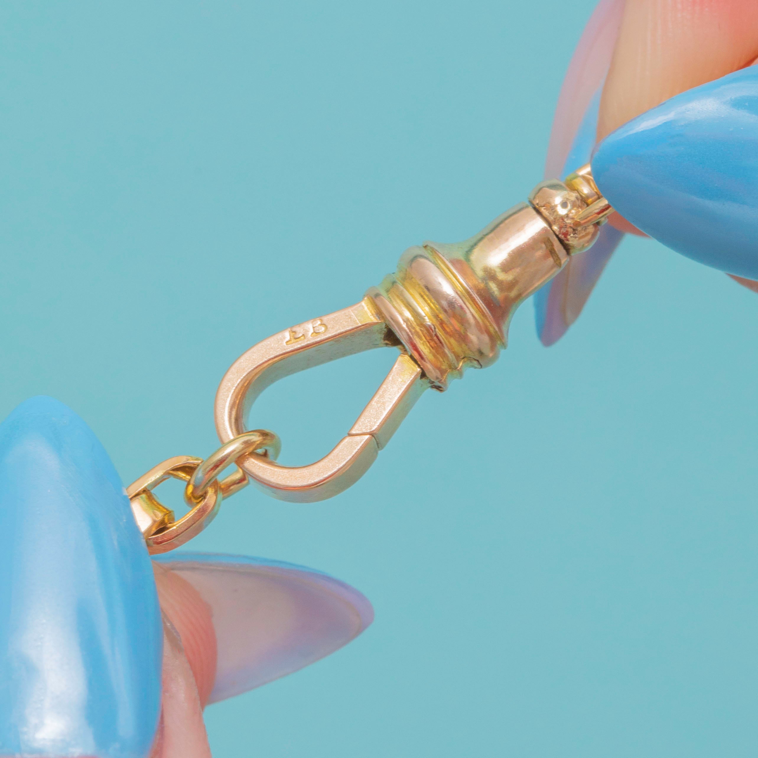 This antique Gold belcher chain will make an exquisite addition to your collection! Made up of smooth belcher links, this chain is crafted from solid 9ct Gold throughout and is complete with a chunky Gold dog-clip, to which could add a charm for a personal touch.