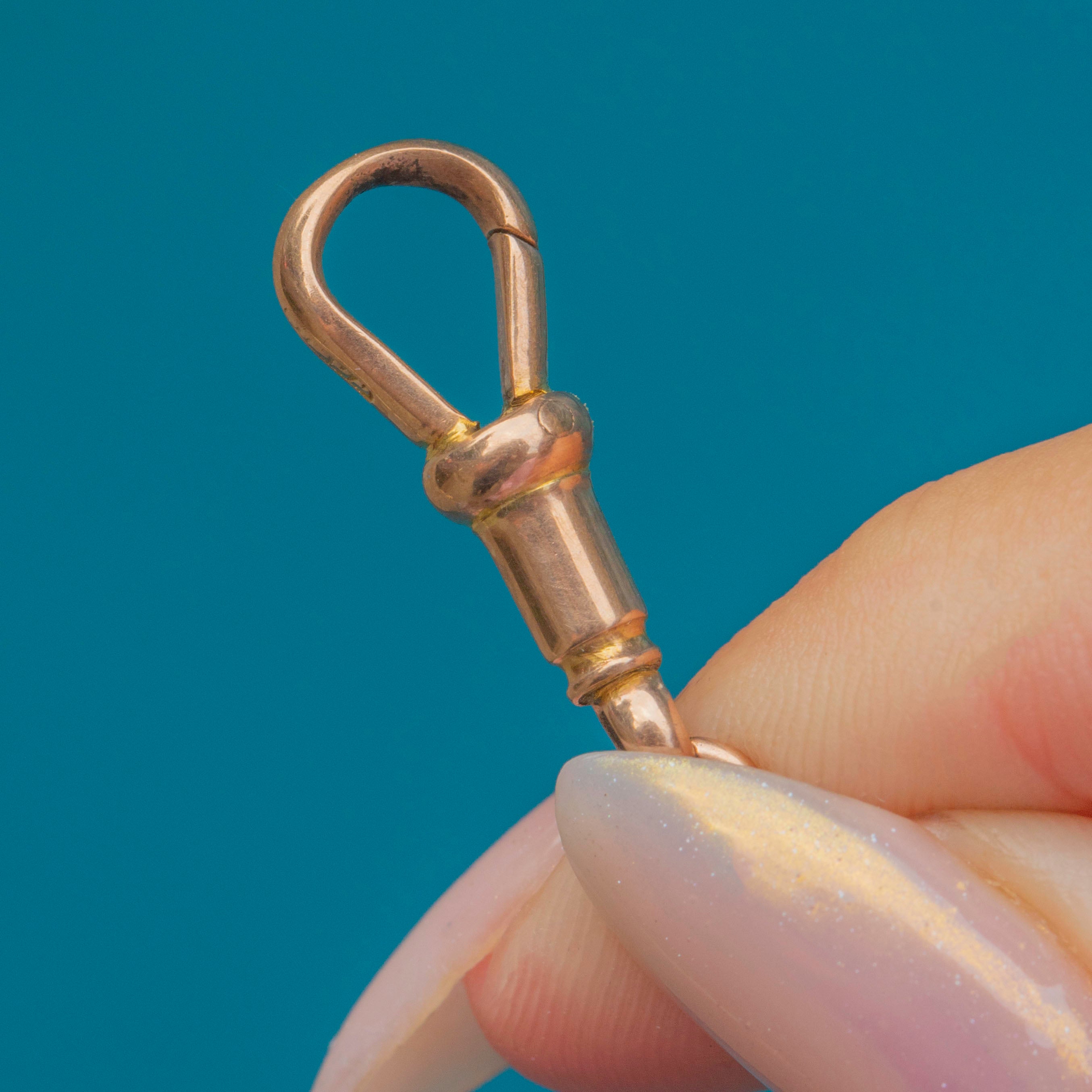 EXCELLENT: The links are in fine condition, well-shaped and free from dents. The Gold has retained a bright, warm tone. The dog-clip clasp is secure and functions smoothly, allowing you to wear this antique belcher chain with utmost confidence.