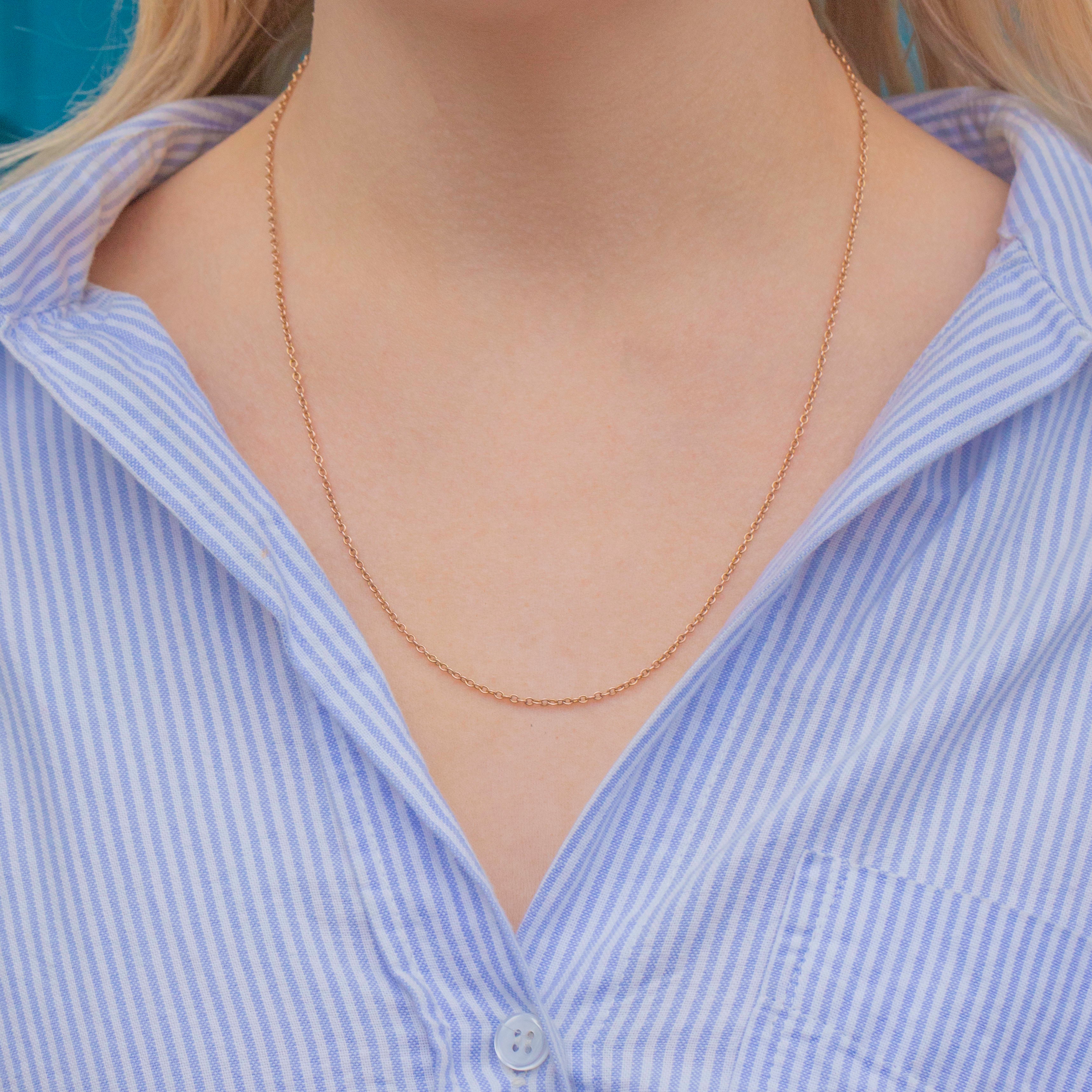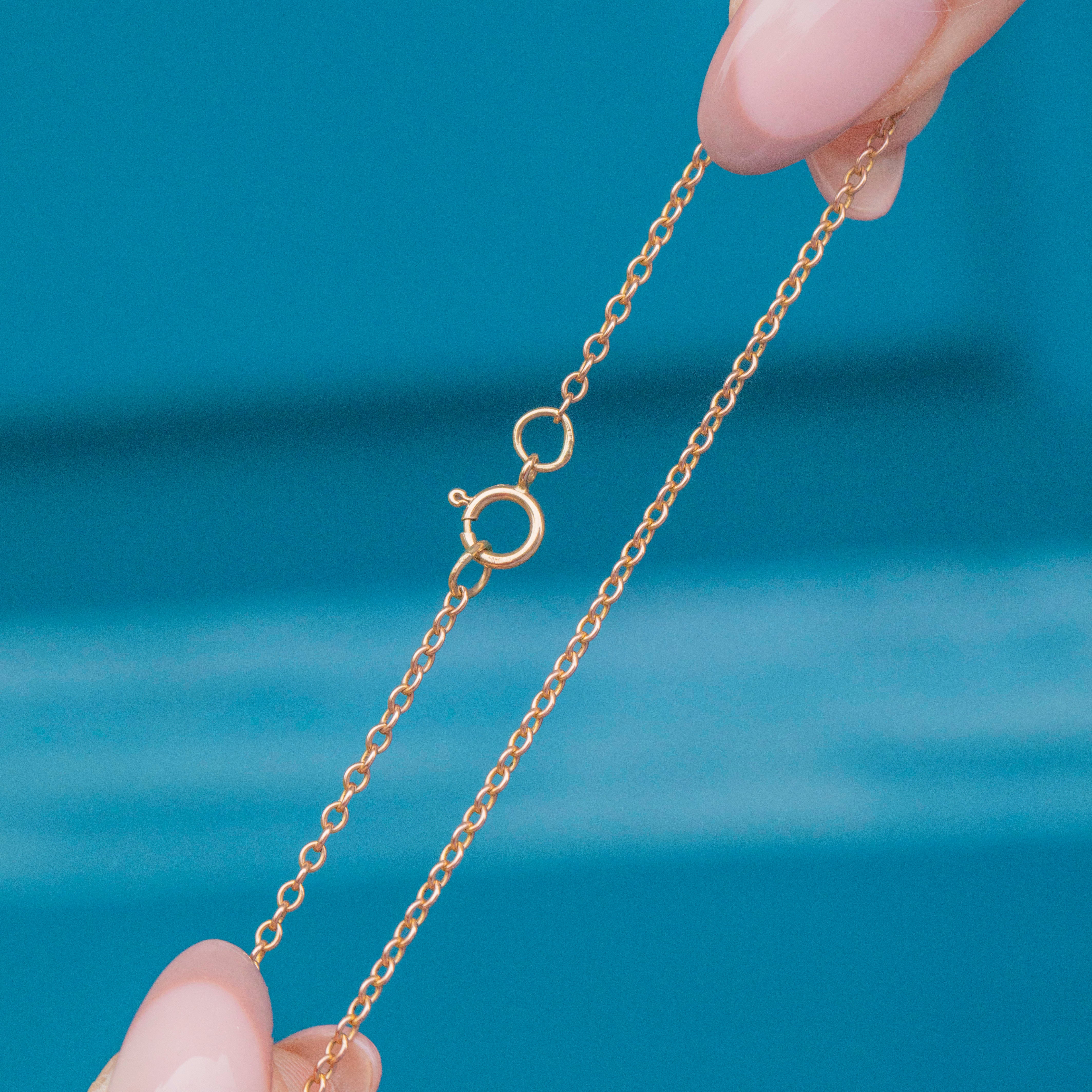 EXCELLENT. This antique 9ct Gold pendant chain is in excellent condition. The links are all uniform and securely connected, crafted from radiant 9ct Gold. The later added bolt ring has excellent spring back, providing you with secure wear.