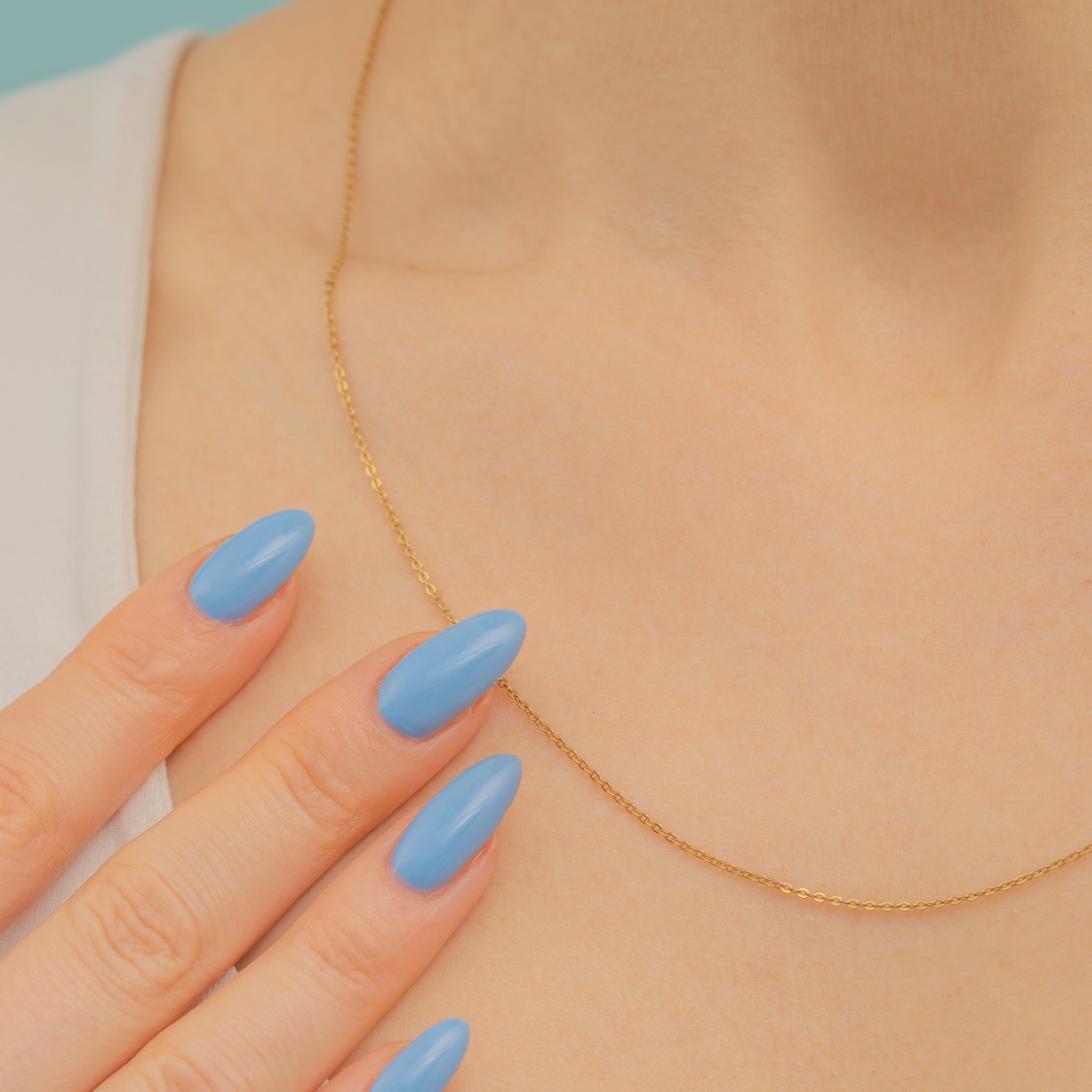 EXCELLENT. With nothing to report, this 14ct Gold skinny pendant chain is in pristine condition and can be enjoyed straight from her pink Lillicoco box!